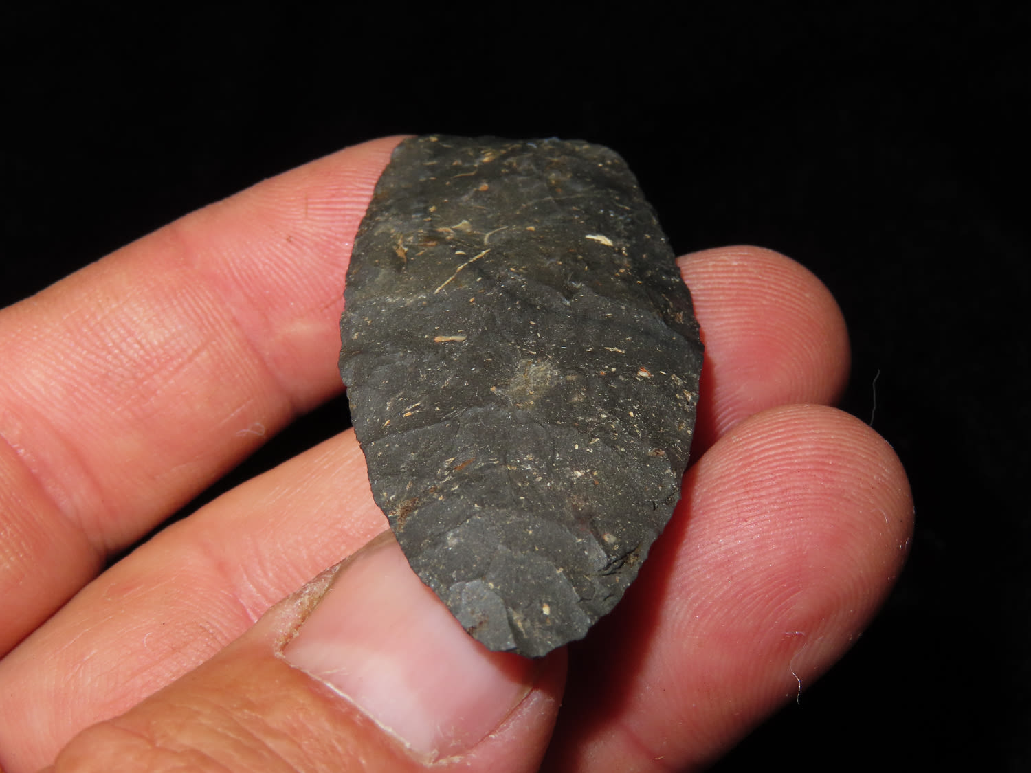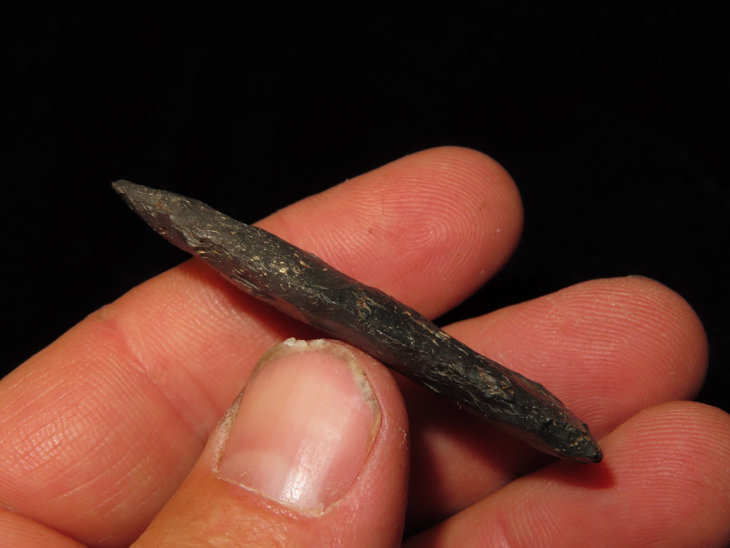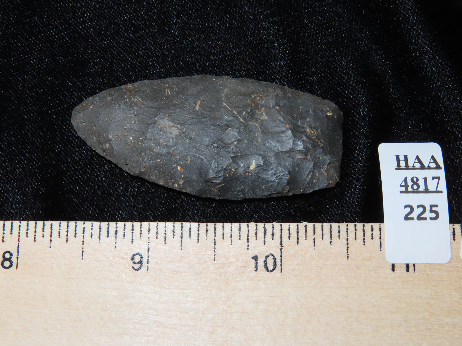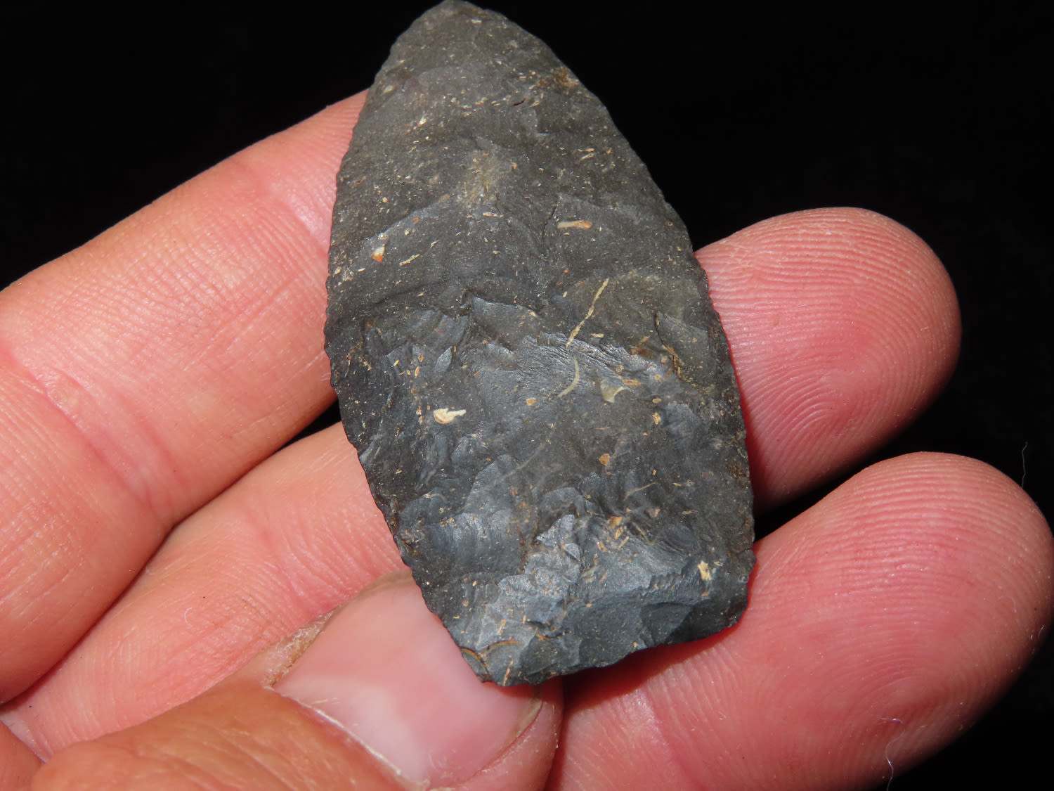 2 1/8″ Paleo Lanceolate, found in Delaware Co Ohio, purchased from Jim Bennett at Premiere Auctions in 2016, Ex Ron Comer Collection