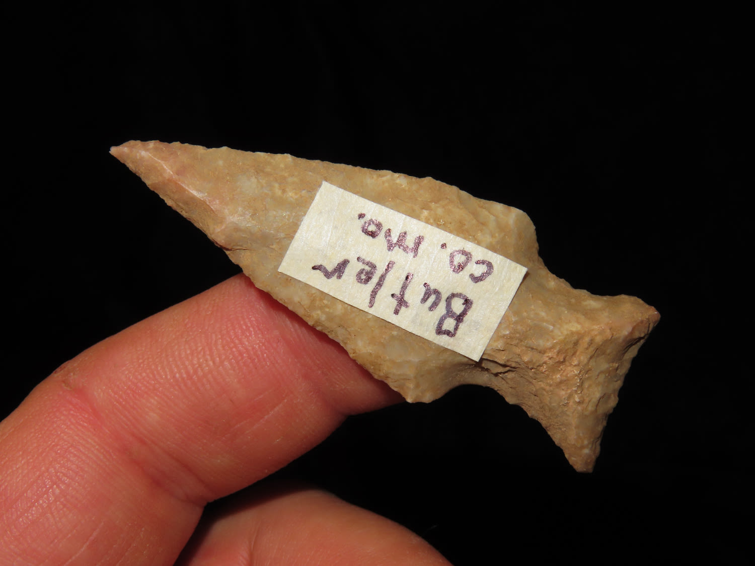2 3/16″ Bayou Goula, found in Butler Co Missouri, Ex Larry Thurman, Ex George Robertson Collection