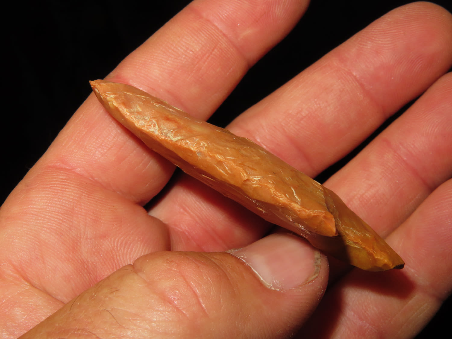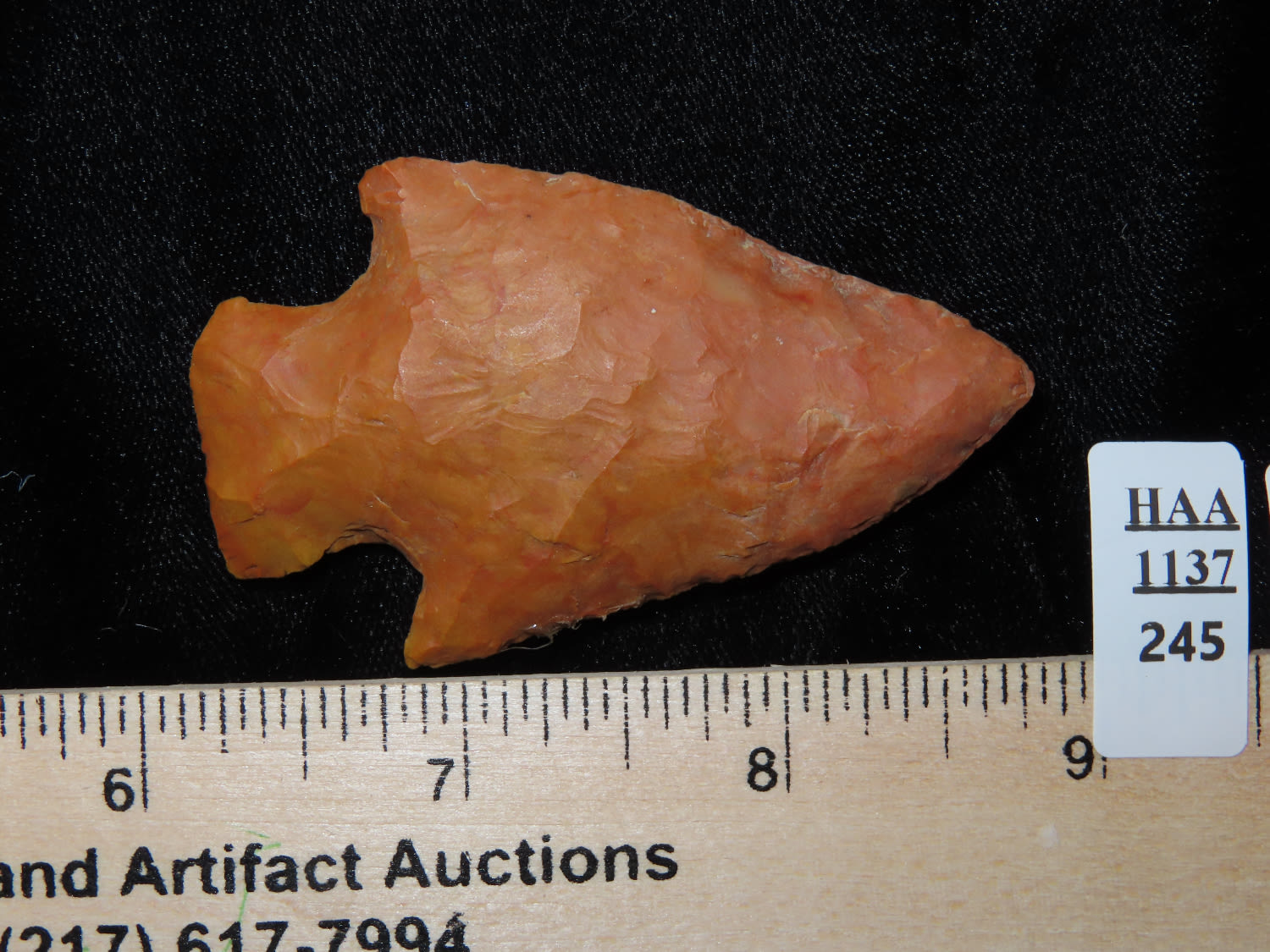 2 5/8″ Snyders, made of Crowley Ridge Chert, found in Butler Co Missouri, Ex George Robertson Collection