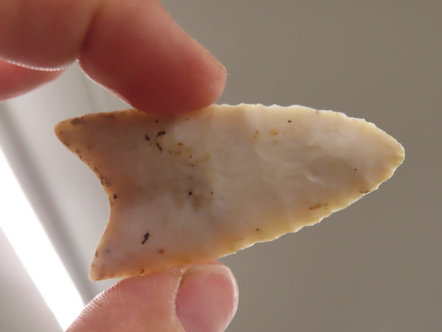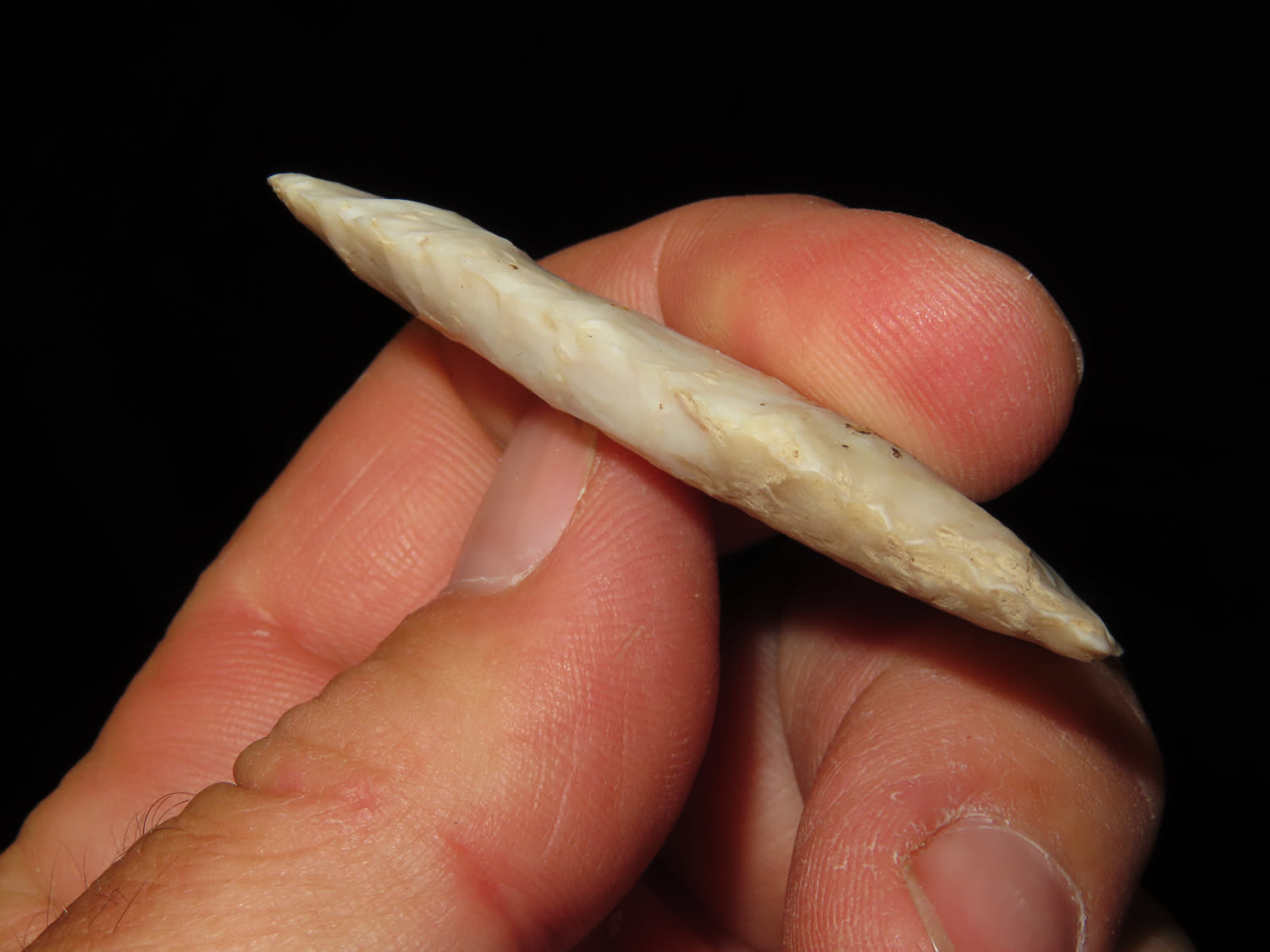2 1/4″ Fluted Clovis made of Avon Chert highly translucent Fulton CO Illinois