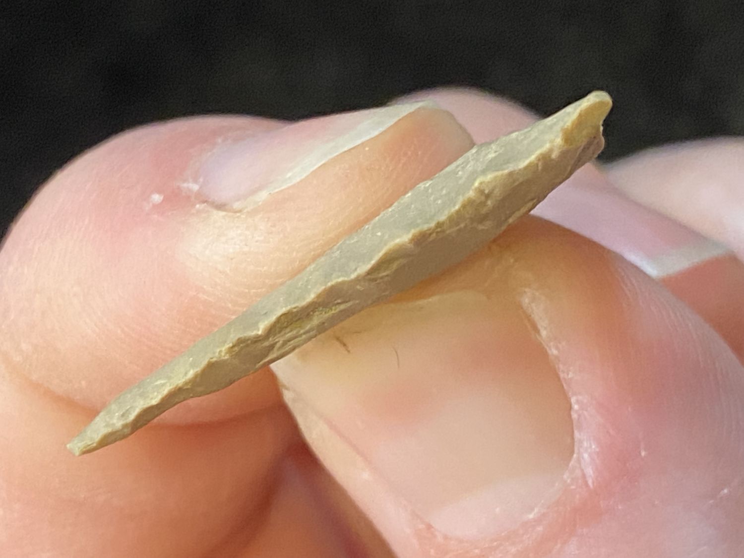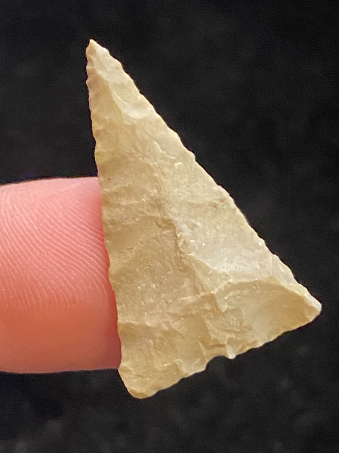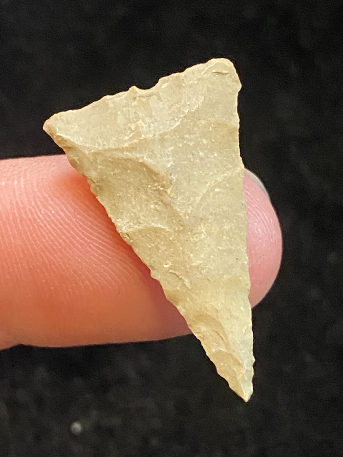 1 1/8″ Triangle, Indiana , Nice Native American Bird Point Arrowhead