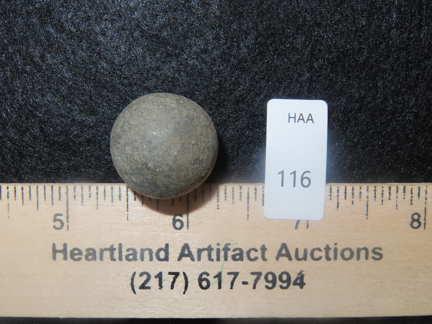 7/8″ Hardstone / Granite Game Ball, Found in Adams Co IL, Ex Cooley