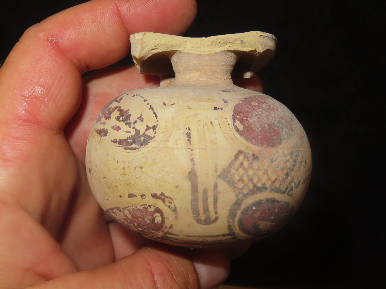 2 3/8" Tall Painted Southwest Pre Columbian Pottery Vessel