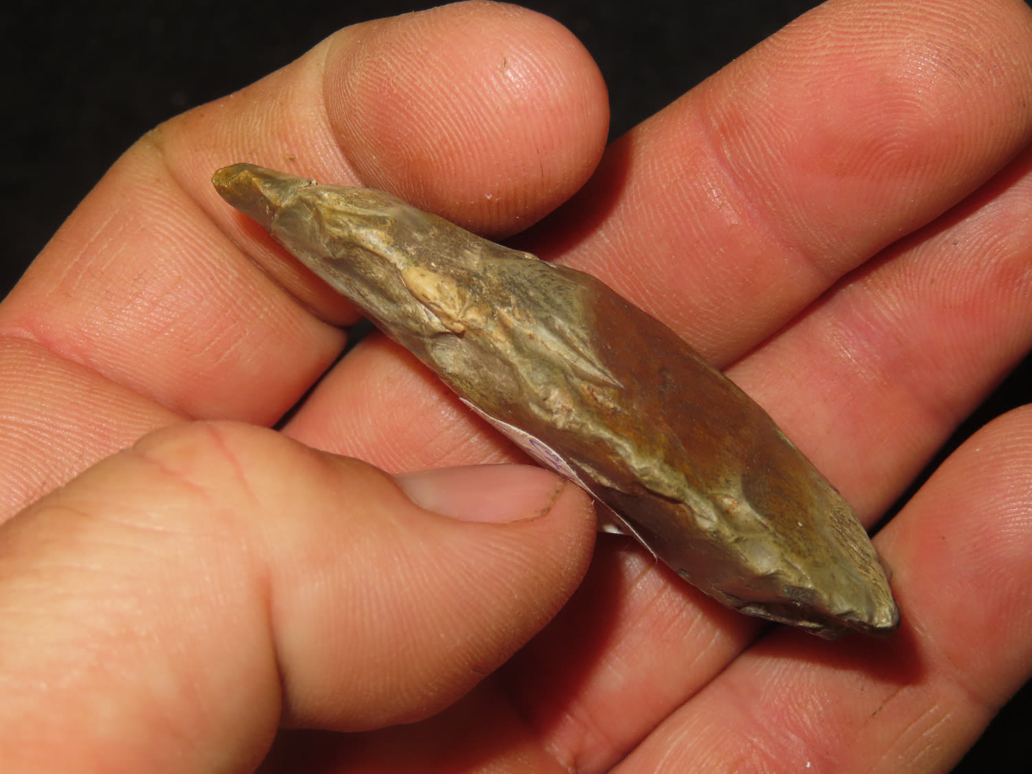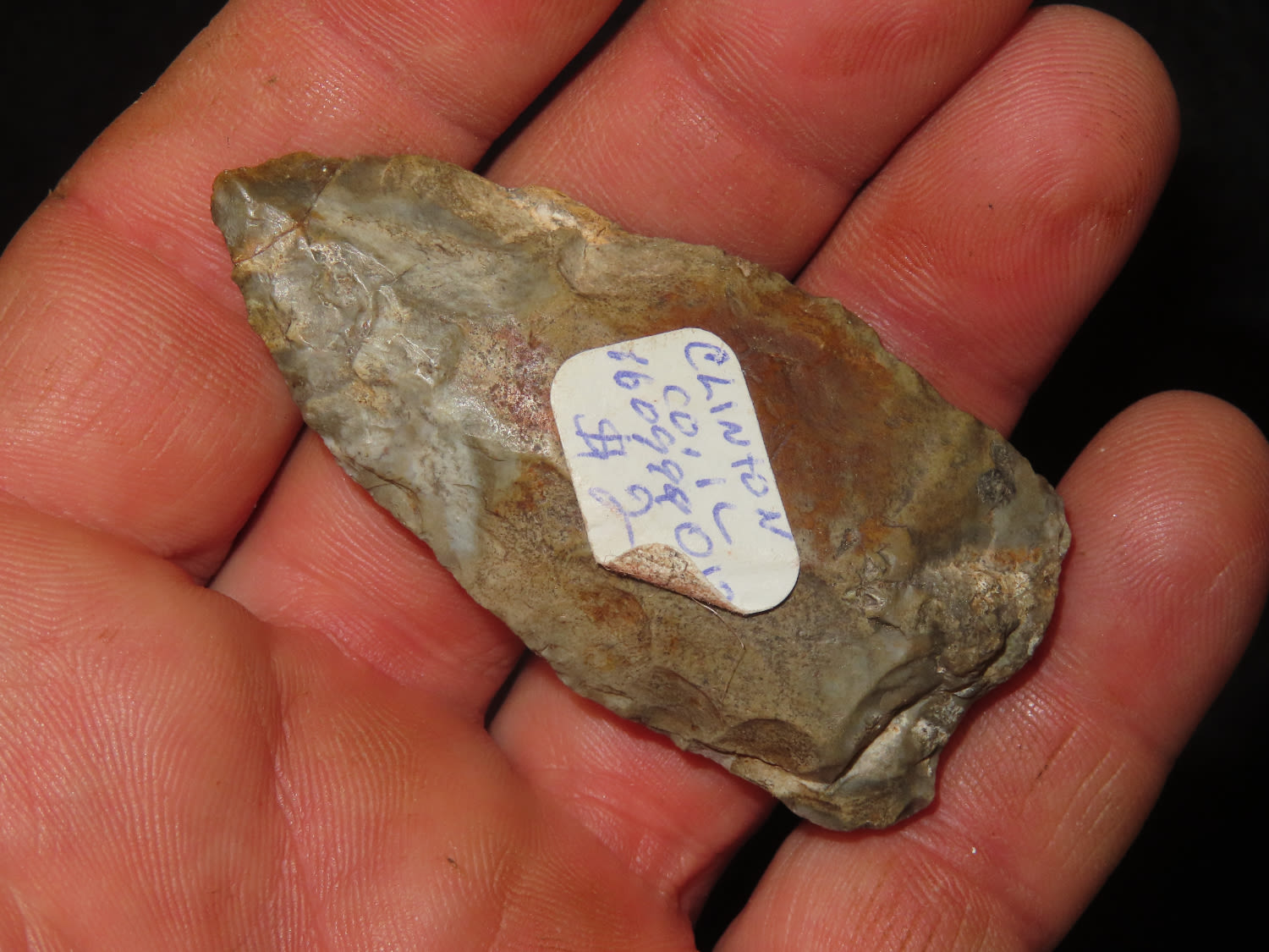 2.1/2″ Early Archaic Spear Tip, Clinton Co IL Relic is Not Glued, Seam in the material