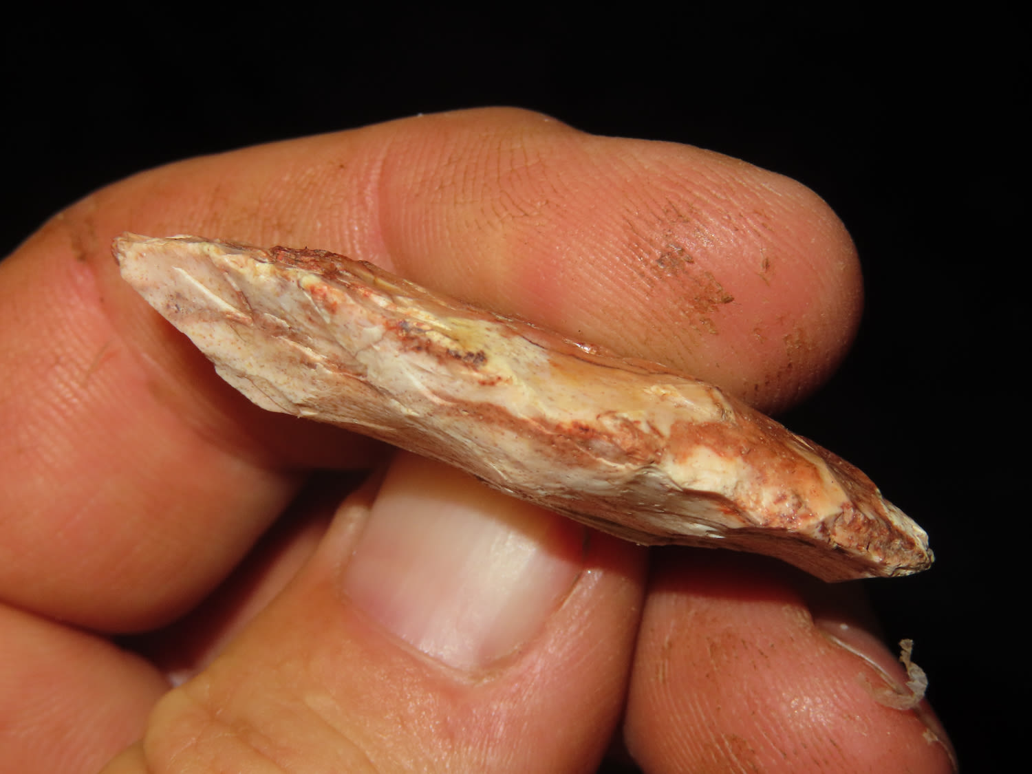 1.7/8″ Paleo Angostura, Found in Sullivan Co Missouri. Ground Base