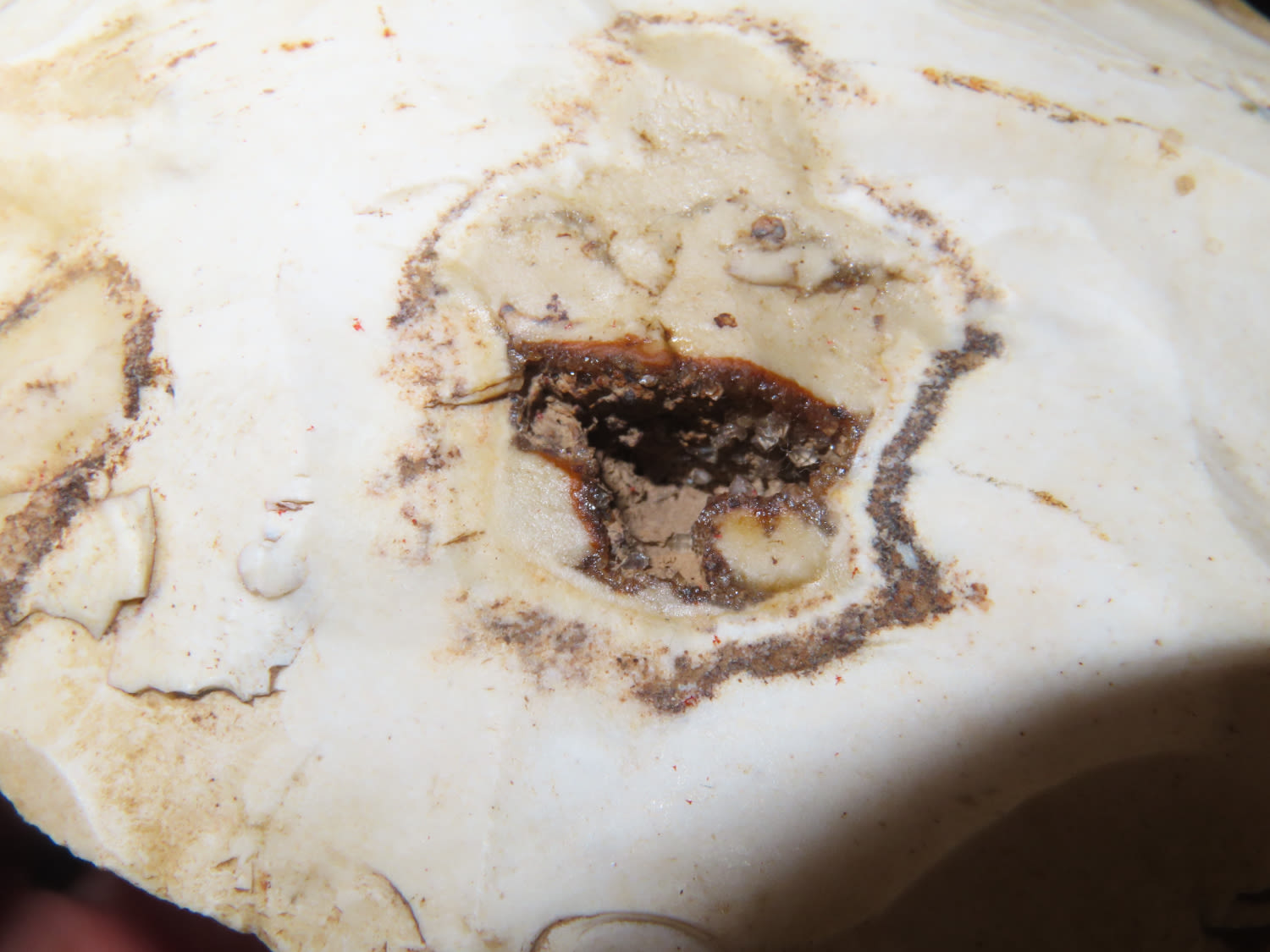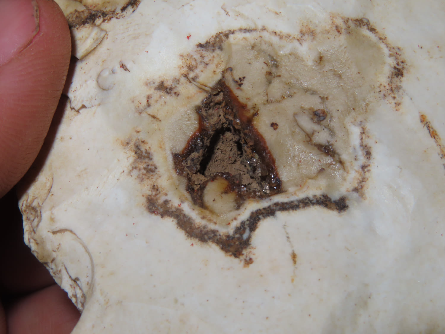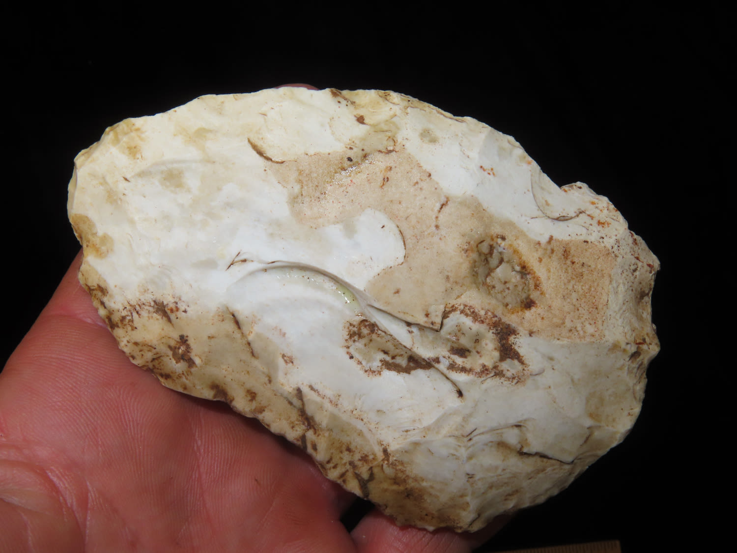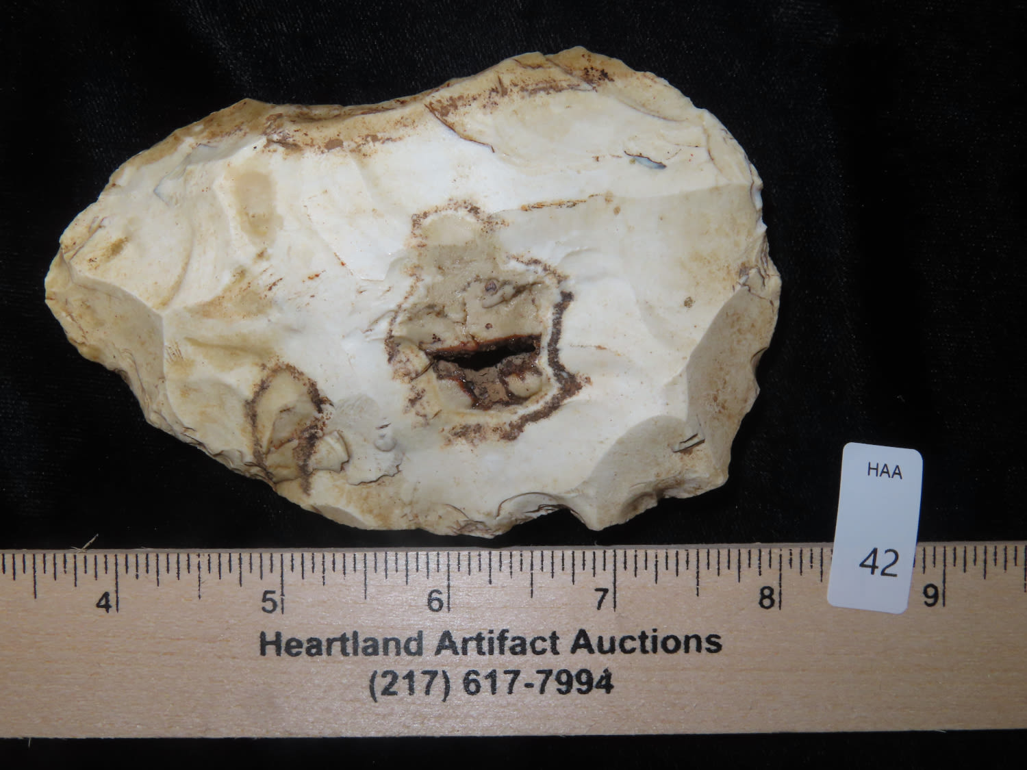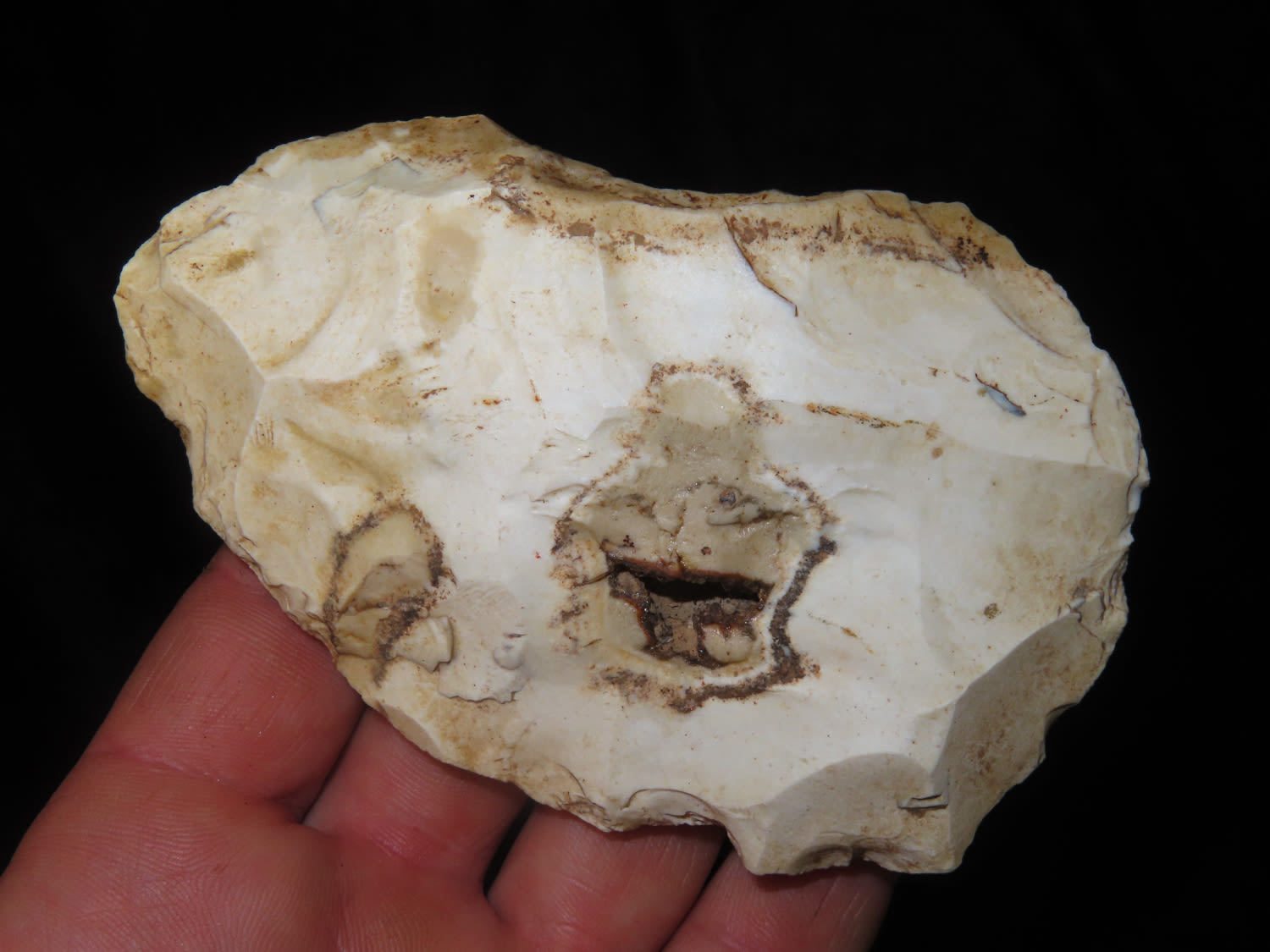 4 1/4″ Hand Axe, Burlington with Wonderful Geode Inclusion, Adams Co IL