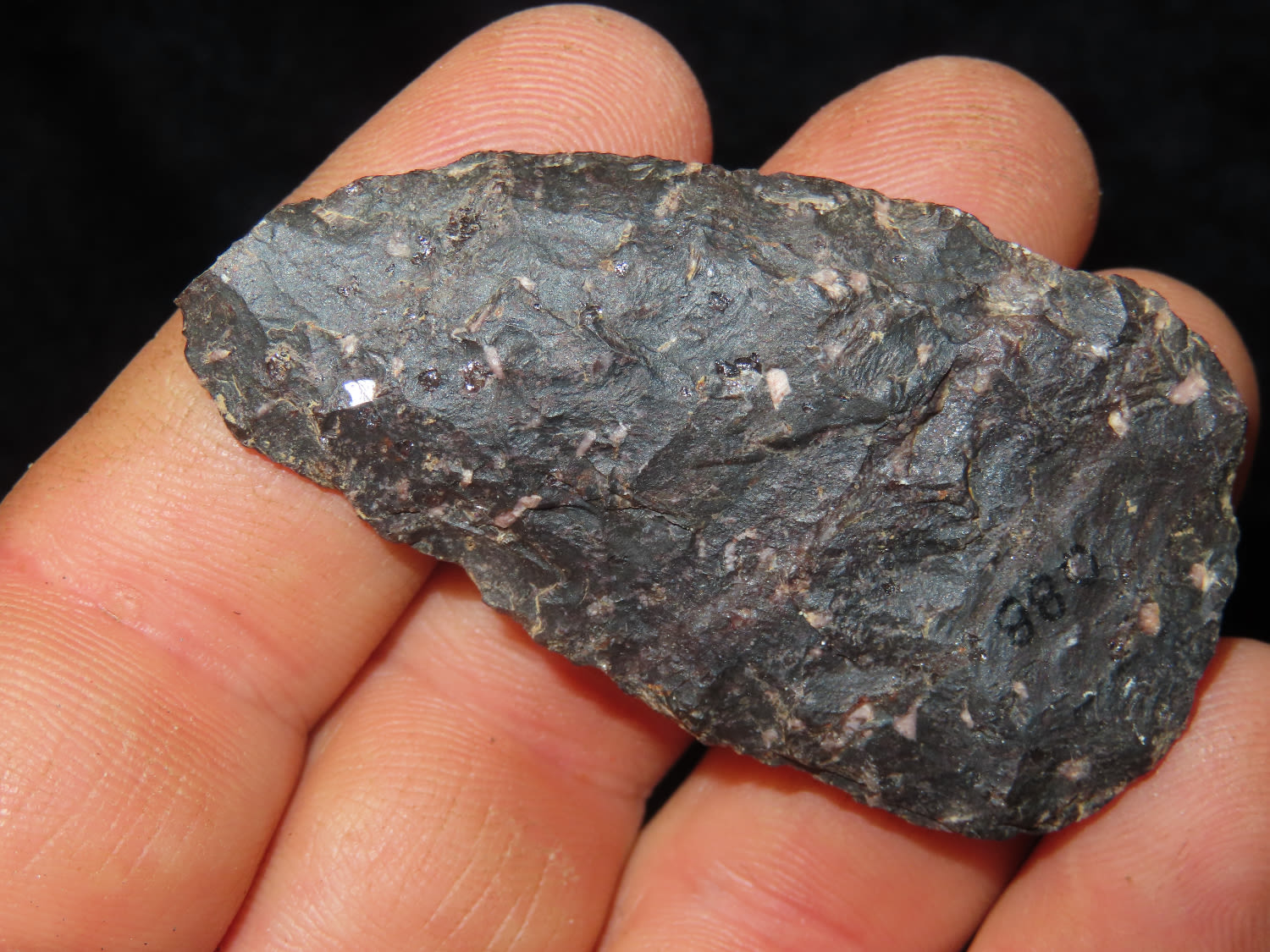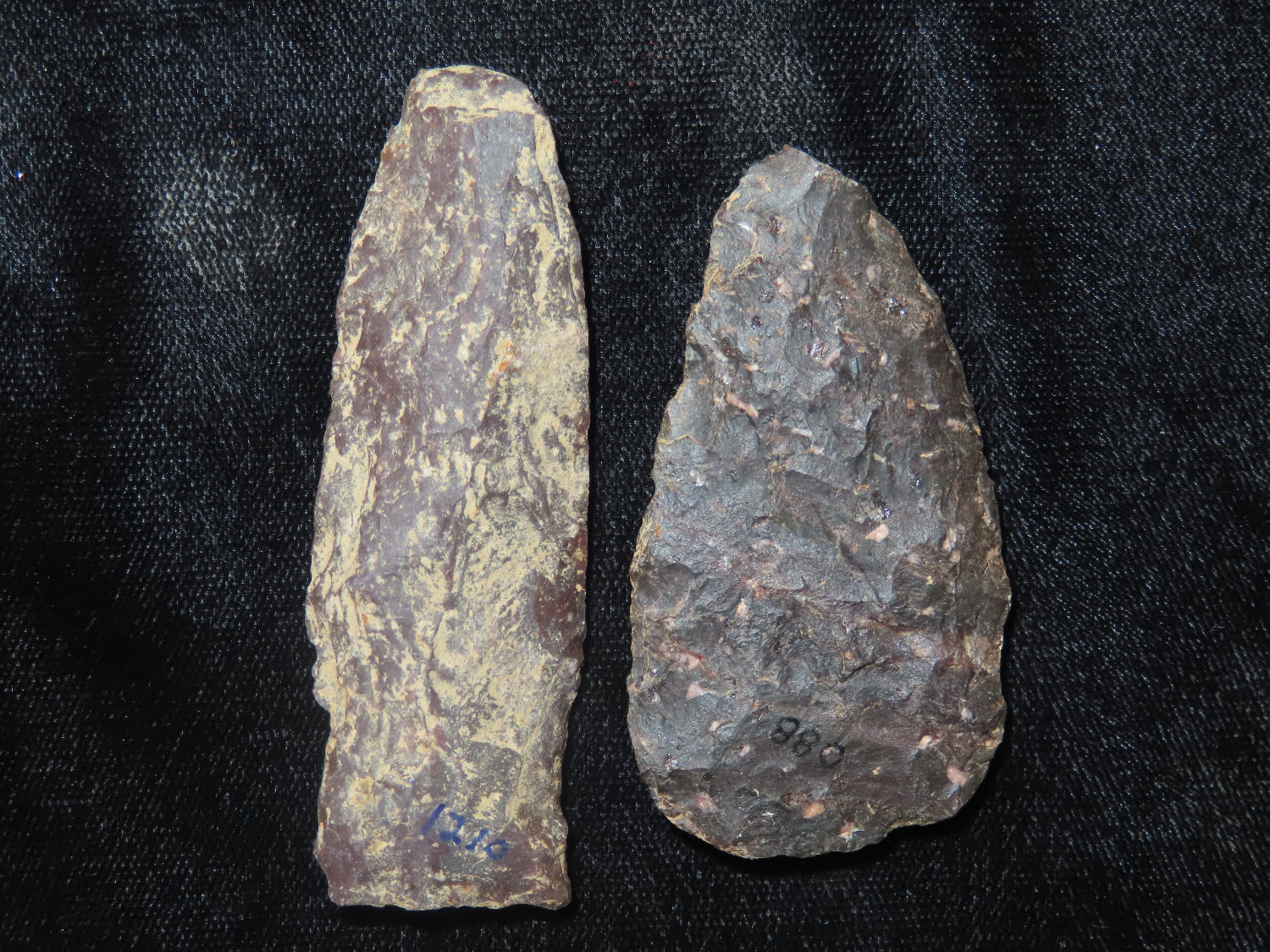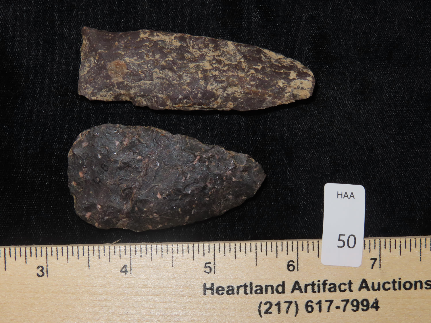2 Purple Rhyolite Arrowheads, Arkansas, Ex Manos