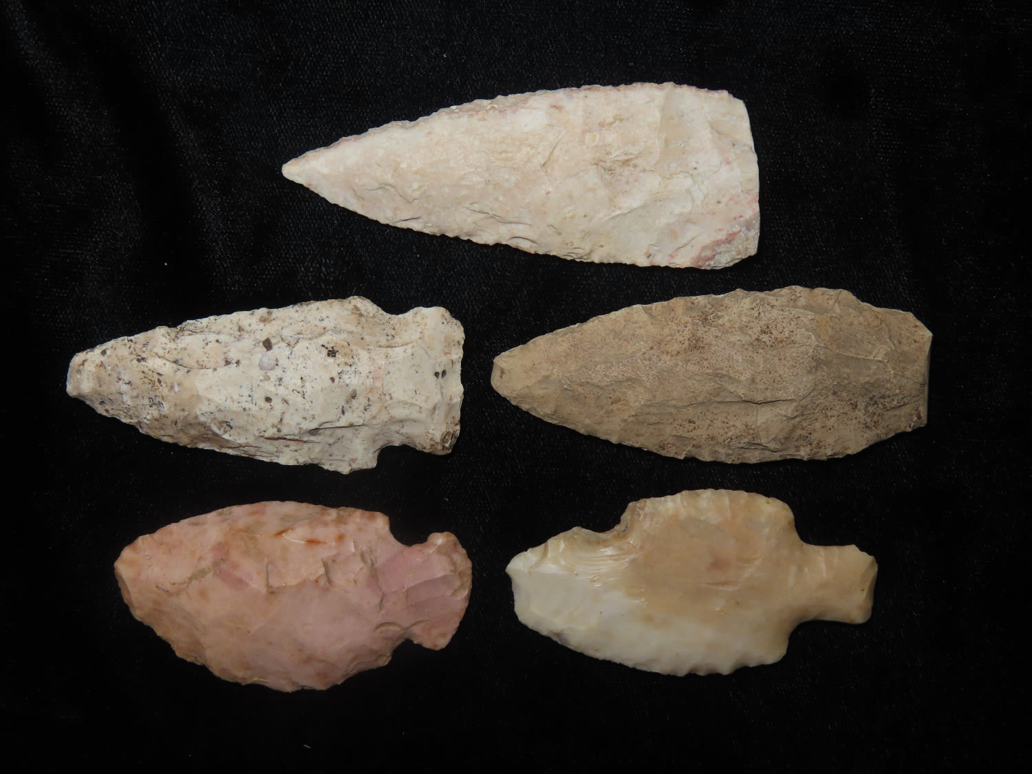 5 Larger Arrowheads, Tablerock, Ex Manos
