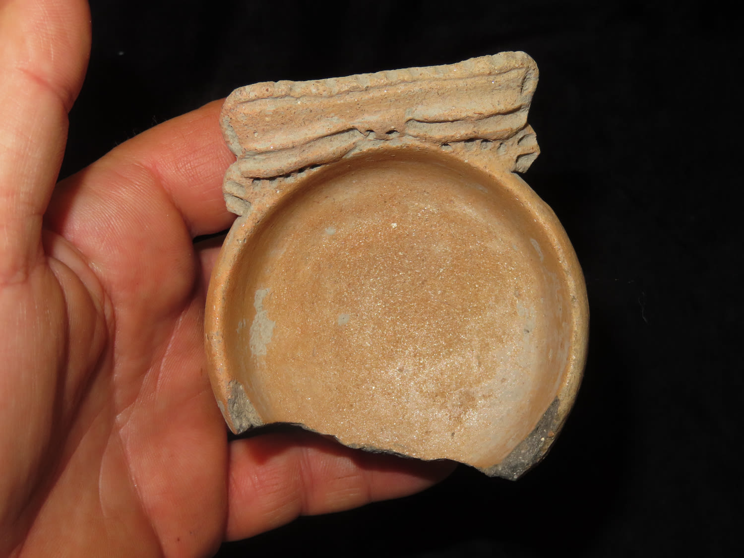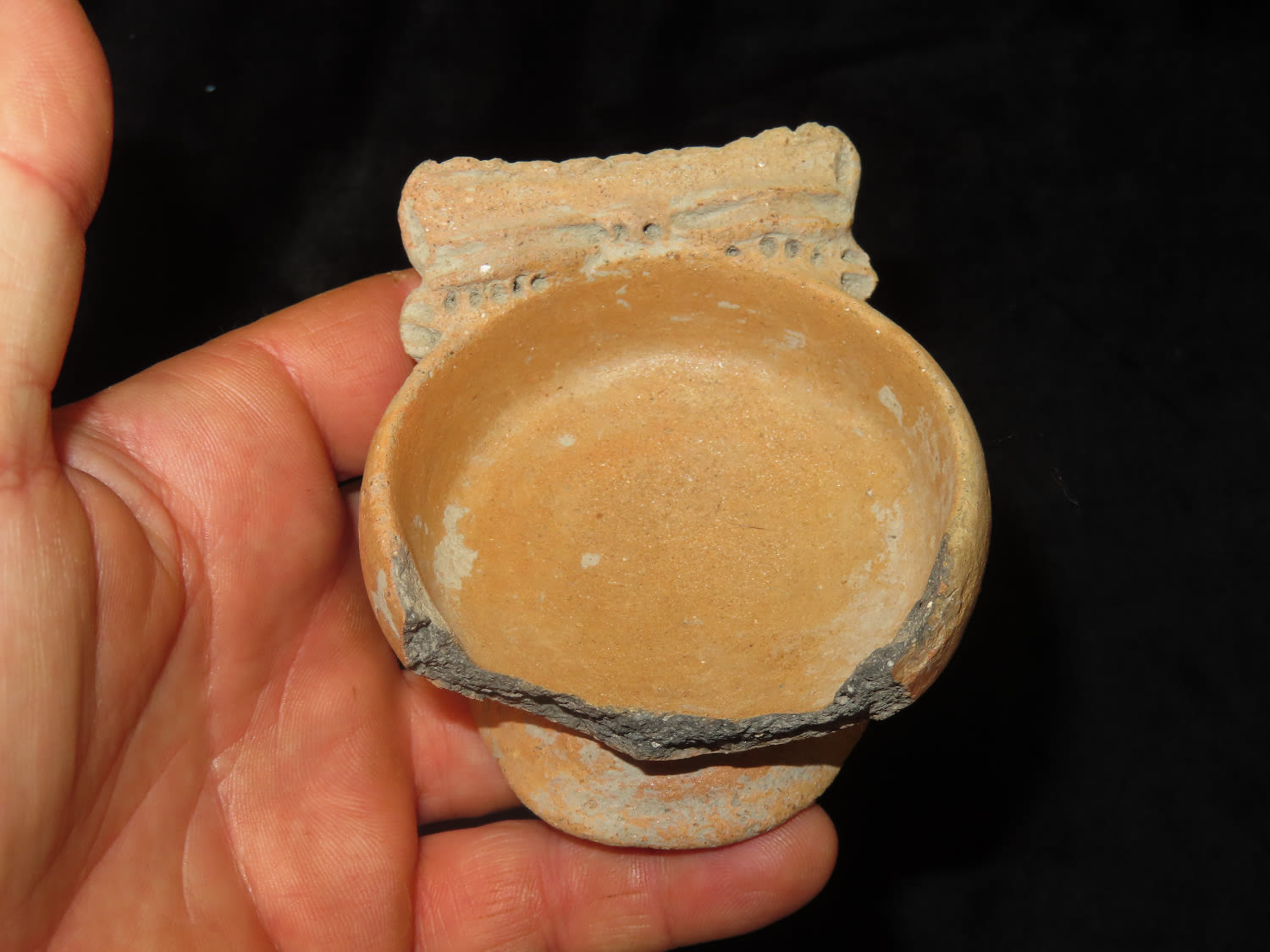 2.7/8″ Dia Pre Columbian Effigy Pottery Dish