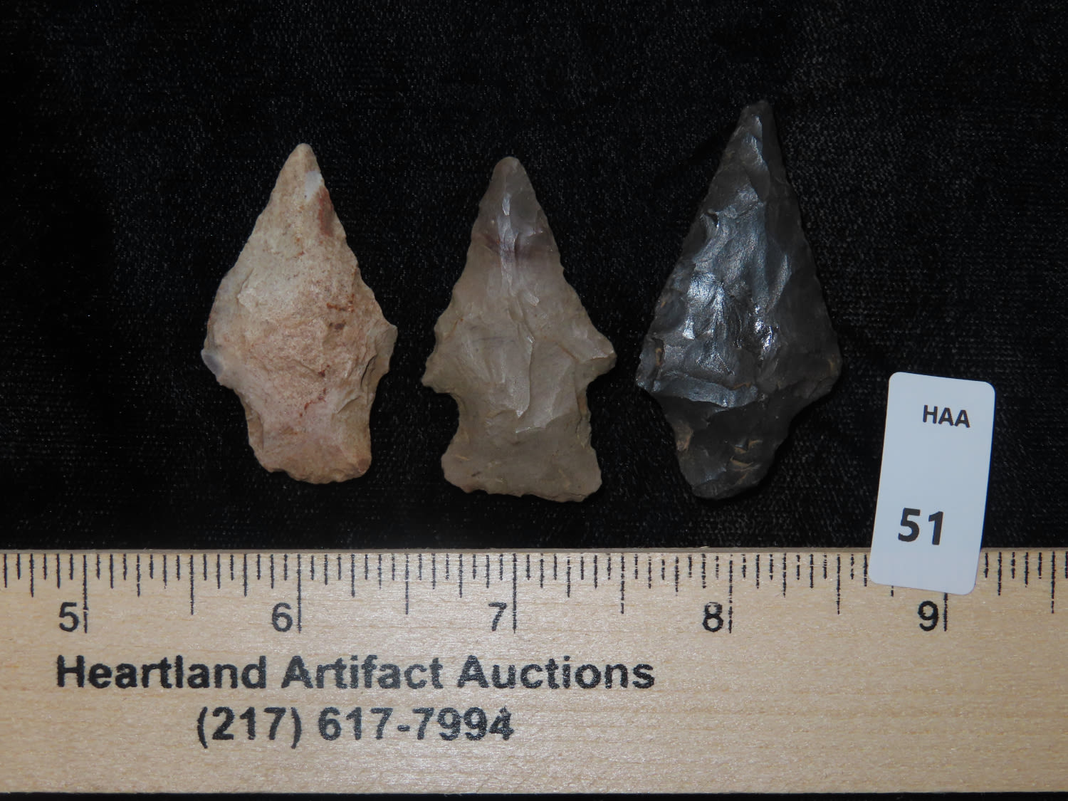 3 Nice Kentucky Arrowheads, Ex Rocky Hall
