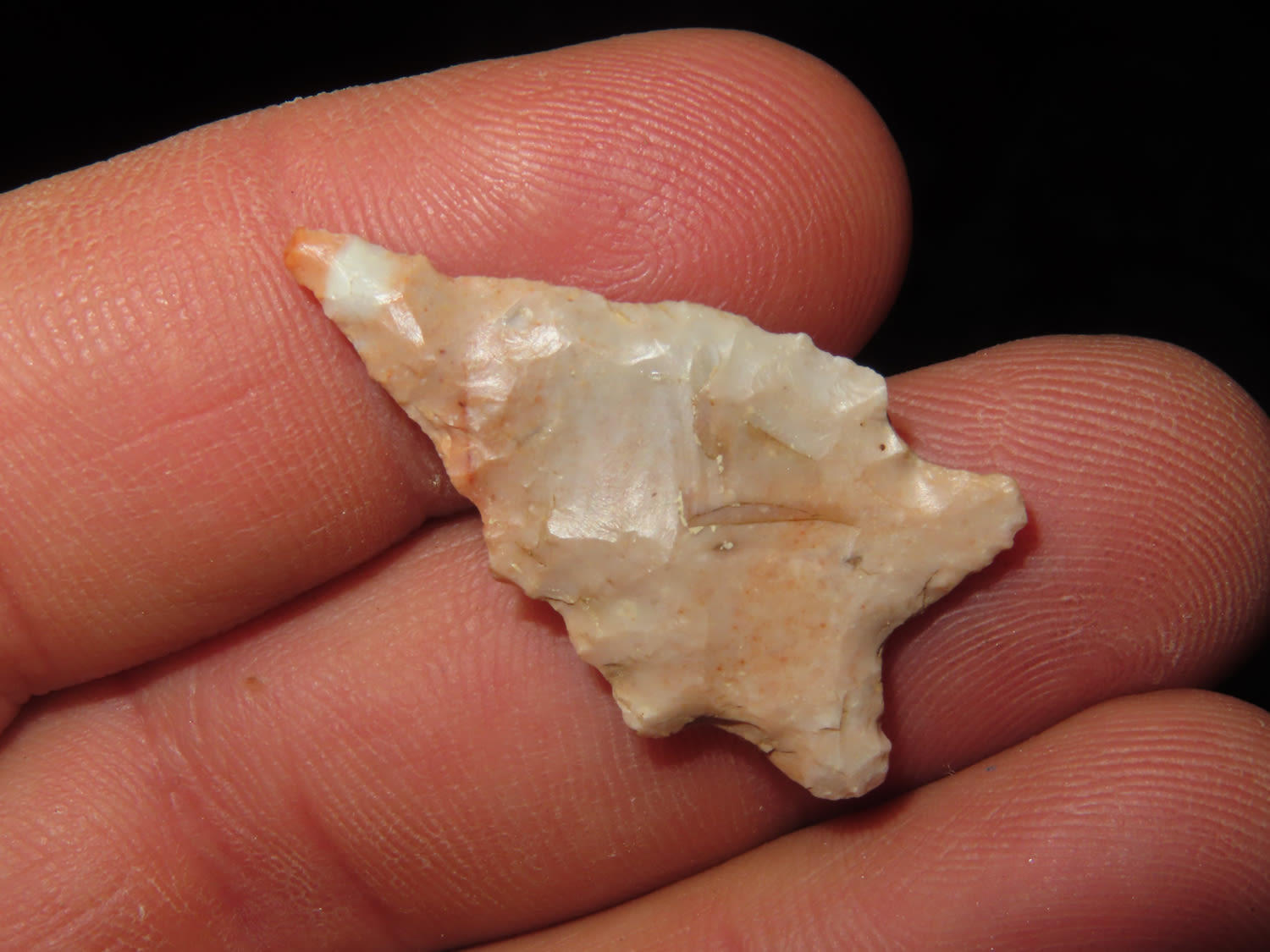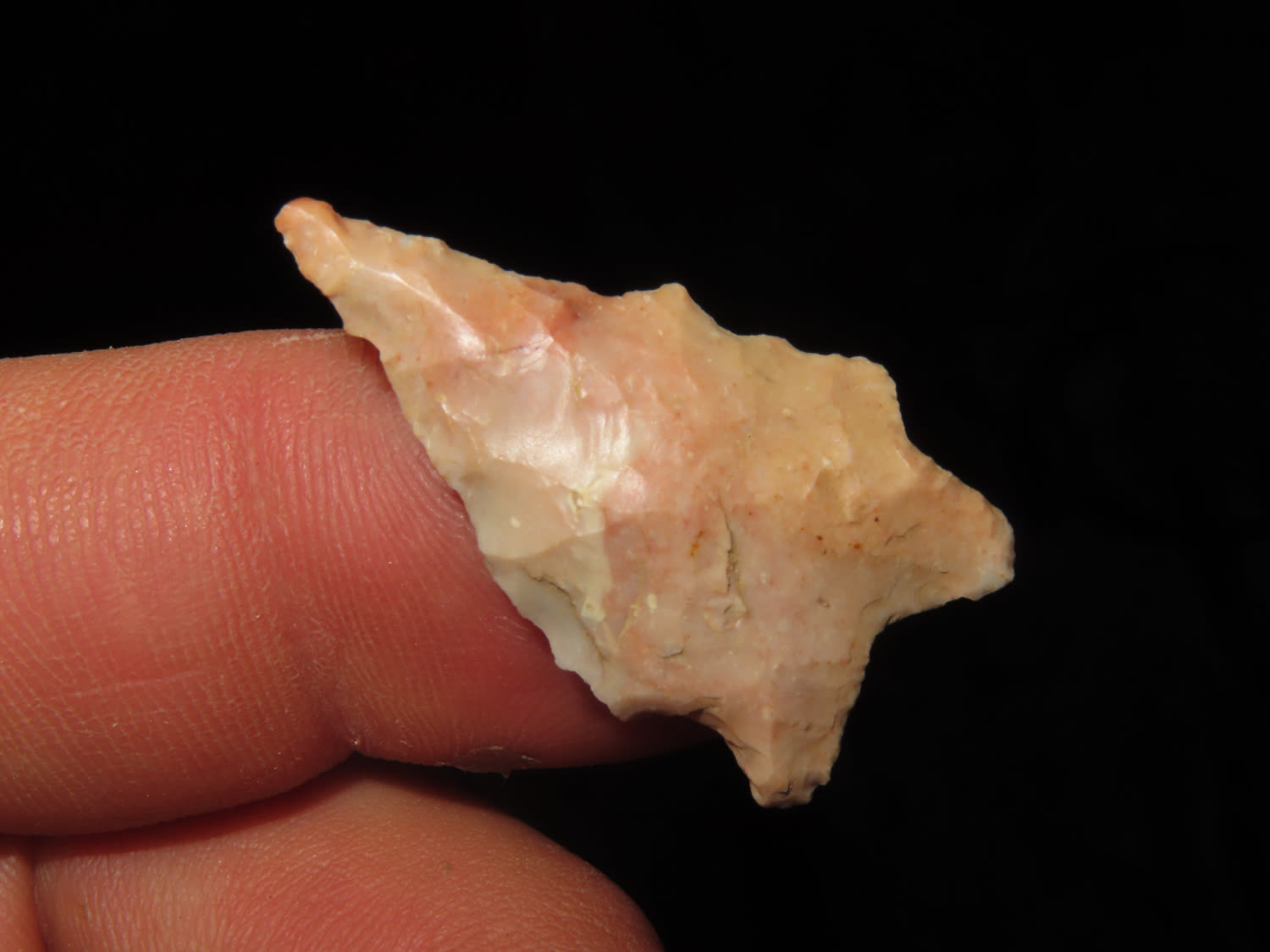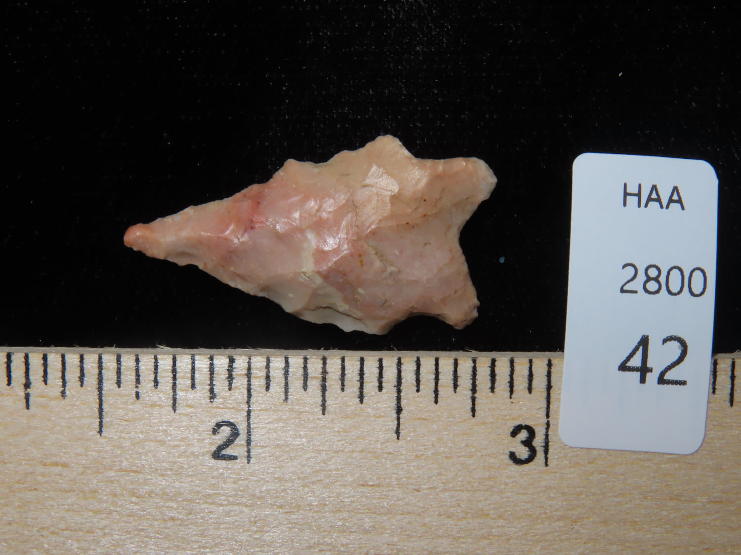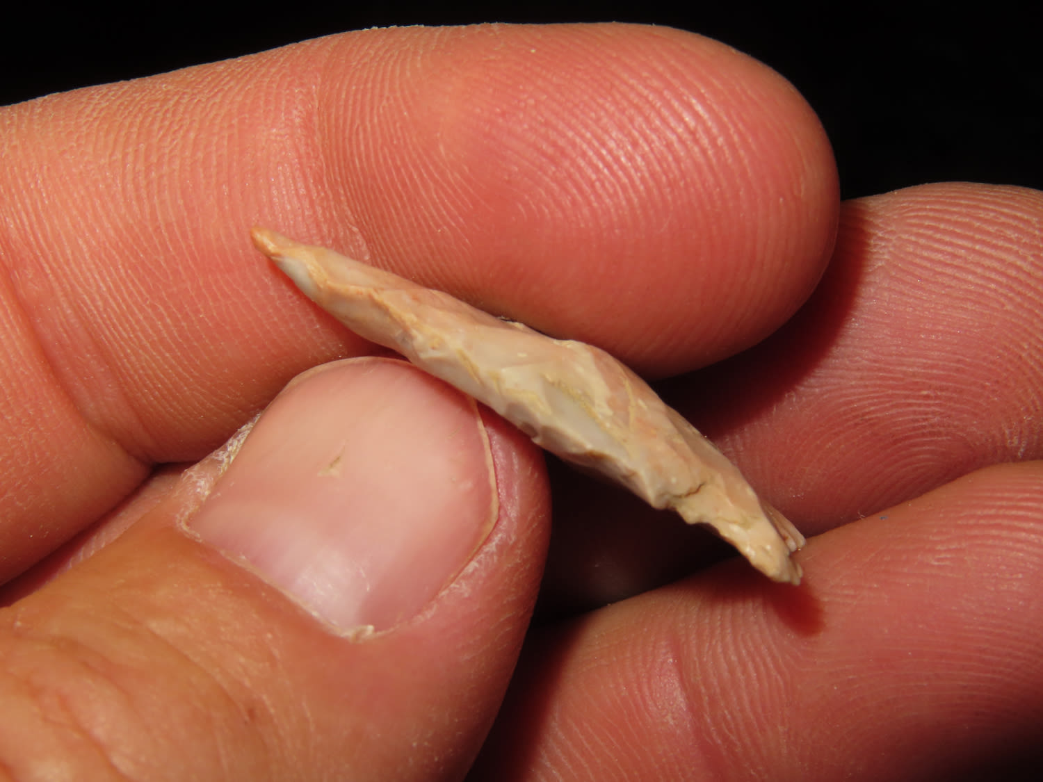1.1/4″ Needle Tip Bifurcated Point, found by Jim and Burley Fritz in Pulaski County Indiana