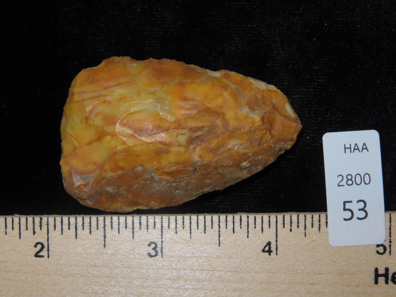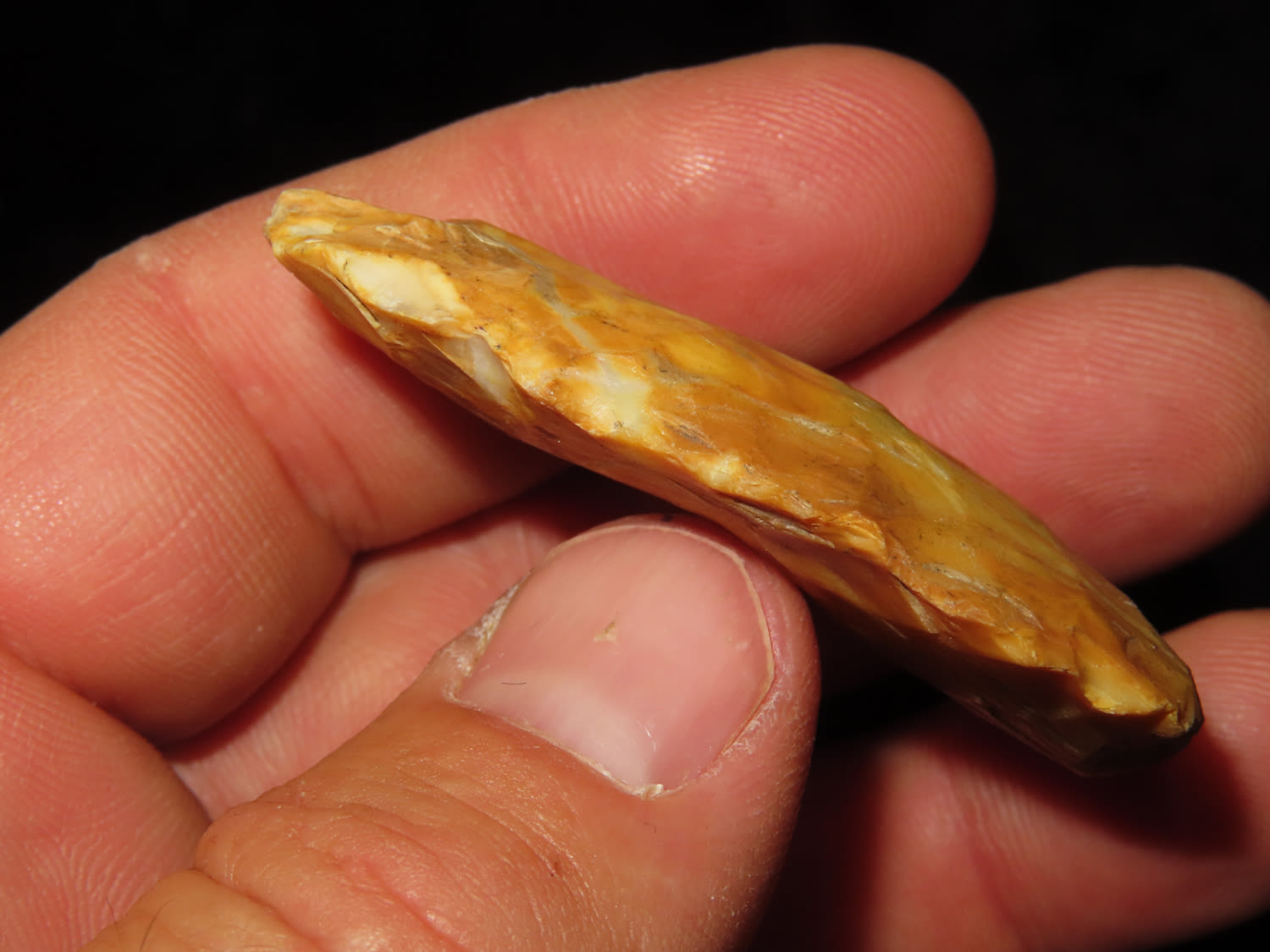 River Colored Early Archaic Knife, found by Jim and Burley Fritz in Pulaski County Indiana