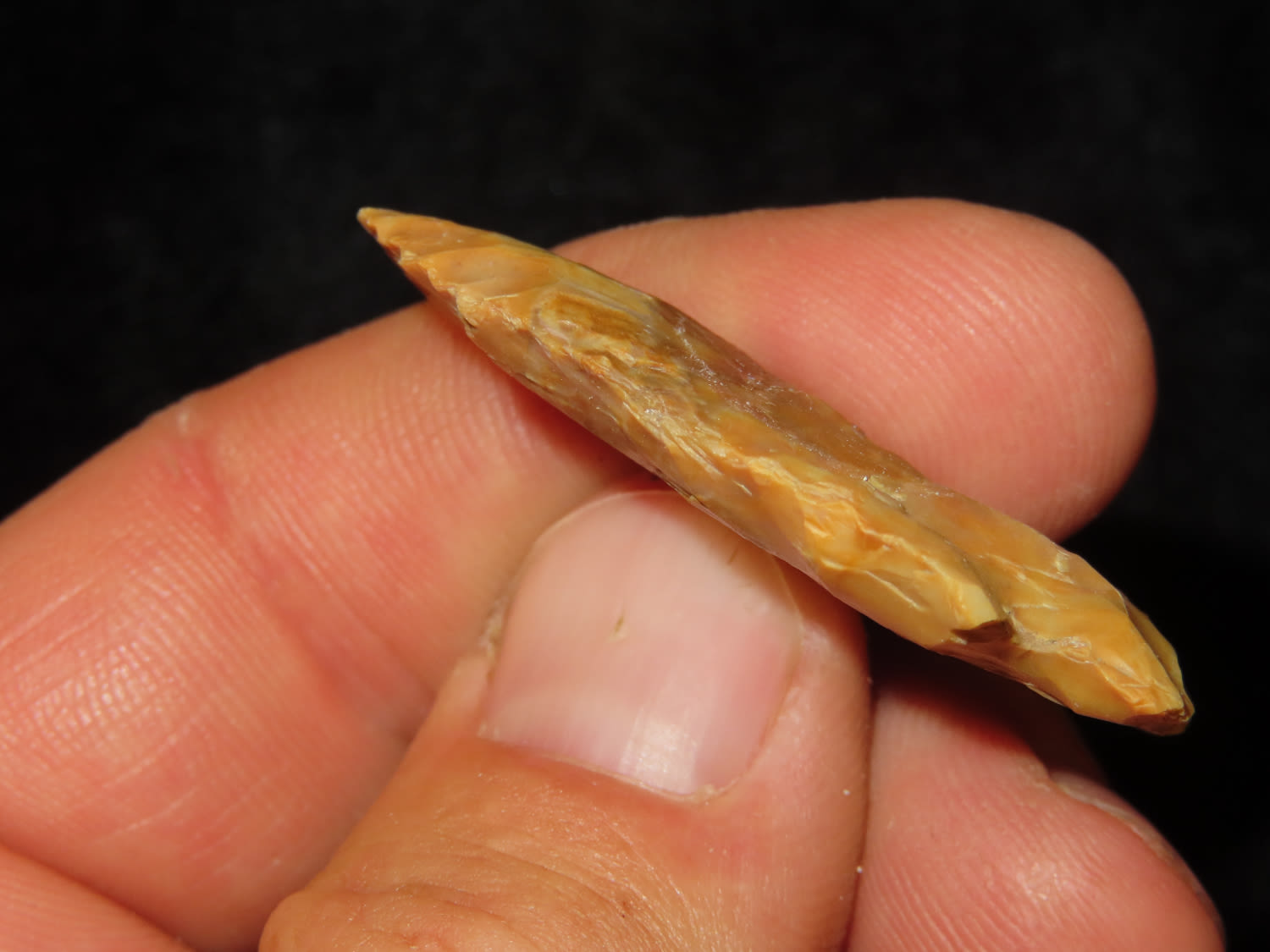 1.3/4″ Flint Ridge Woodland Point, found by Jim and Burley Fritz in Pulaski County Indiana