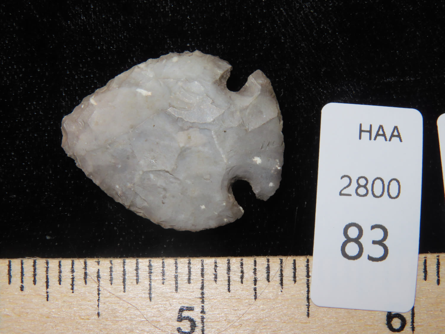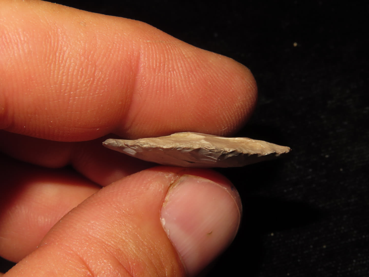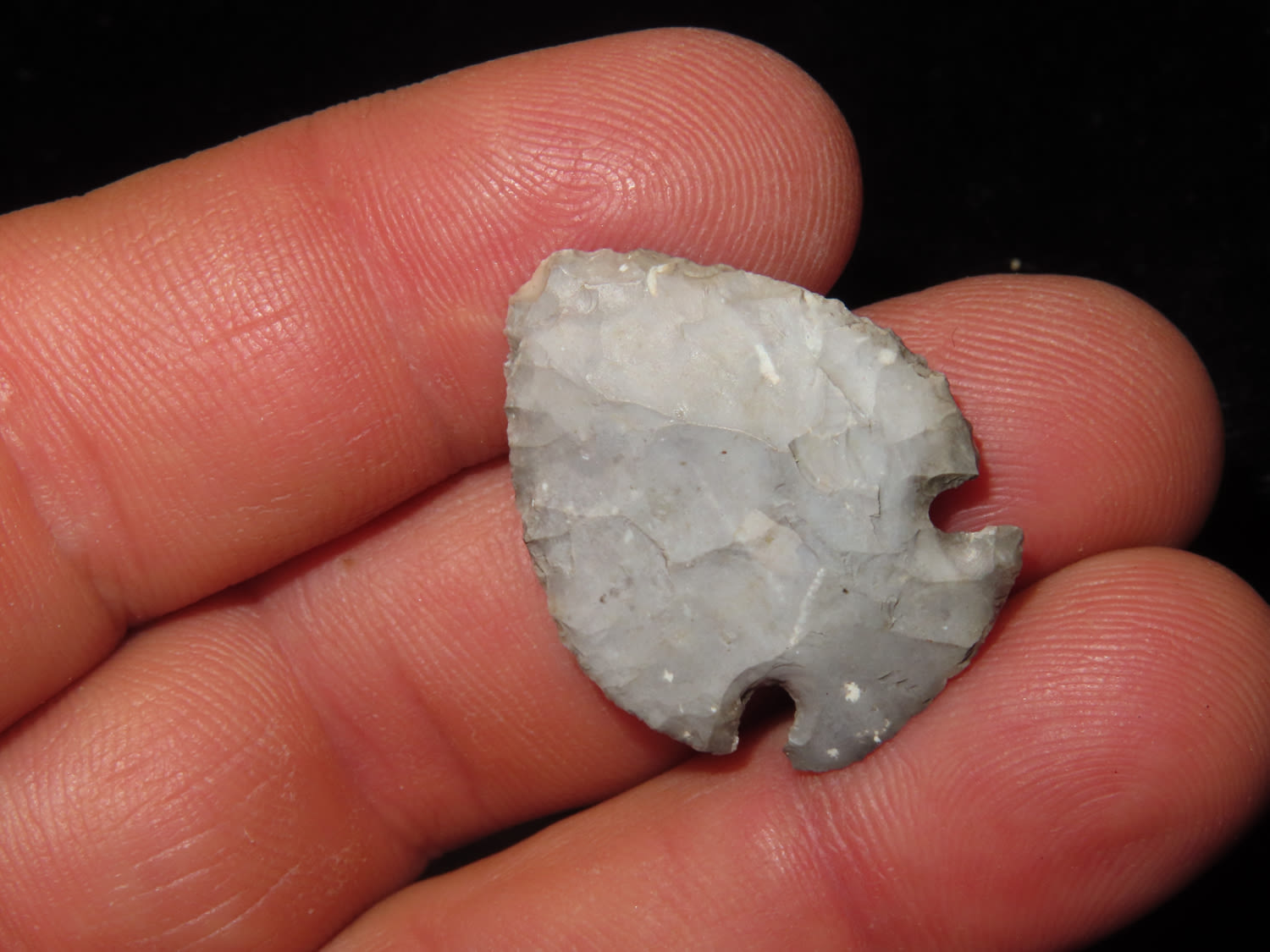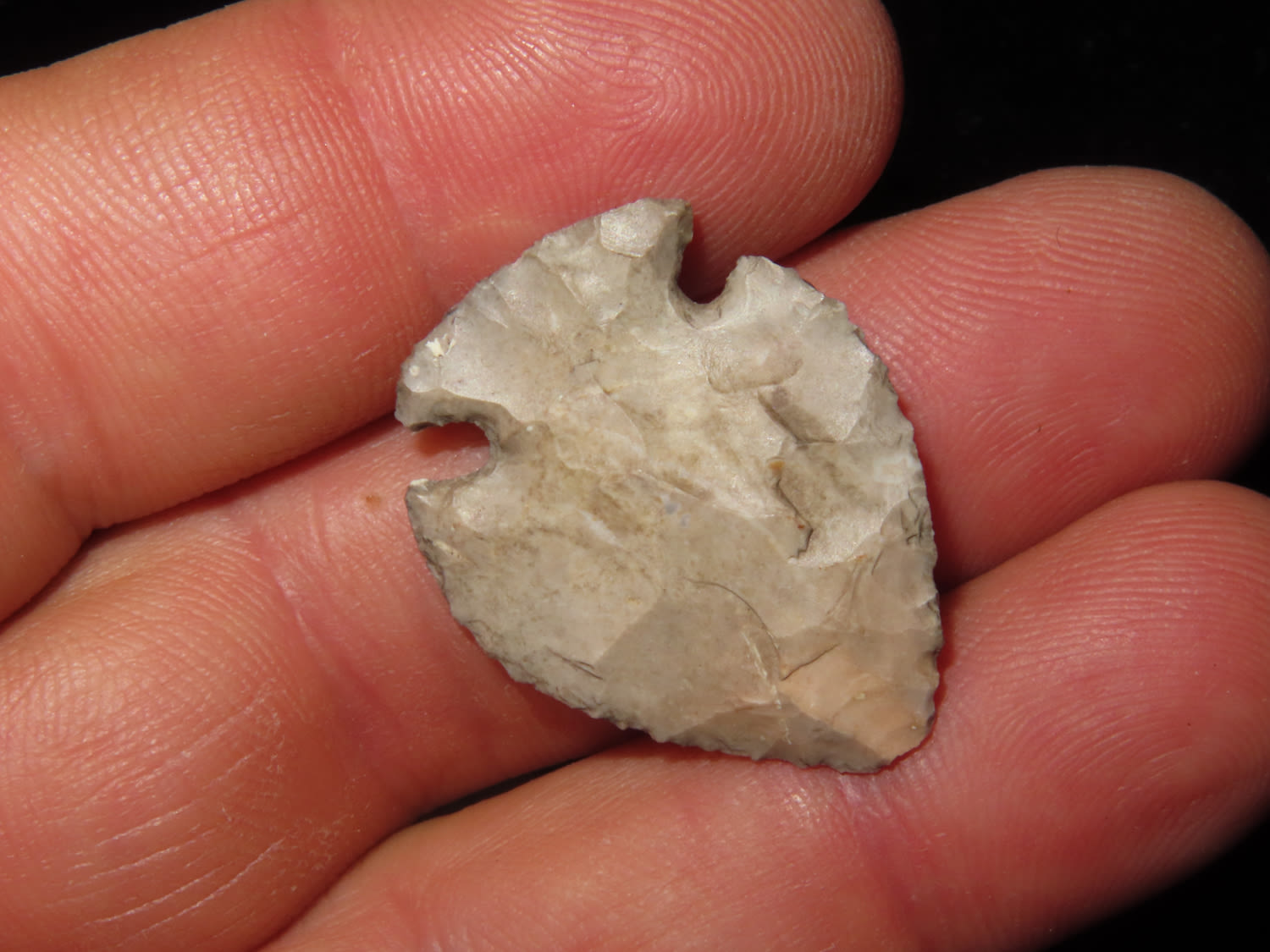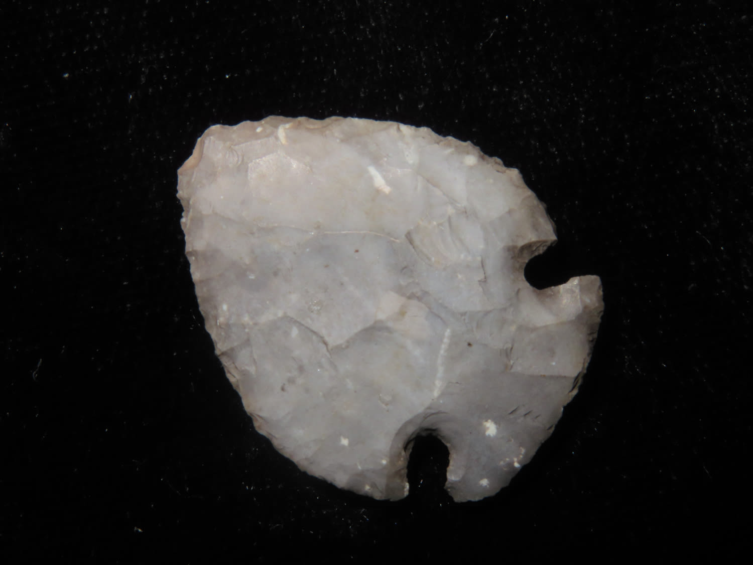 1.1/8″ Sunfish Micro Notched Point, found by Jim and Burley Fritz in Pulaski County Indiana