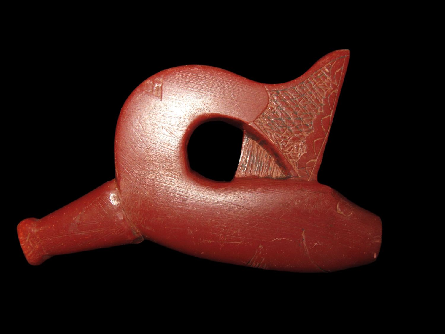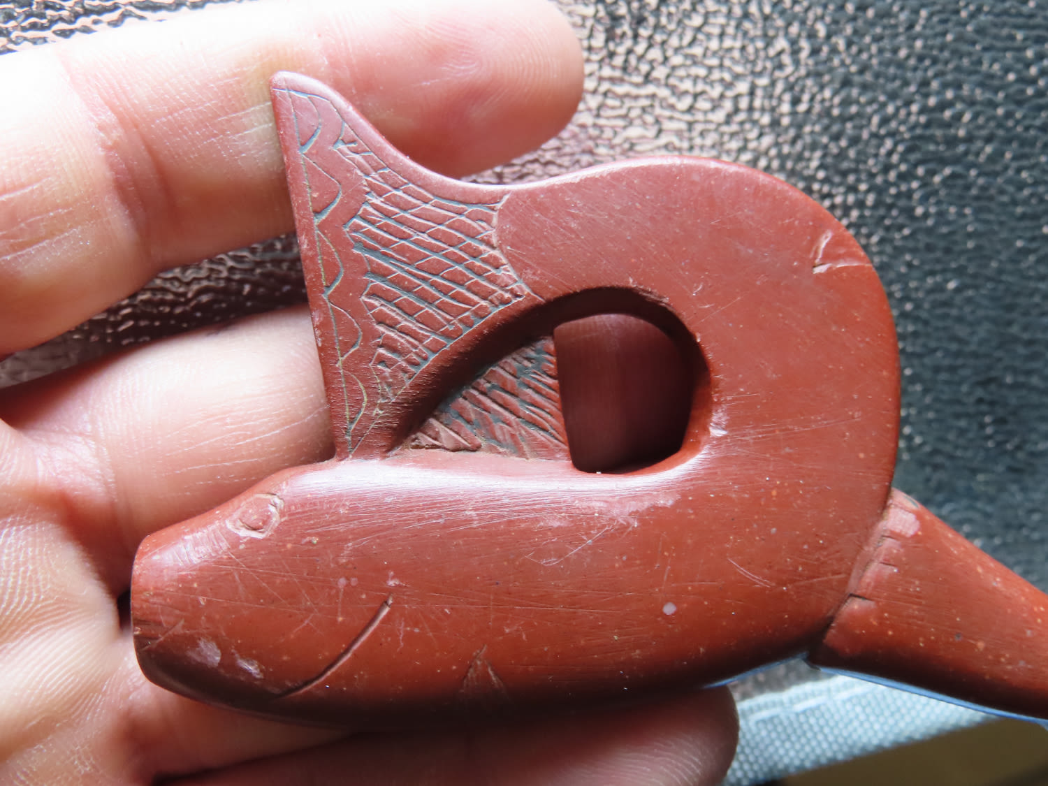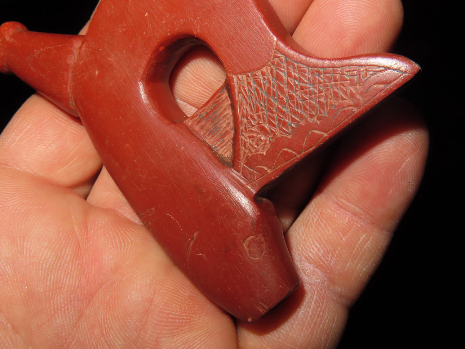 3 3/8″ Plains Fish Effigy Pipe, Jackson COA, broken and glued, Ex Jerry Mueller Collection