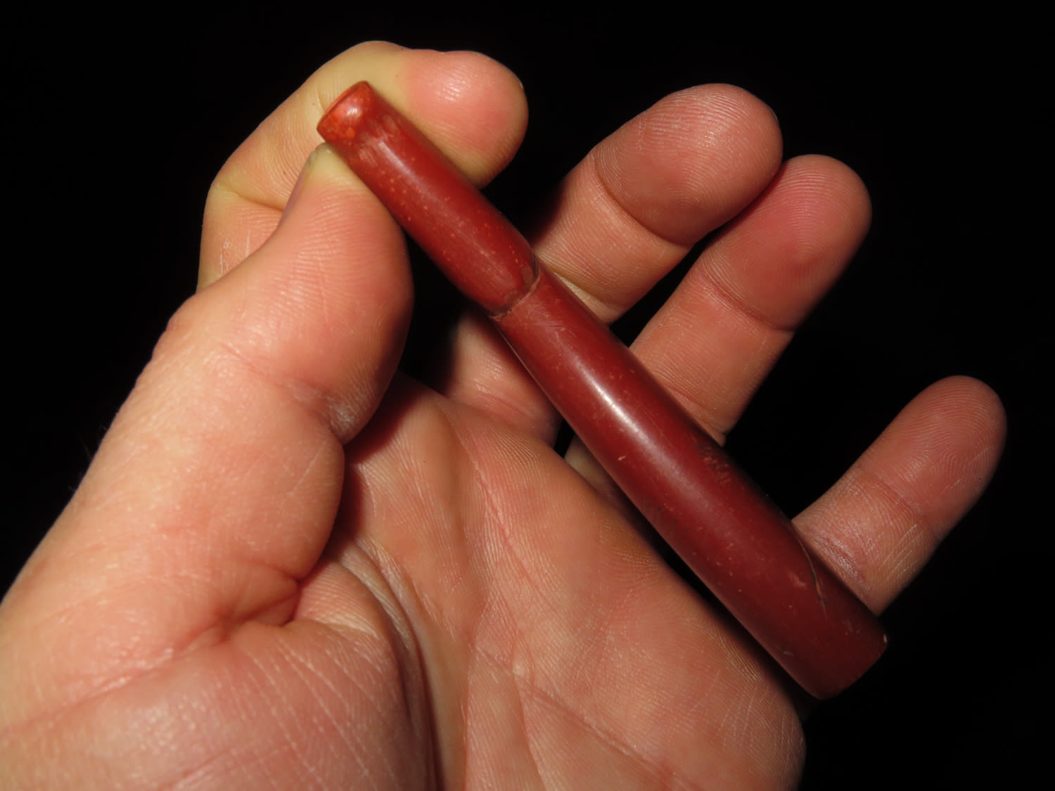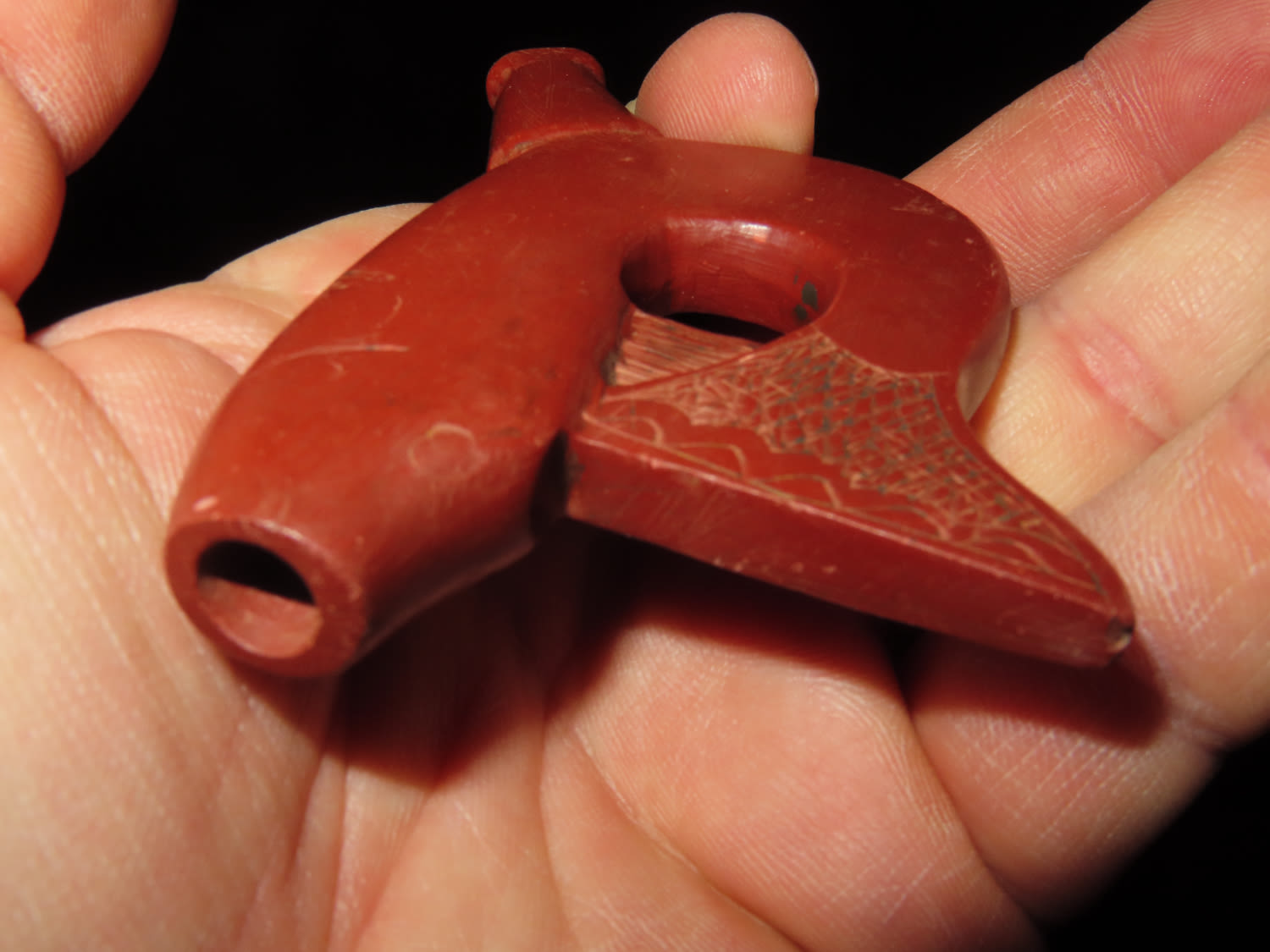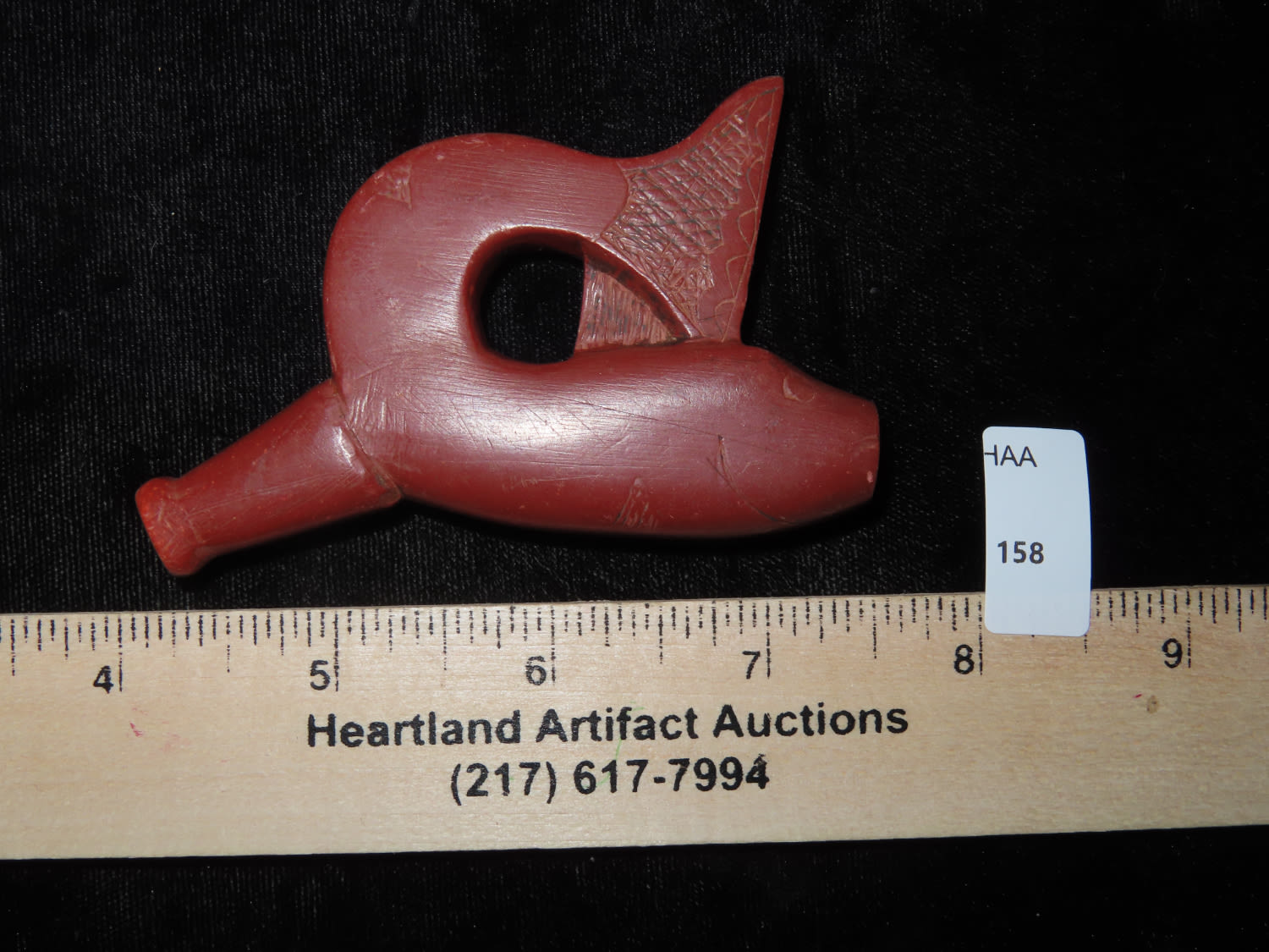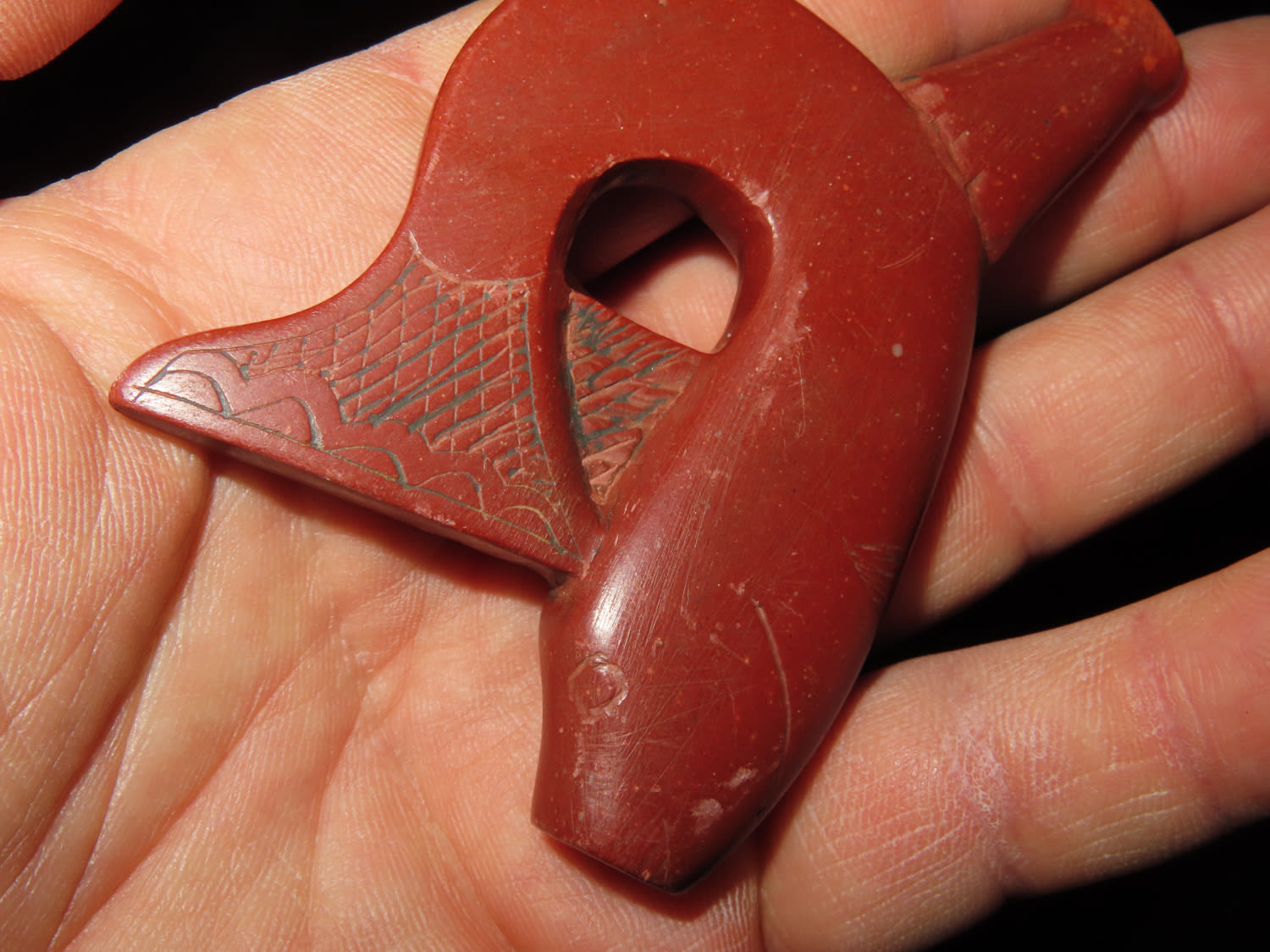 3 3/8″ Plains Fish Effigy Pipe, Jackson COA, broken and glued, Ex Jerry Mueller Collection