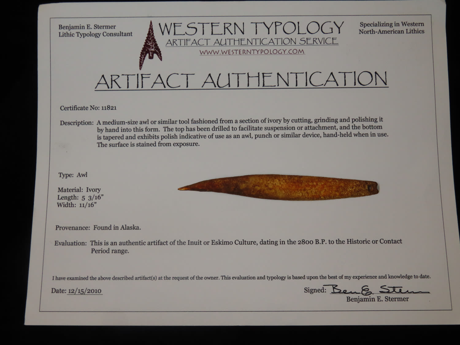 5 1/4" Drilled Bone Awl, Stermer COA, Alaskan Eskimo