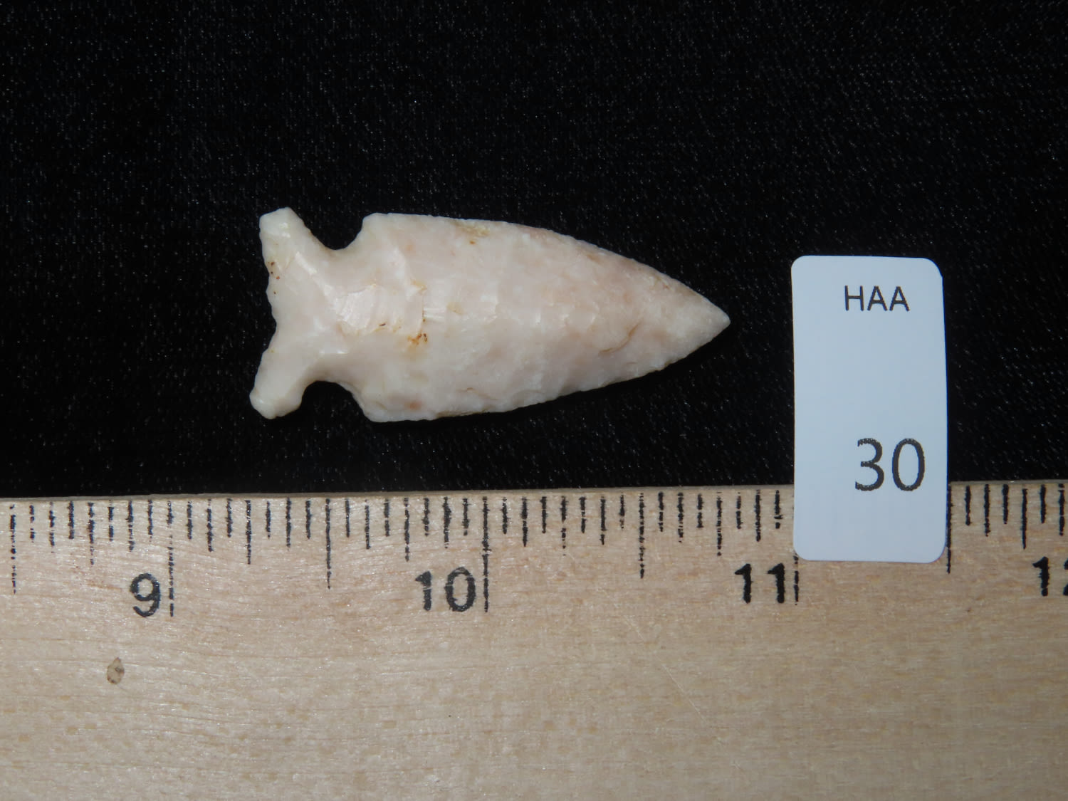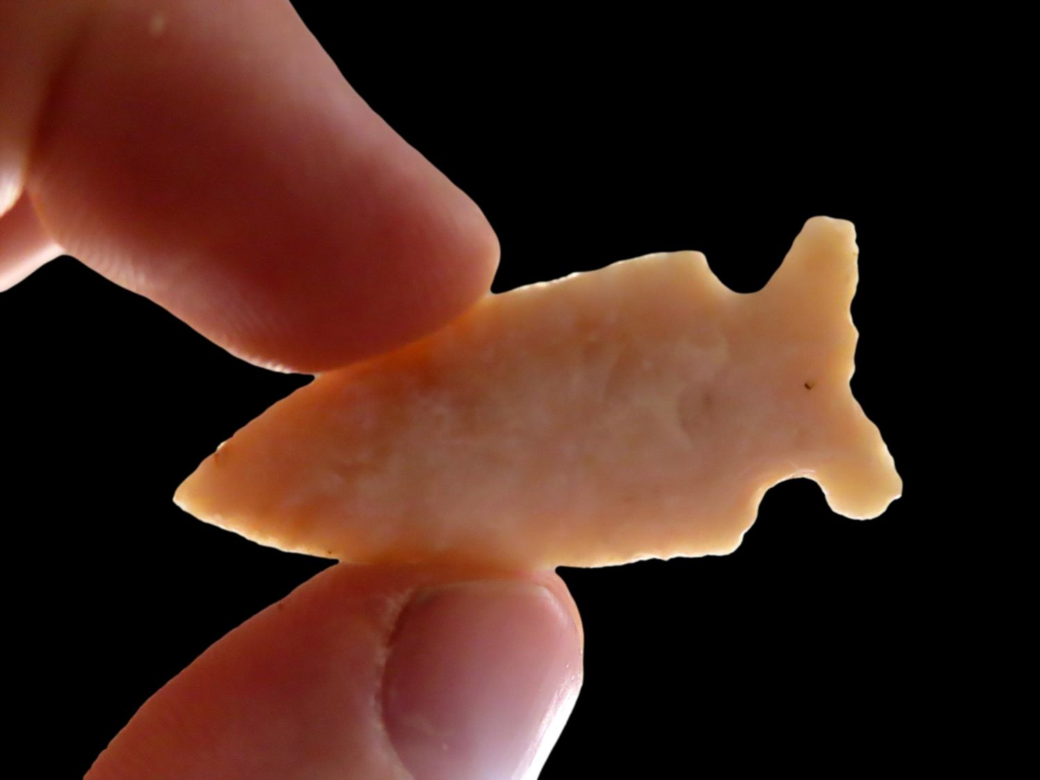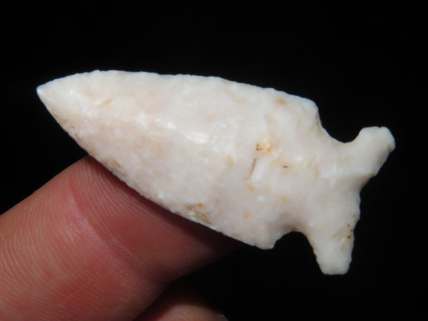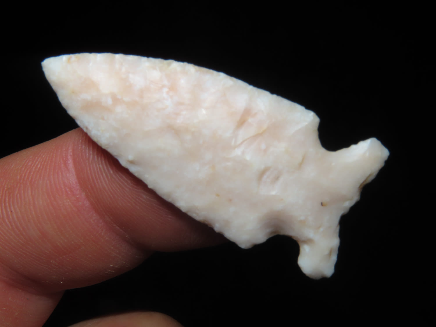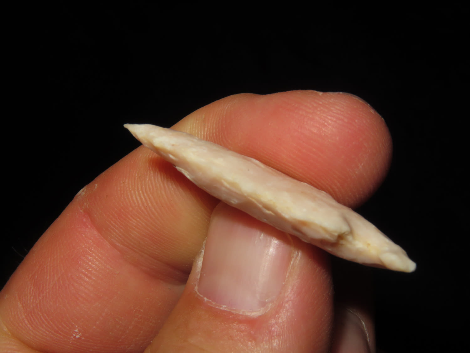 1.1/2″ Robbinson, High Grade Crecent Quarry Chert which is lightly heated, Found on the Joe Czaia Farm East of Nutwood Illinois. The farm lays along Otter Creek and was in the Czaia Family since before the Great Depression. Jersey County Illinois.
