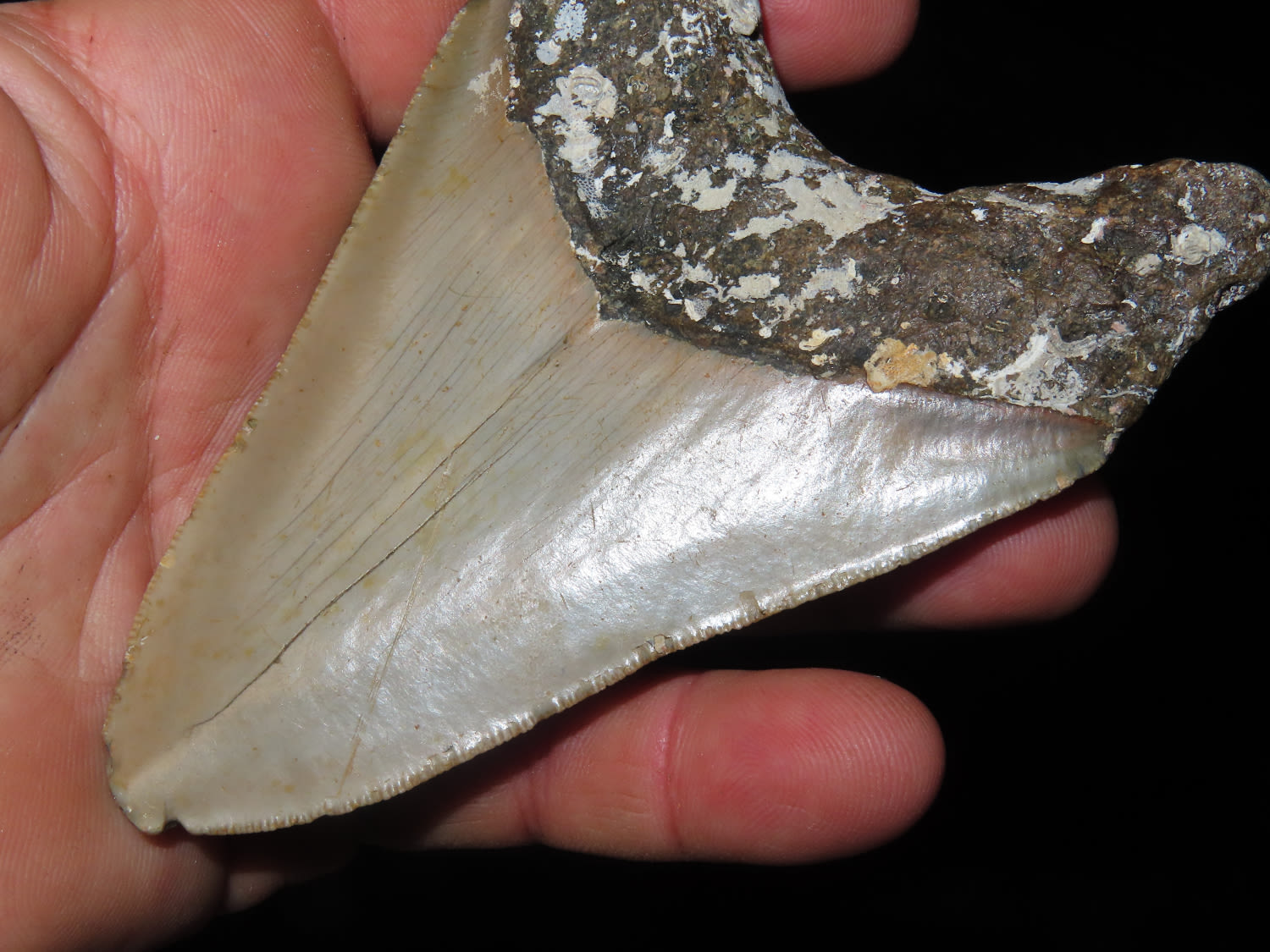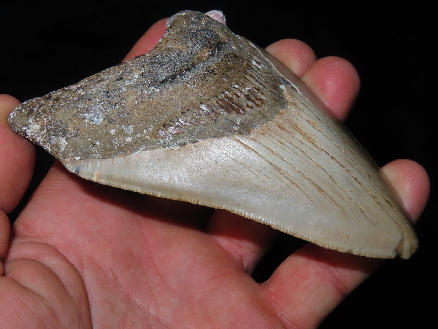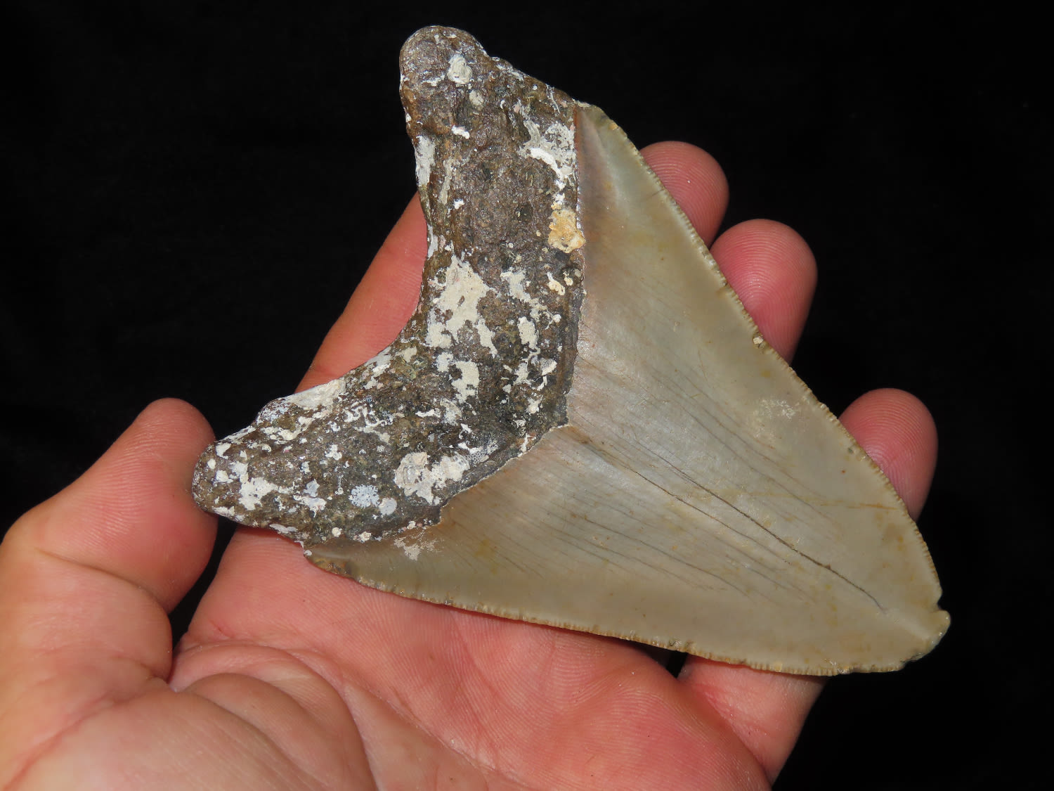 4 1/2″ Fossilized Megaladon Shark Tooth, found in Florida