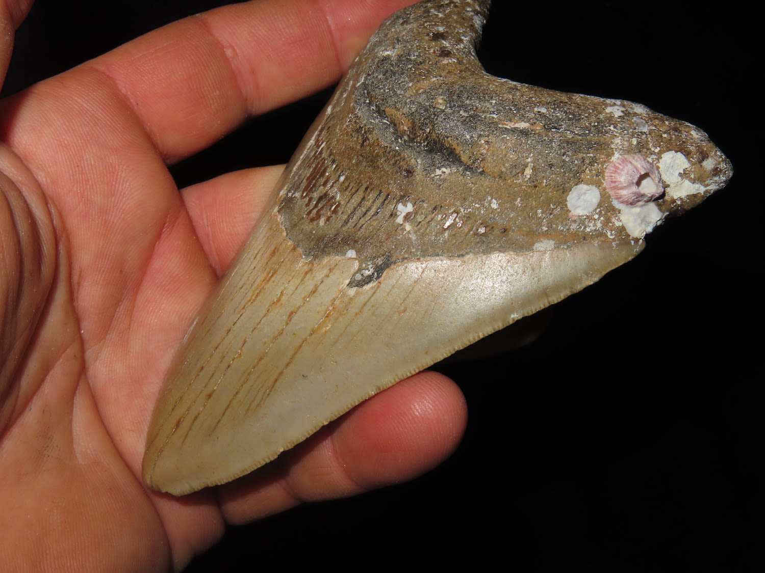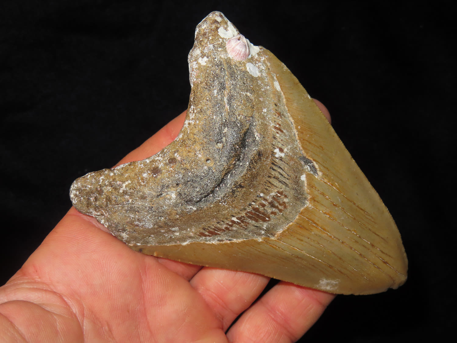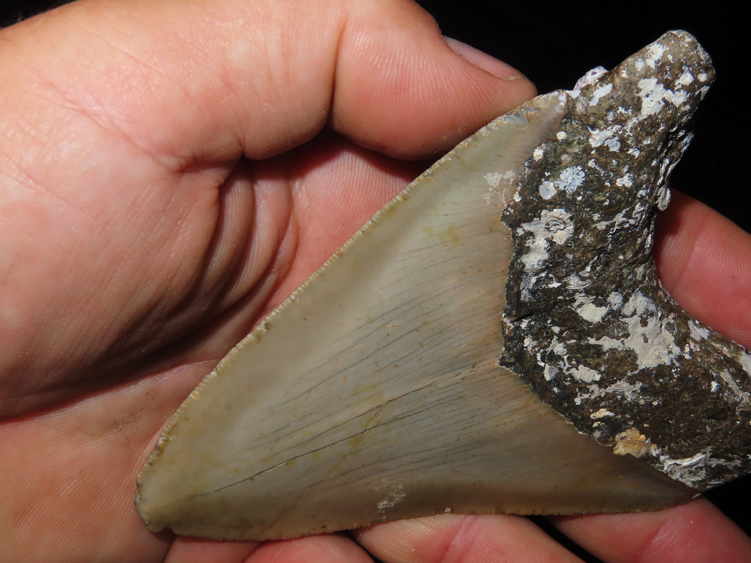 4 1/2″ Fossilized Megaladon Shark Tooth, found in Florida