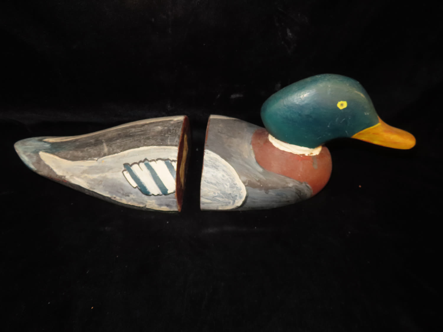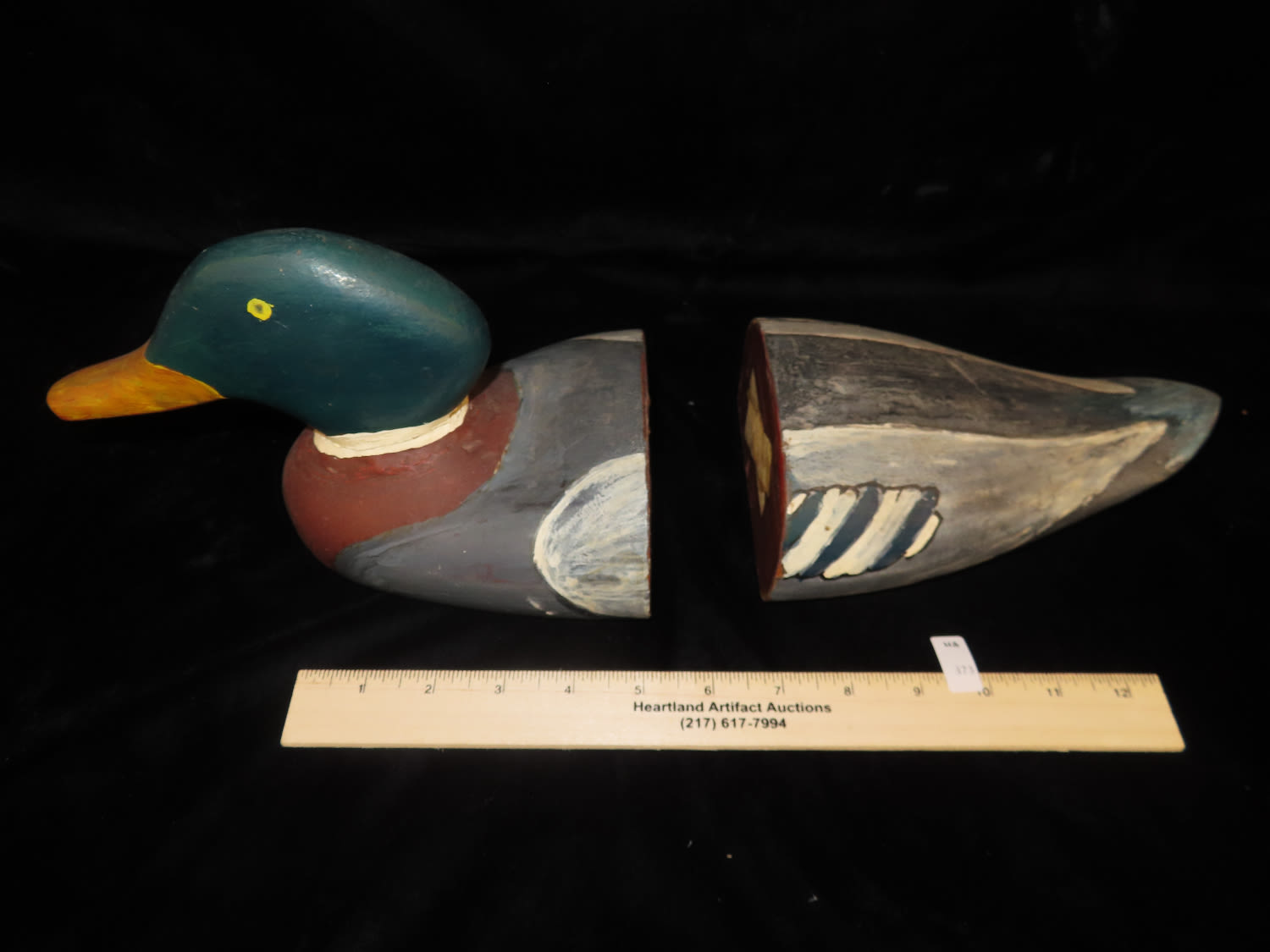 Drake Mallard “Book – End” Decoy, Ex Briscoe Collection, Duck/Goose Decoy, Waterfowl, Hunting, Primitive, Antique, Quincy Illinois