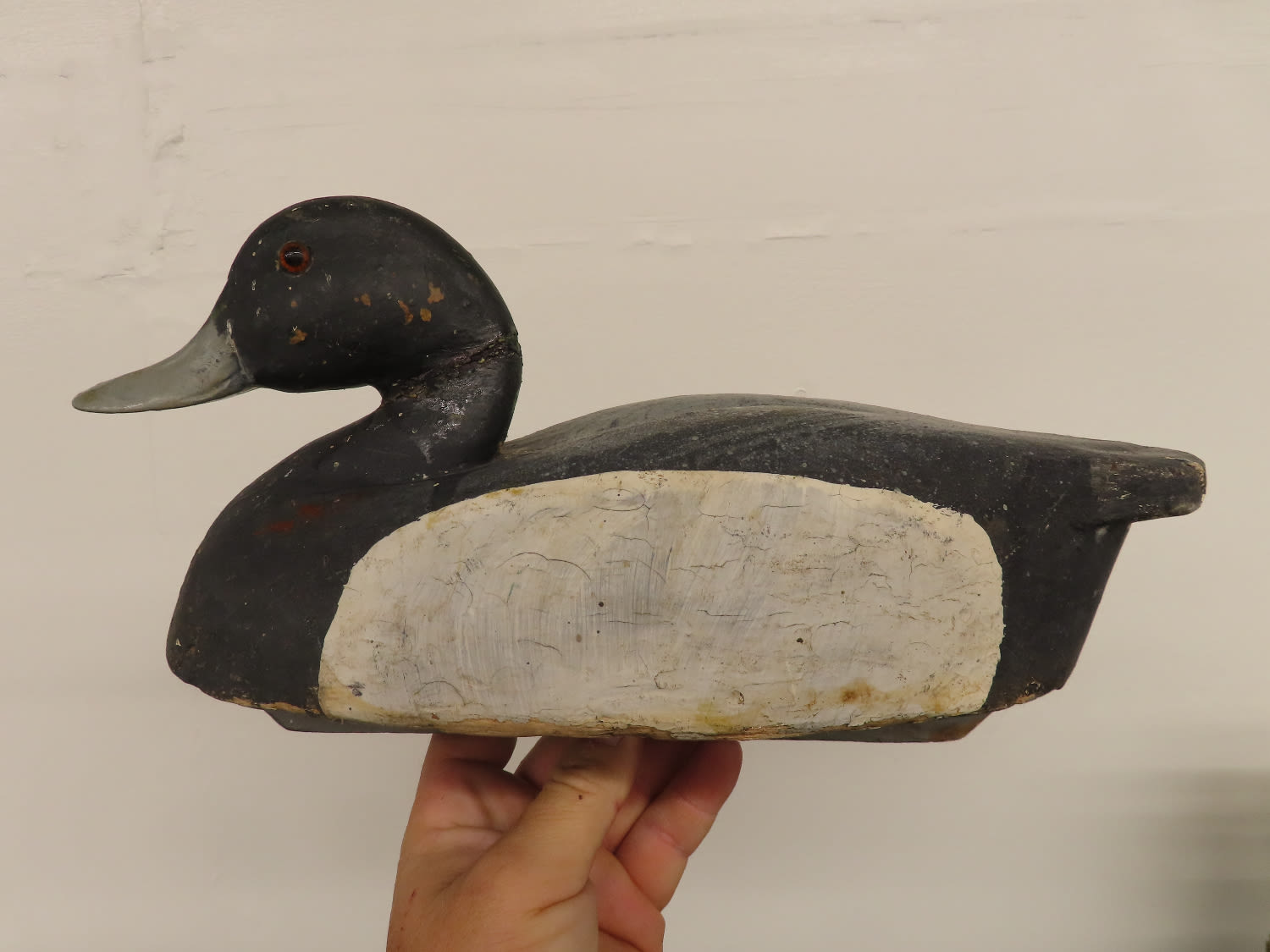 Antique Bluebill Duck Decoy, signed TMT, Ex Briscoe Collection, Duck/Goose Decoy, Waterfowl, Hunting, Primitive, Antique, Quincy Illinois