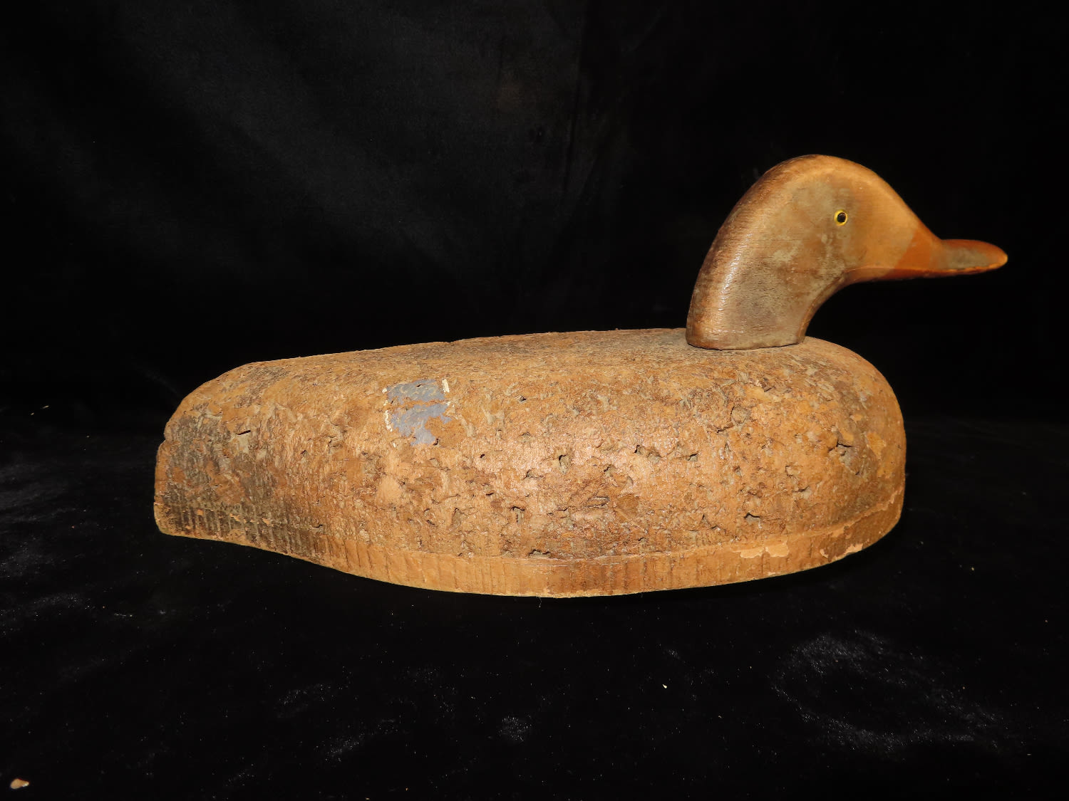 Cork Hen Mallard Decoy, stamped WWH, Ex Briscoe Collection, Duck/Goose Decoy, Waterfowl, Hunting, Primitive, Antique, Quincy Illinois