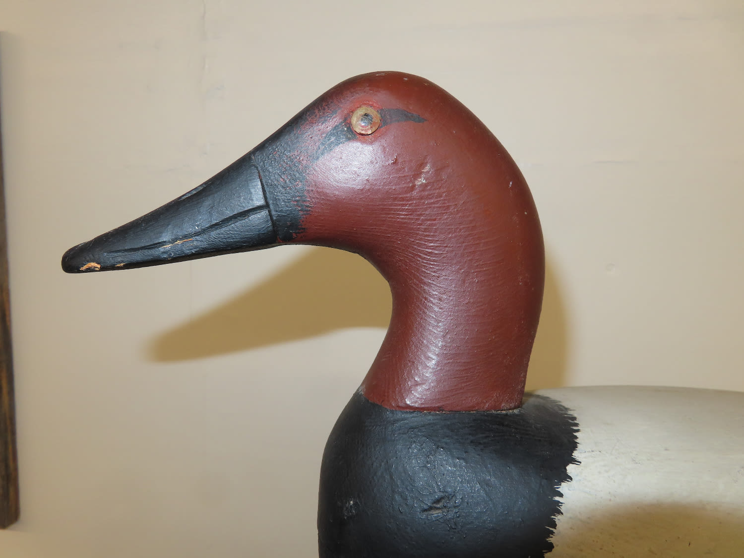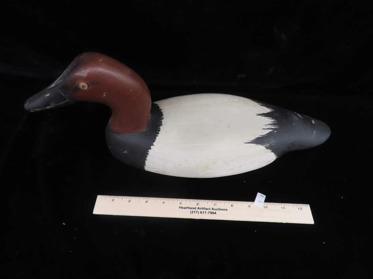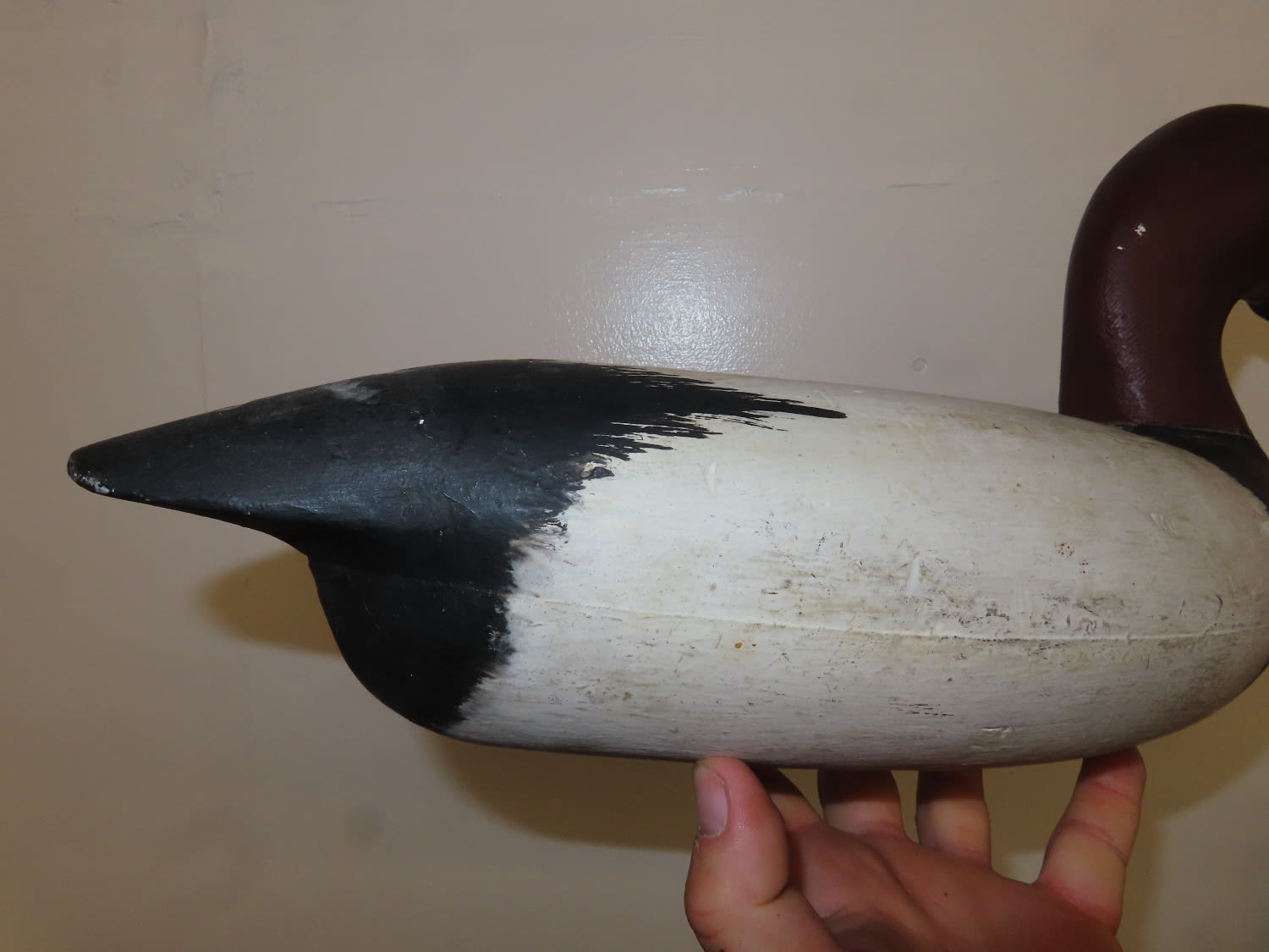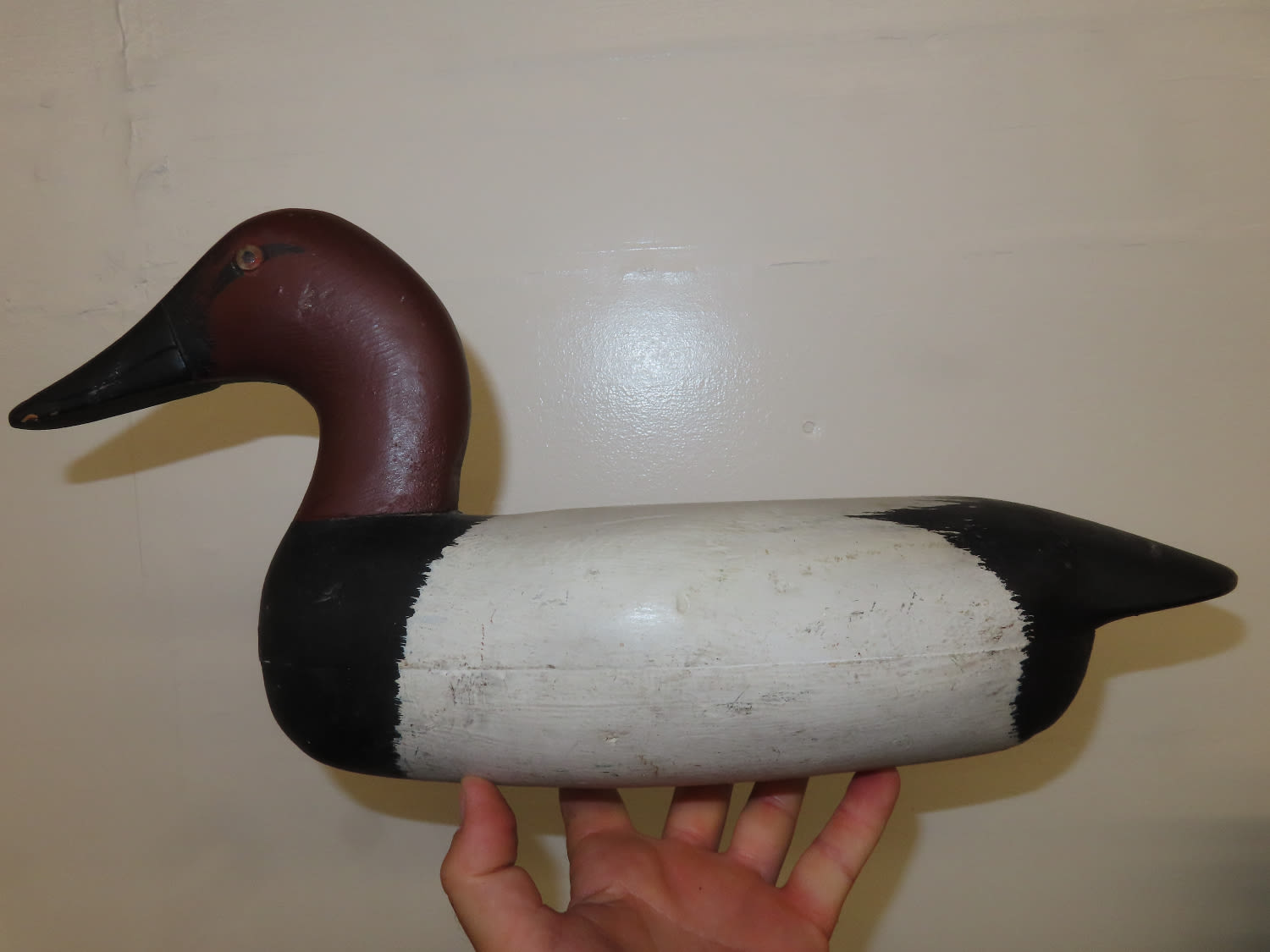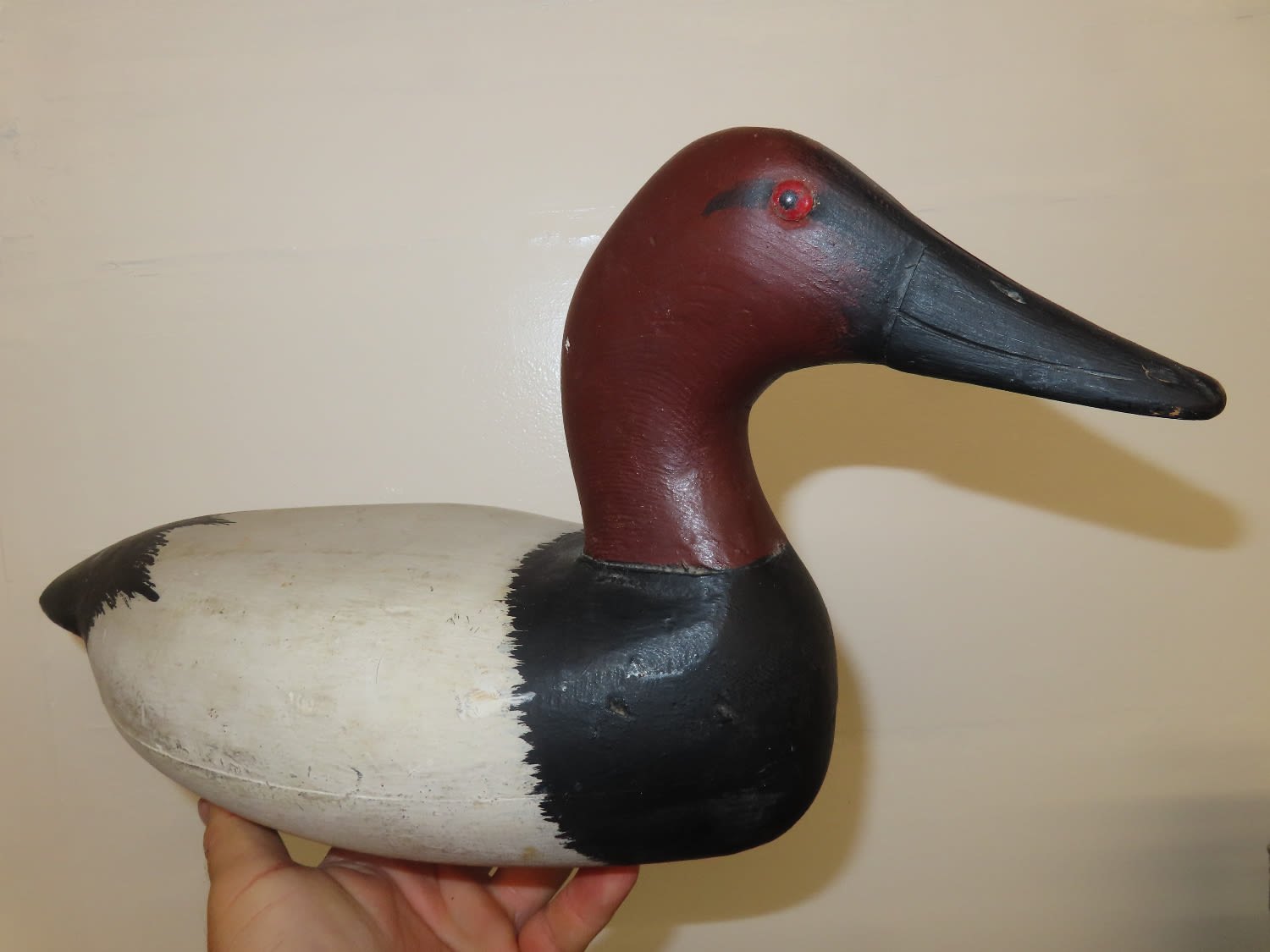 Sale Highlight! Working Canvas Back Decoy, made by Roy Hancock in the 1940's, original eyes, has been repainted, Ex Briscoe Collection, Duck/Goose Decoy, Waterfowl, Hunting, Primitive, Antique, Quincy Illinois