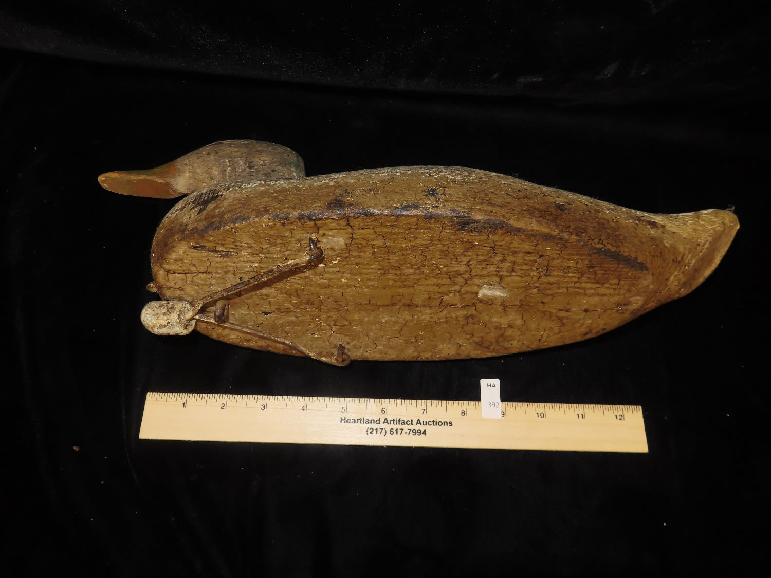 All Original Wooden Black Duck Decoy, with unique lead keel system, Ex Briscoe Collection, Duck/Goose Decoy, Waterfowl, Hunting, Primitive, Antique, Quincy Illinois