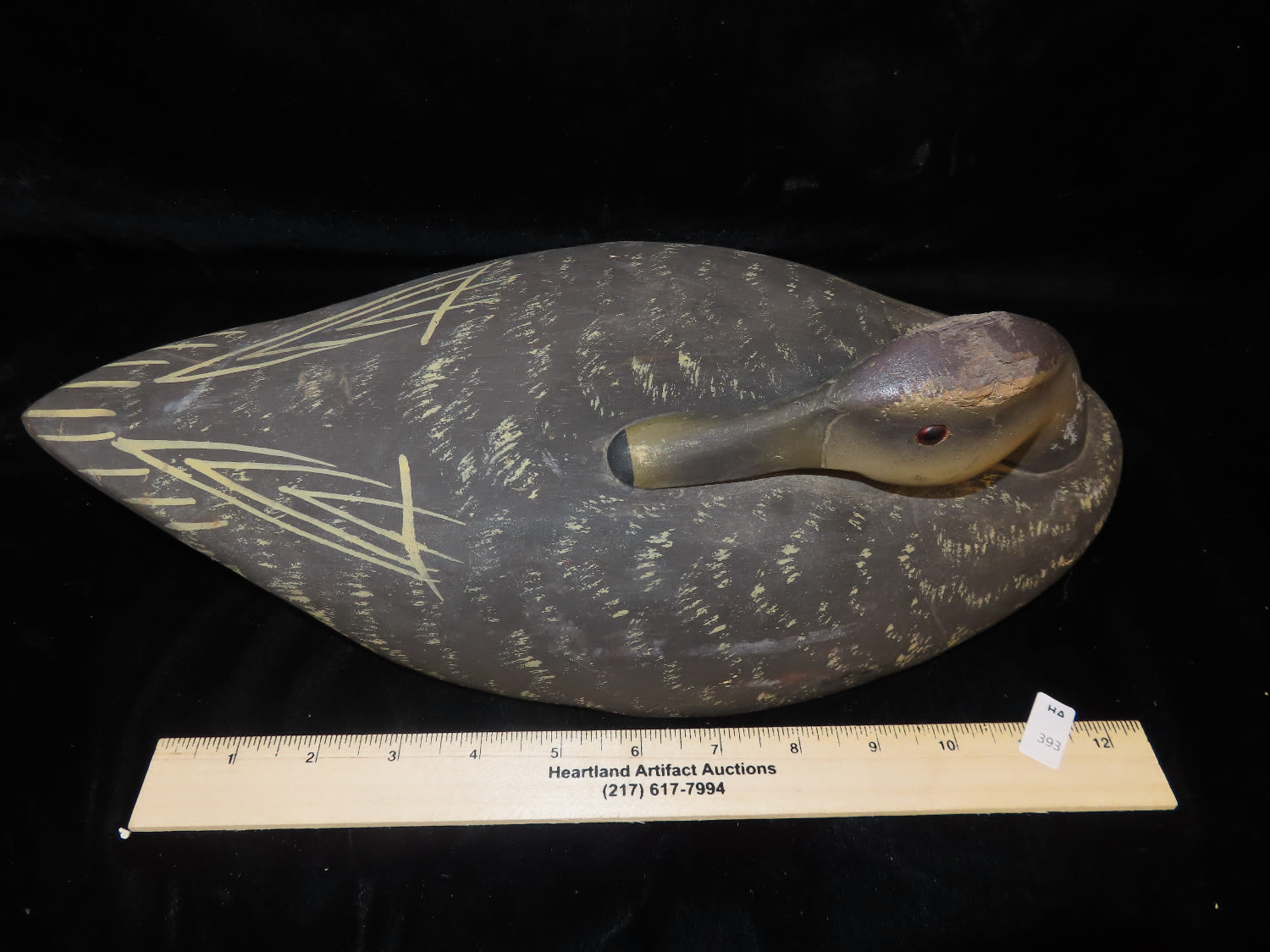 Wooden Black Duck Decoy, Preening Pose, Ex Briscoe Collection, Duck/Goose Decoy, Waterfowl, Hunting, Primitive, Antique, Quincy Illinois