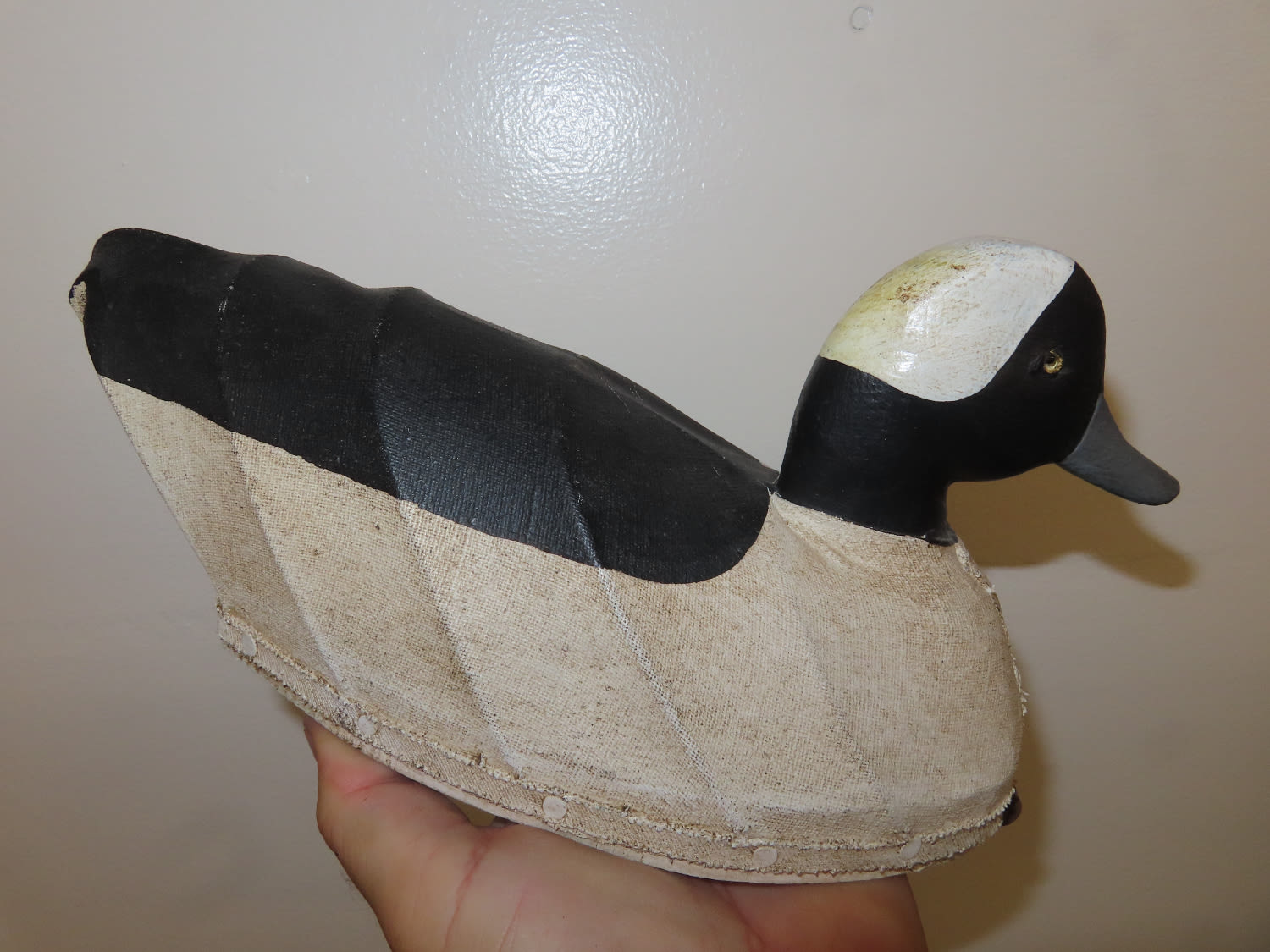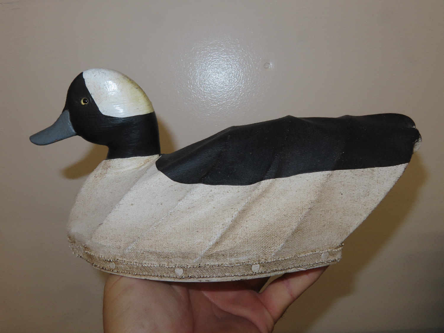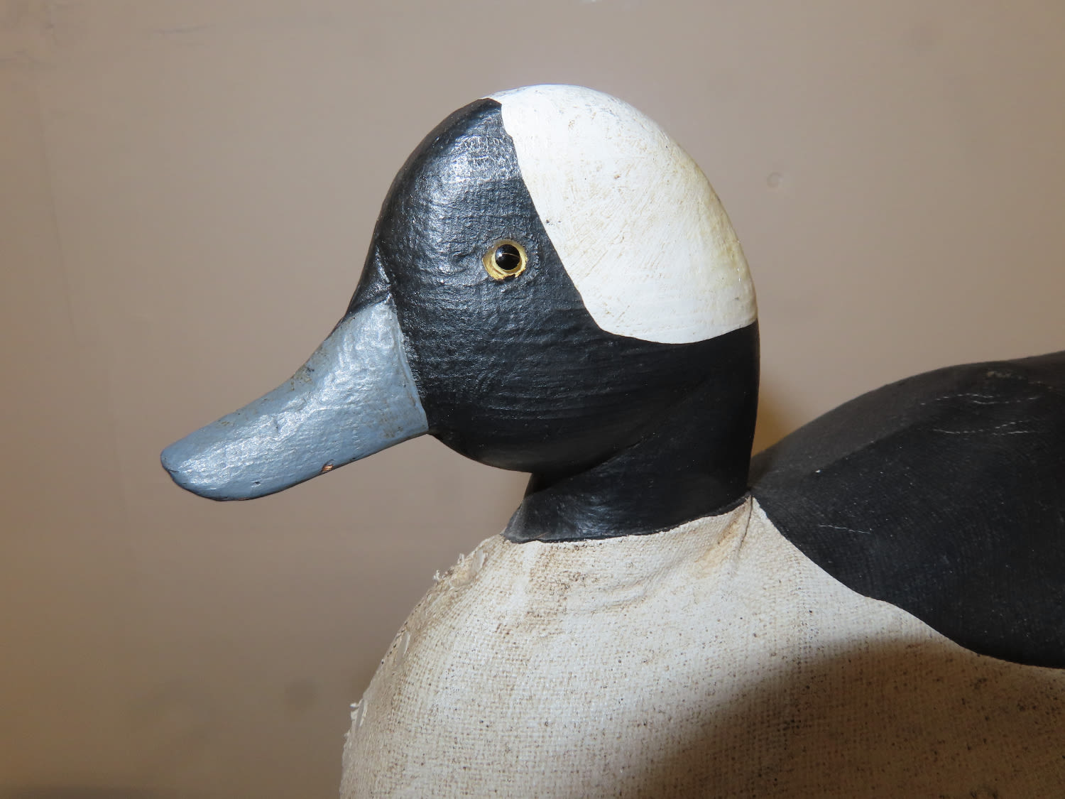 Antique Buffle Head Decoy, made of wood and canvas, made by Wm. Mosley-Knotts Island, North Carolina, Ex Briscoe Collection, Duck/Goose Decoy, Waterfowl, Hunting, Primitive, Antique, Quincy Illinois