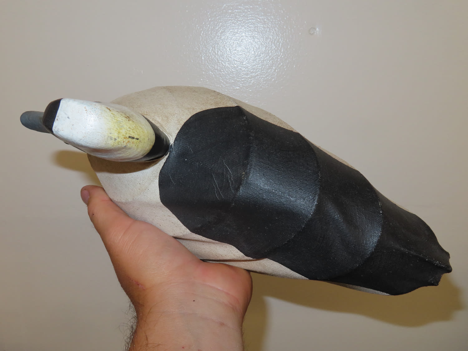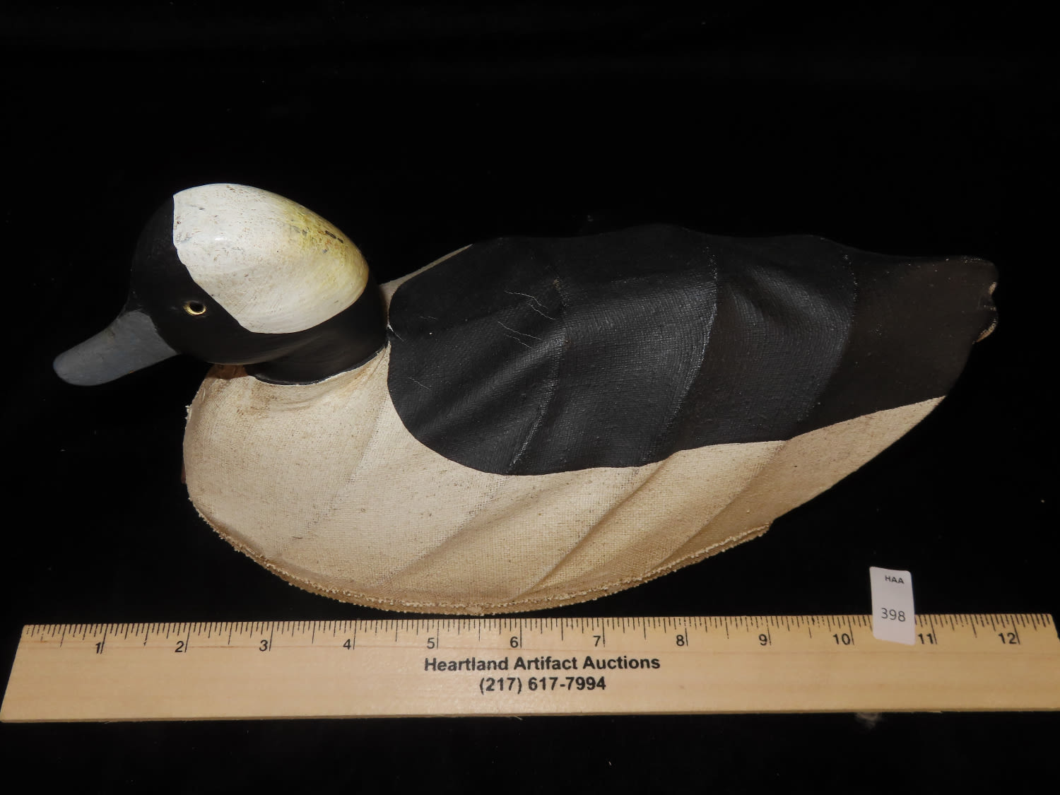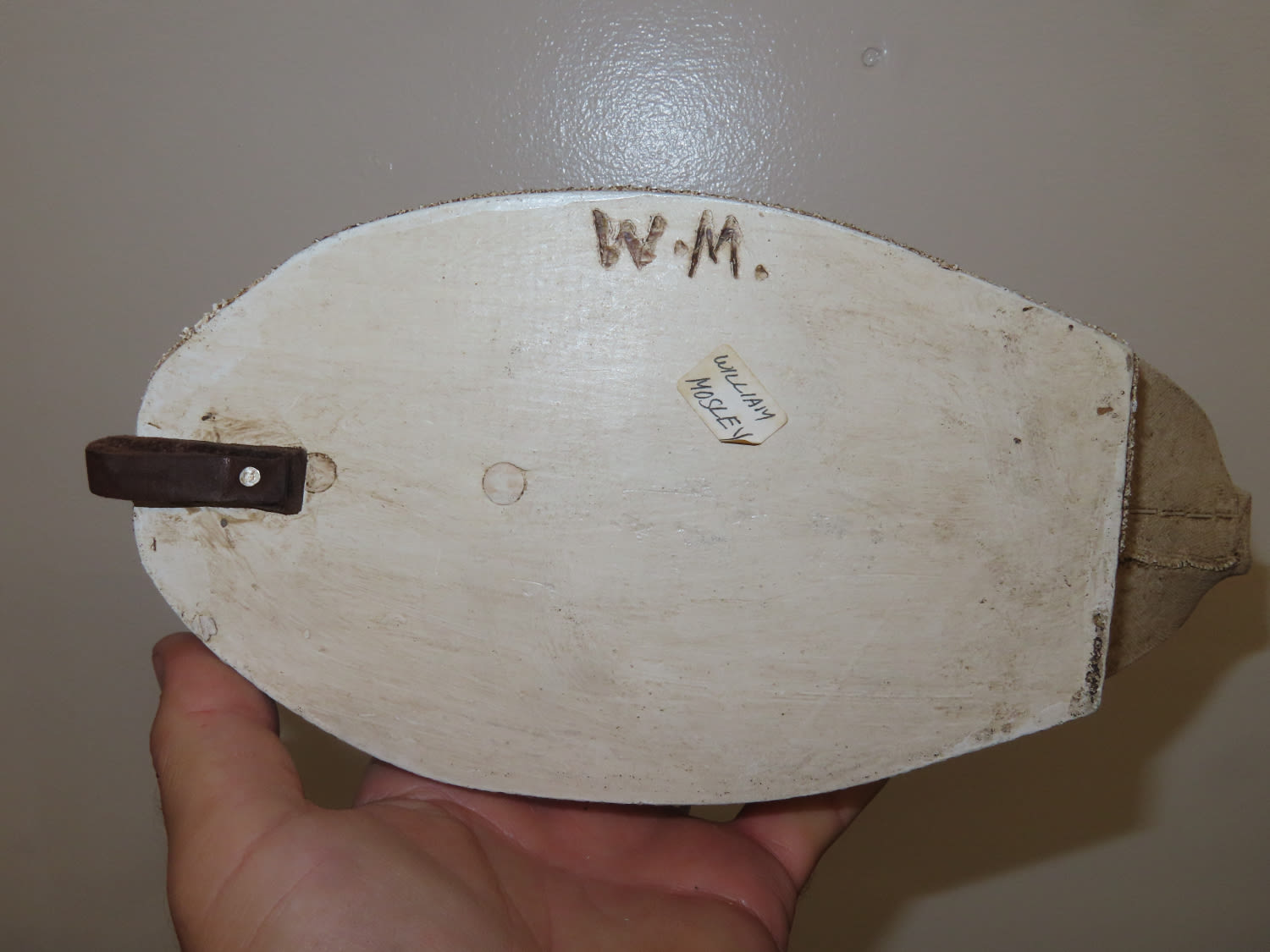 Antique Buffle Head Decoy, made of wood and canvas, made by Wm. Mosley-Knotts Island, North Carolina, Ex Briscoe Collection, Duck/Goose Decoy, Waterfowl, Hunting, Primitive, Antique, Quincy Illinois