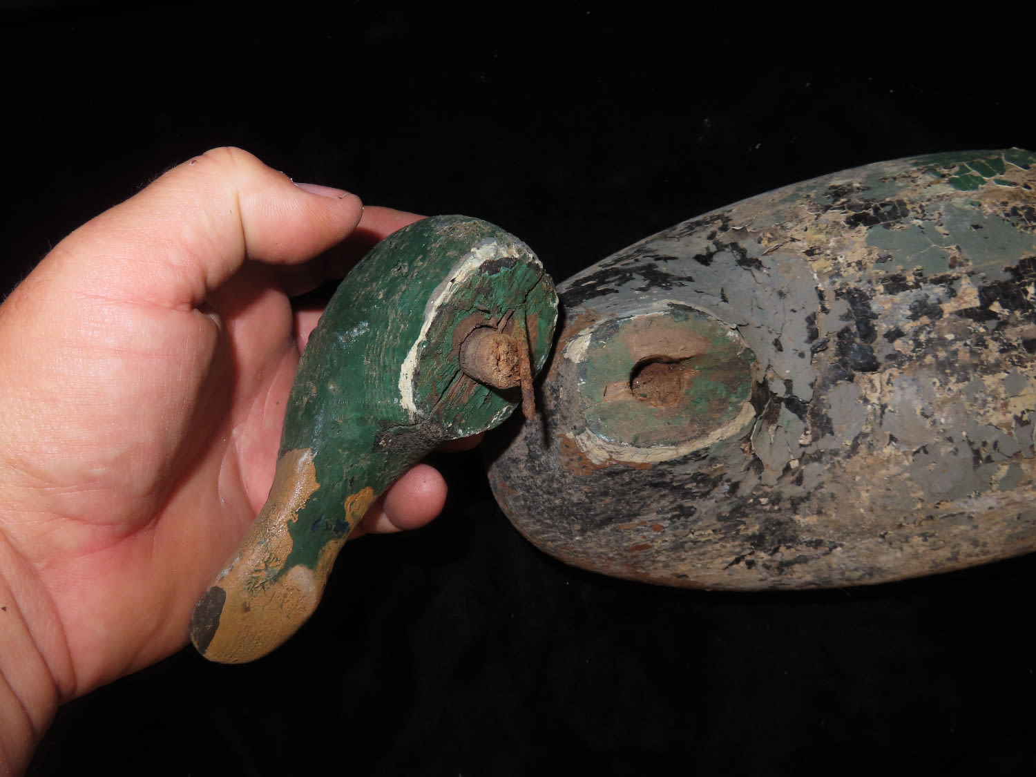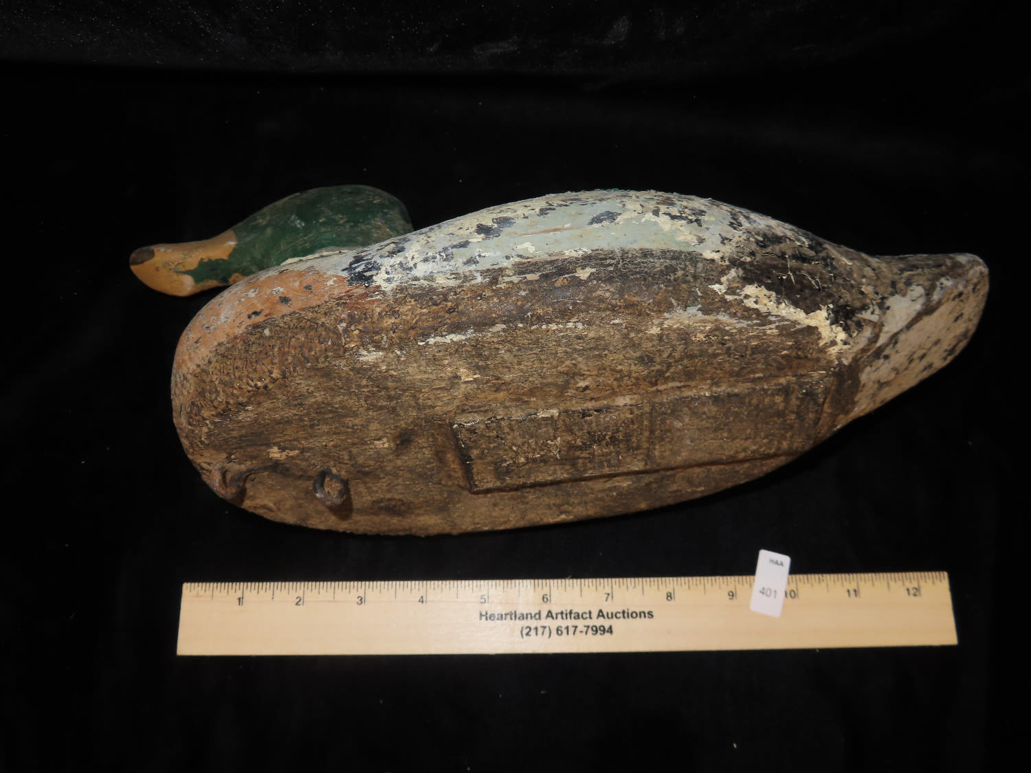 Antique Wooden Mallard Duck Decoy, Head detached, Ex Briscoe Collection, Duck/Goose Decoy, Waterfowl, Hunting, Primitive, Antique, Quincy Illinois