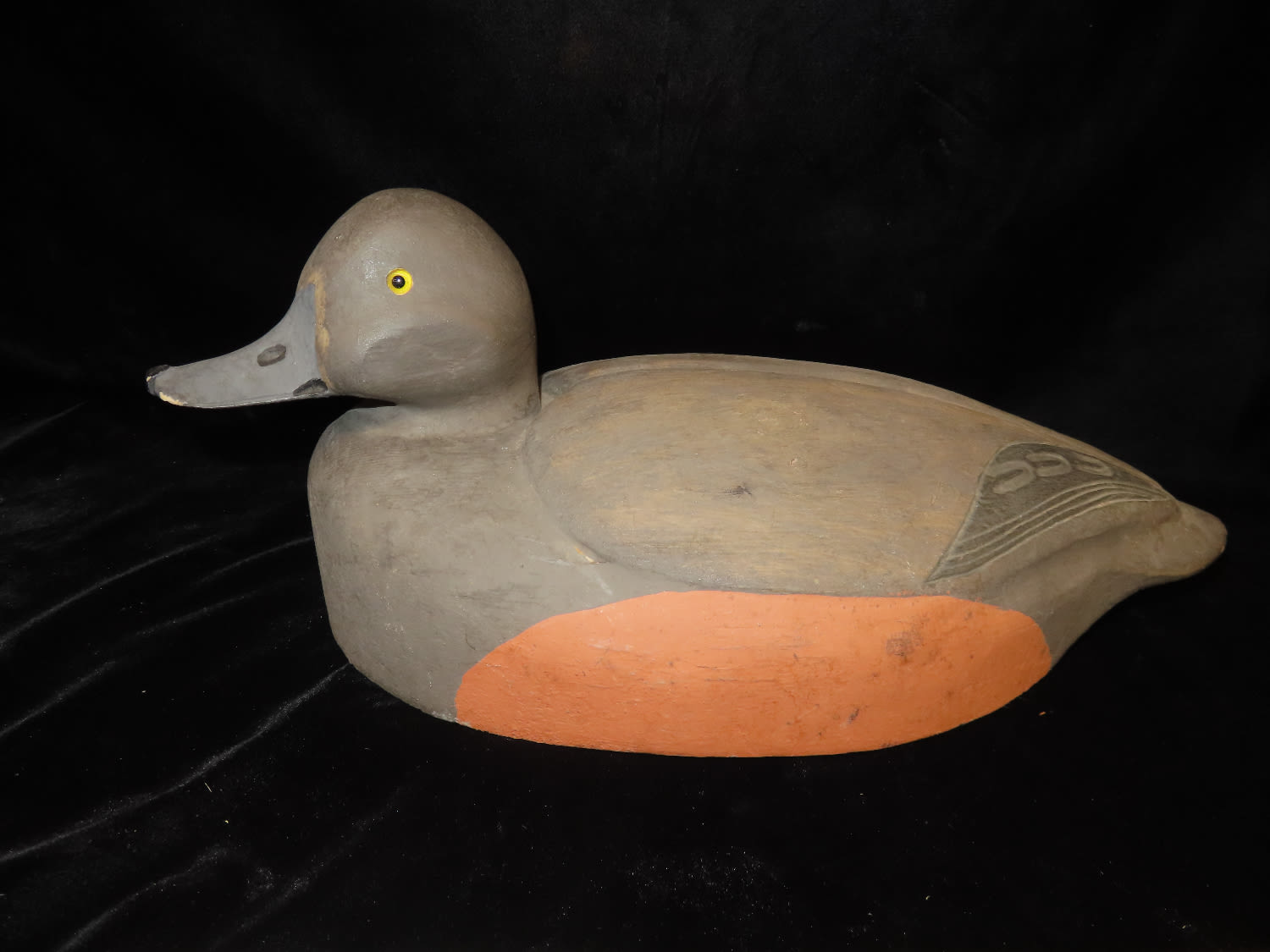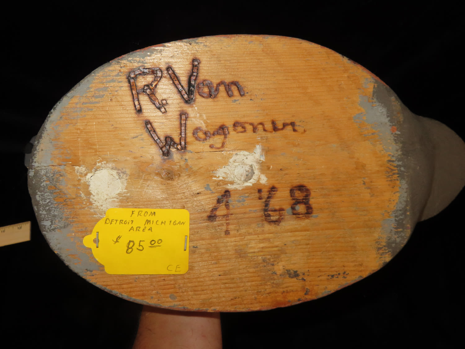 Wooden Bluebill Duck Decoy, Detroit Michigan, marked R. Van Wagoner-4 ’68, Ex Briscoe Collection, Duck/Goose Decoy, Waterfowl, Hunting, Primitive, Antique, Quincy Illinois