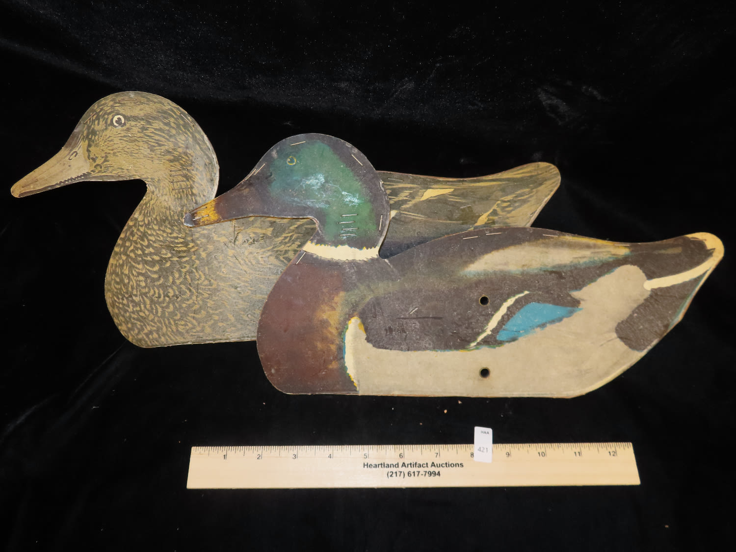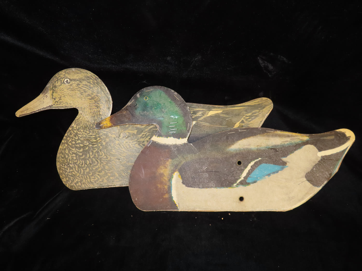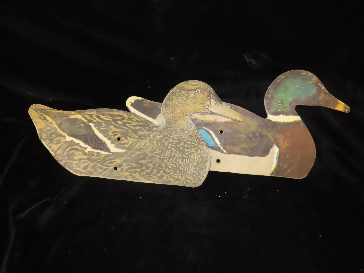 Pair of Cardboard Mallard Sillouhete Decoys, Ex Briscoe Collection, Duck/Goose Decoy, Waterfowl, Hunting, Primitive, Antique, Quincy Illinois