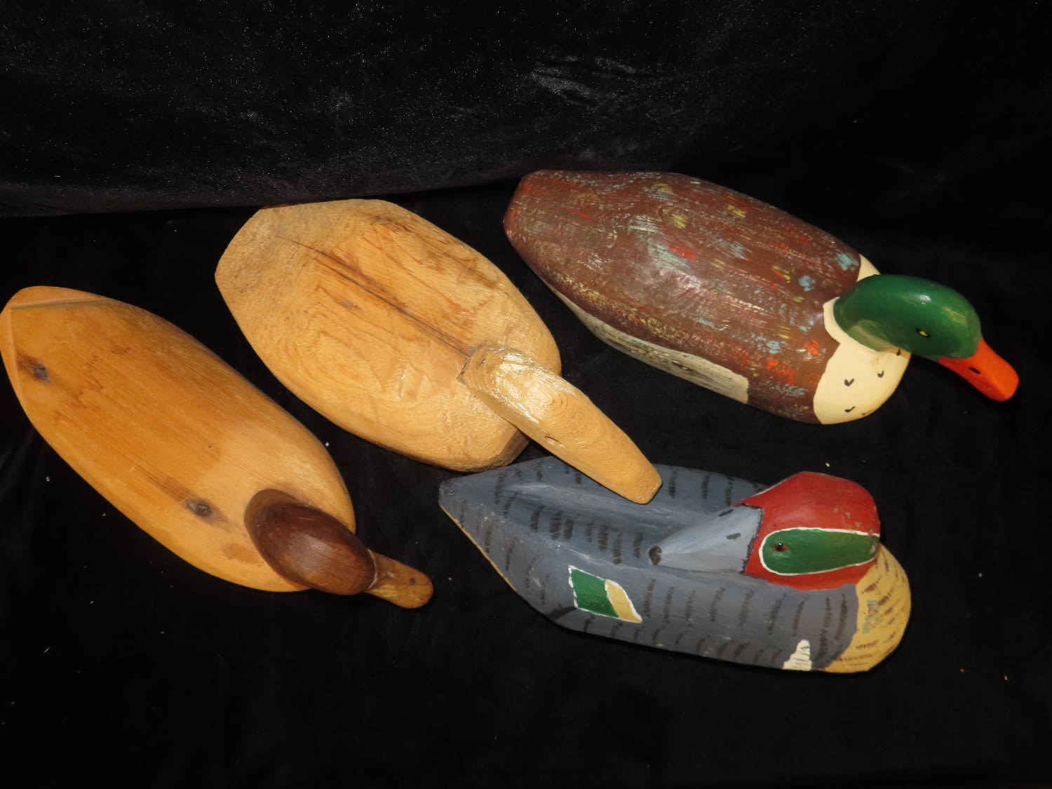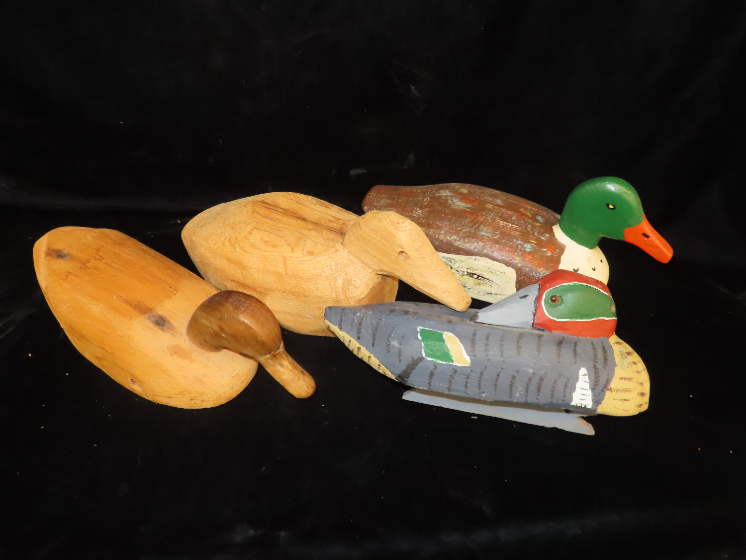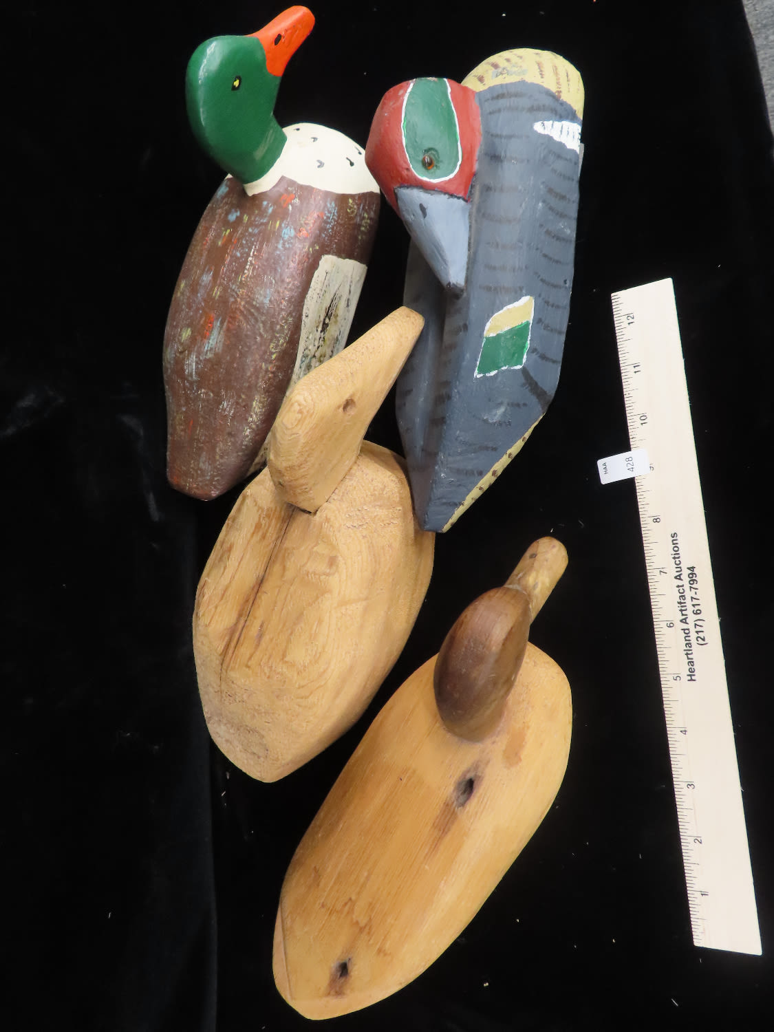 Collection of 4 Craft Decoys, smaller in scale, Ex Briscoe Collection, Duck/Goose Decoy, Waterfowl, Hunting, Primitive, Antique, Quincy Illinois