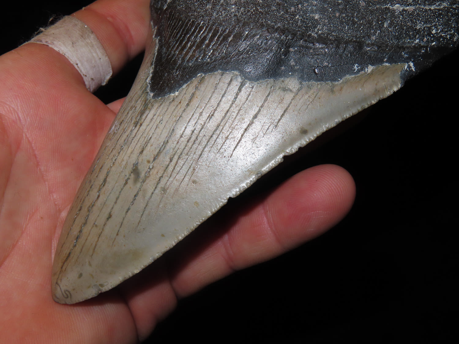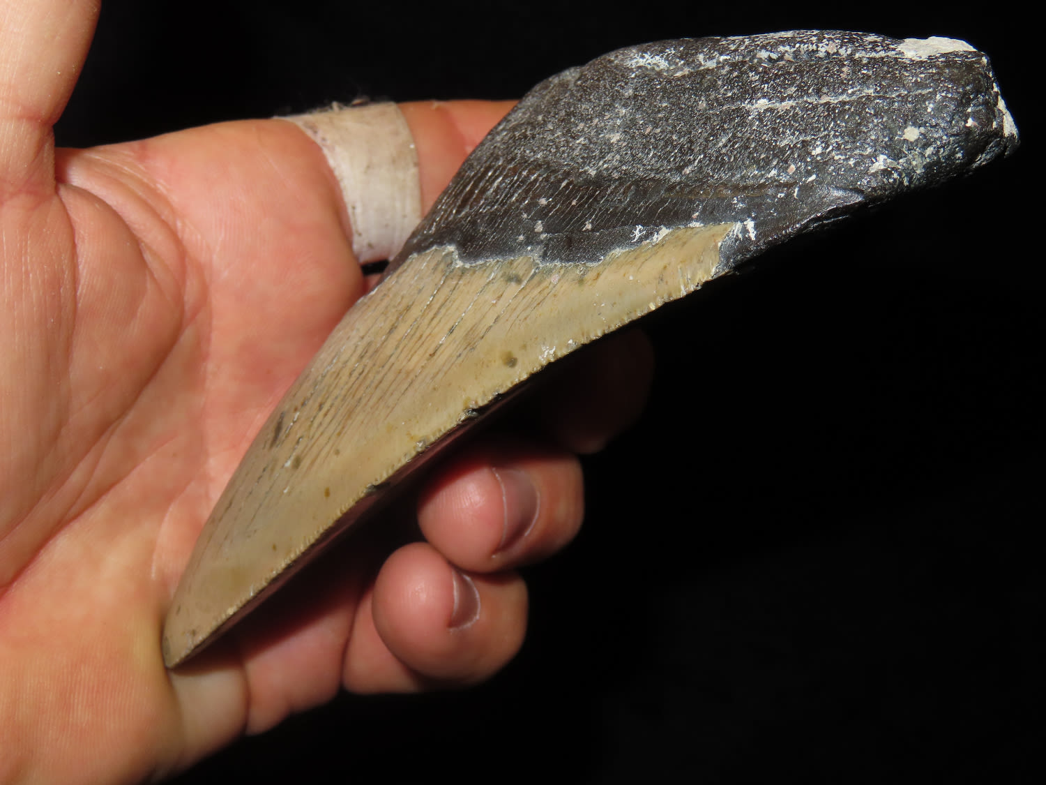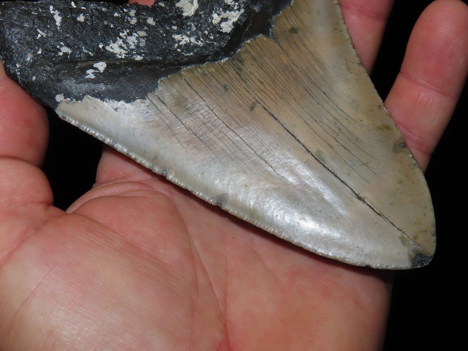 5.22″ Fossilized Megaladon Shark Tooth, found in South Carolina