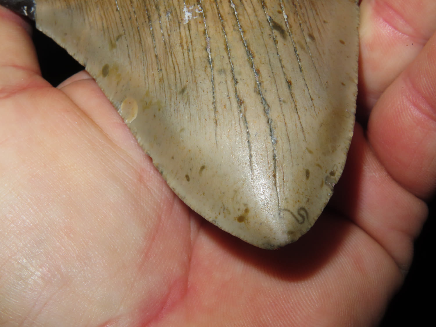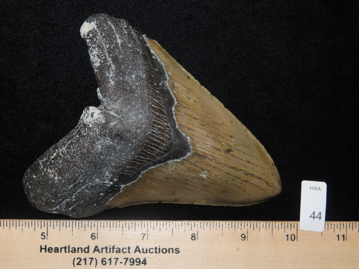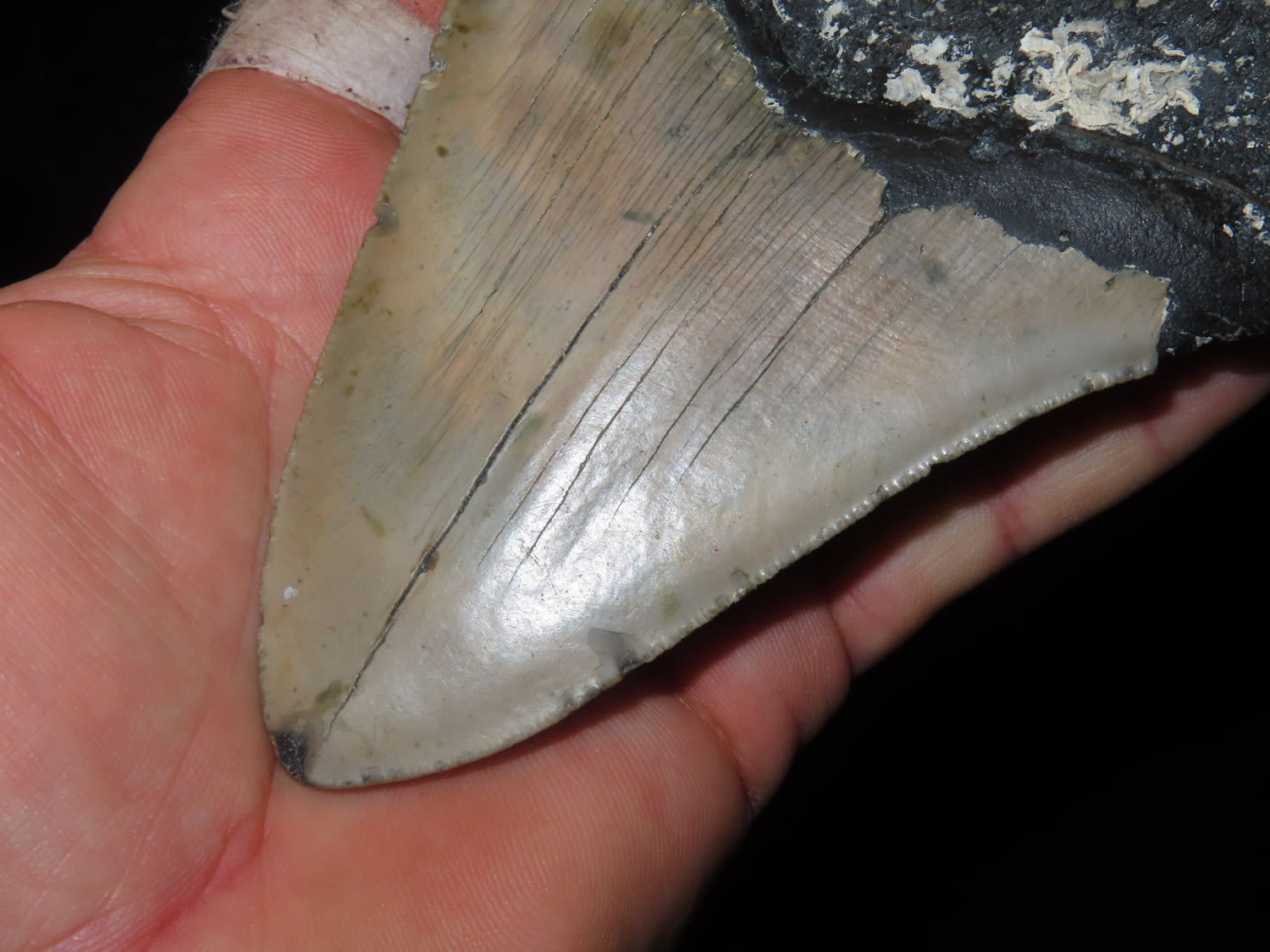5.22″ Fossilized Megaladon Shark Tooth, found in South Carolina
