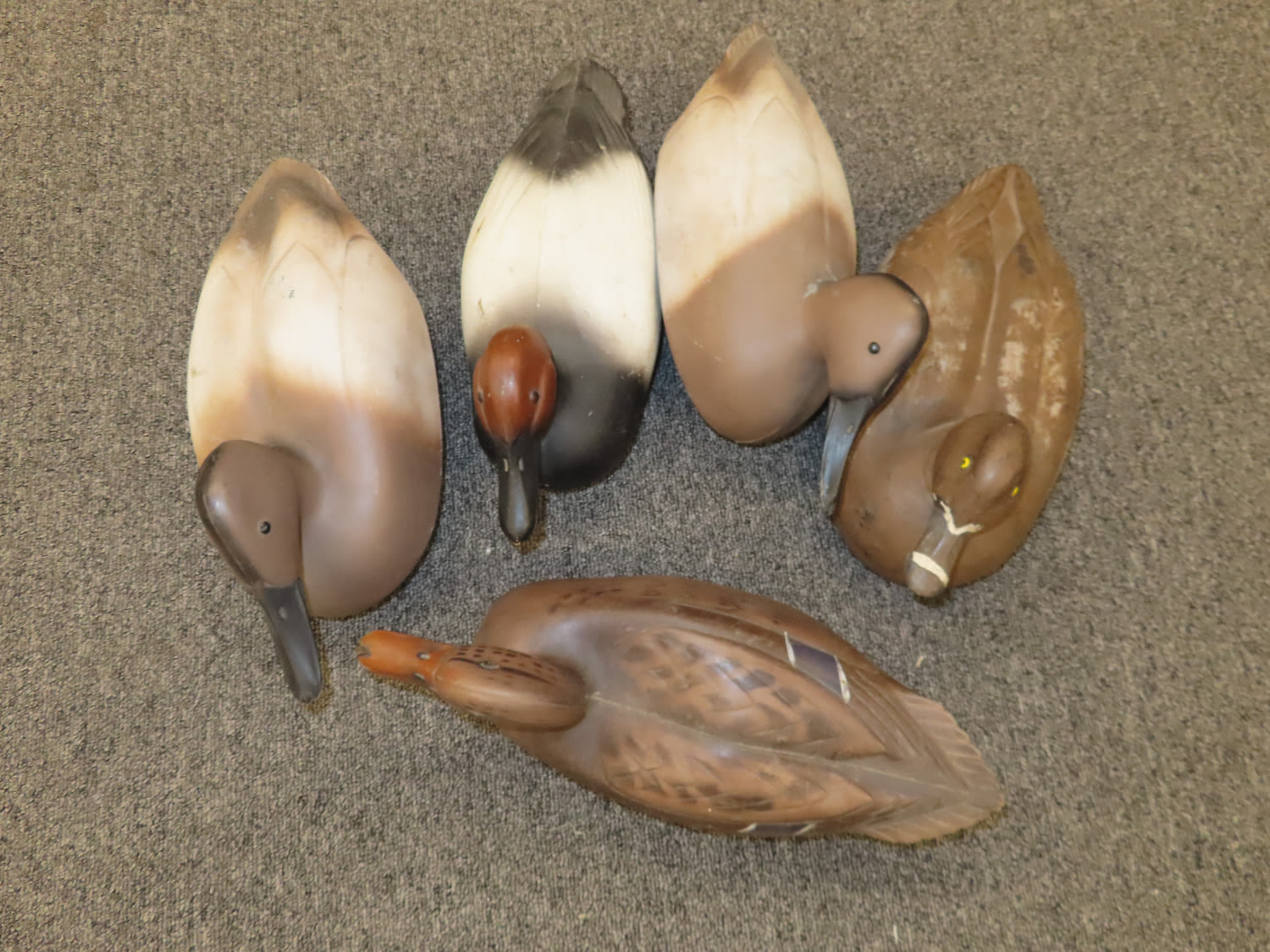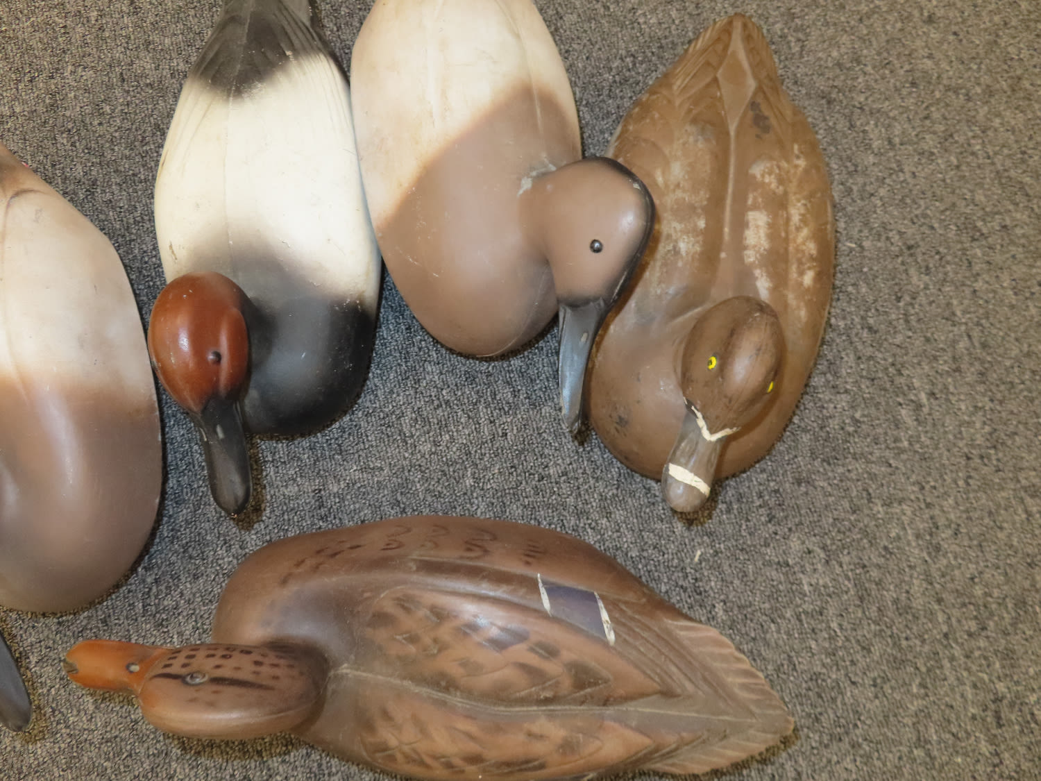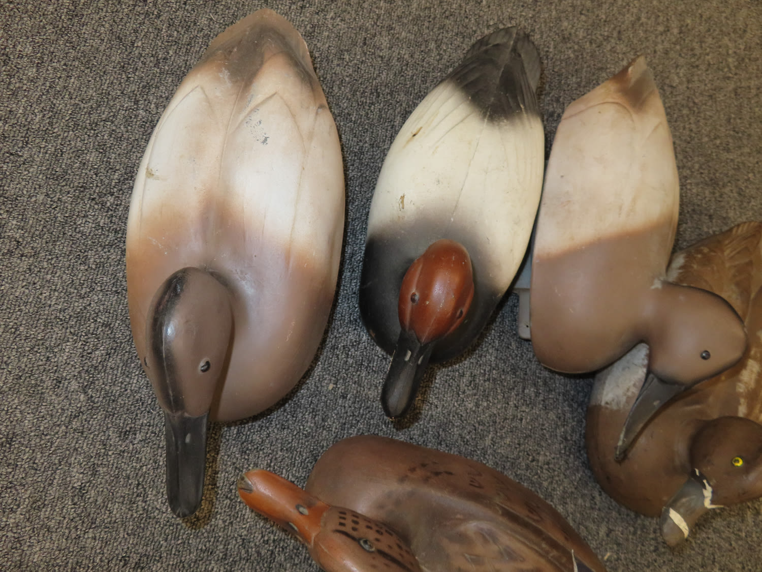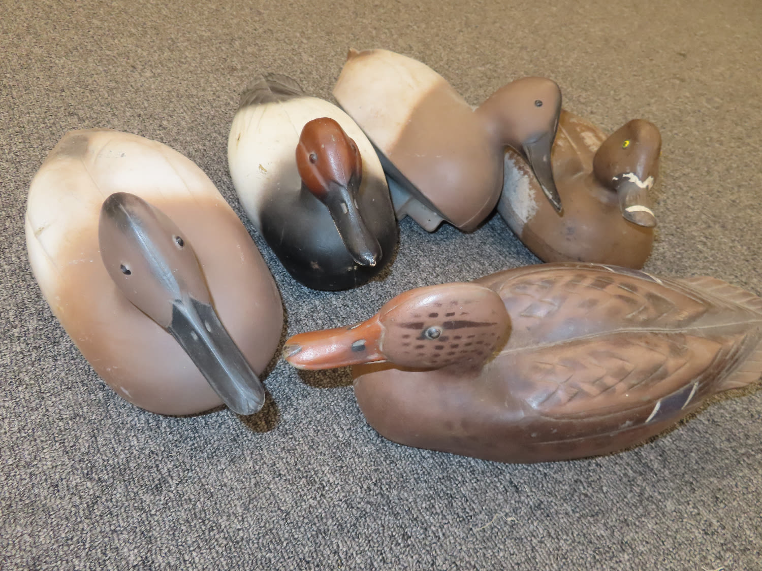 Grouping of 5 Various Rubber Decoys, Ex Briscoe Collection, Duck/Goose Decoy, Waterfowl, Hunting, Primitive, Antique, Quincy Illinois