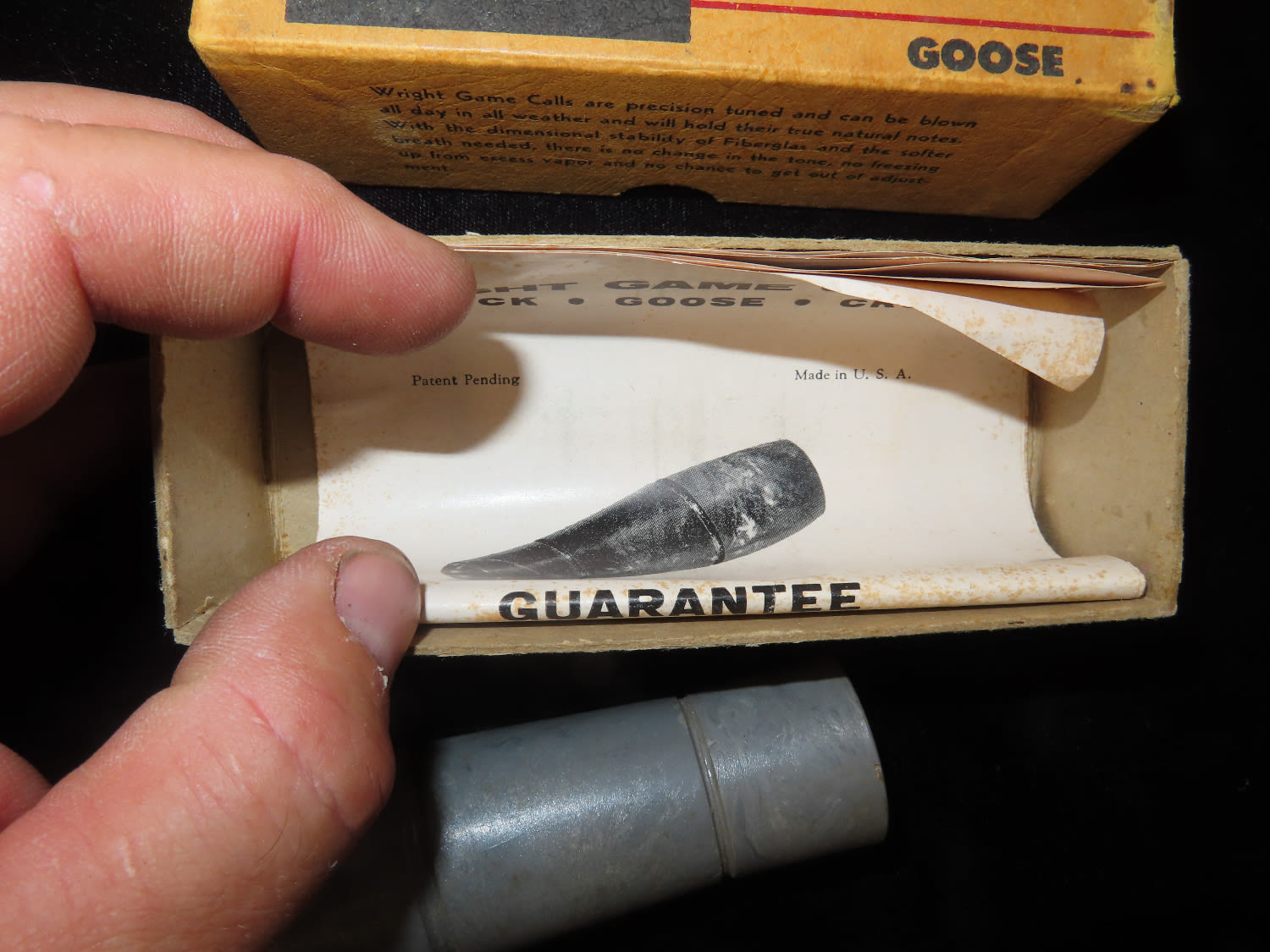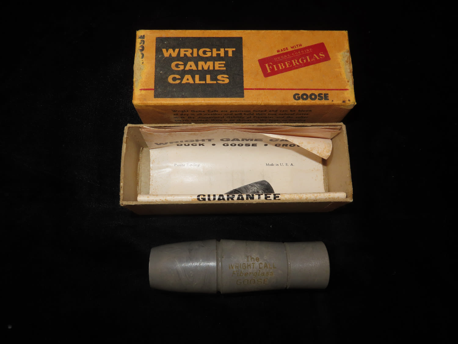 Wright’s Game Calls Fiberglass Goose Call No. G-20, with Original Box and Paperwork, working condion, Ex Briscoe Collection, Duck/Goose Decoy, Waterfowl, Hunting, Primitive, Antique, Quincy Illinois