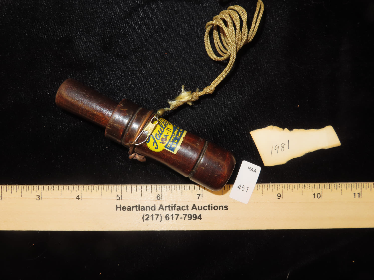 1981 Faulk's Duck Call, well used working condition, no box, Ex Briscoe Collection, Duck/Goose Decoy, Waterfowl, Hunting, Primitive, Antique, Quincy Illinois
