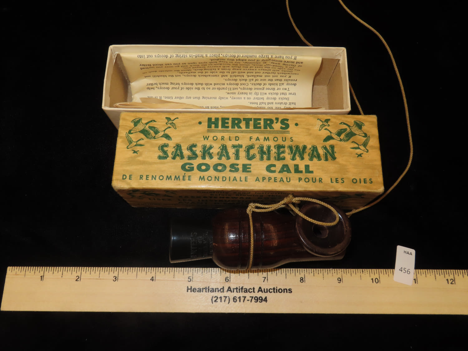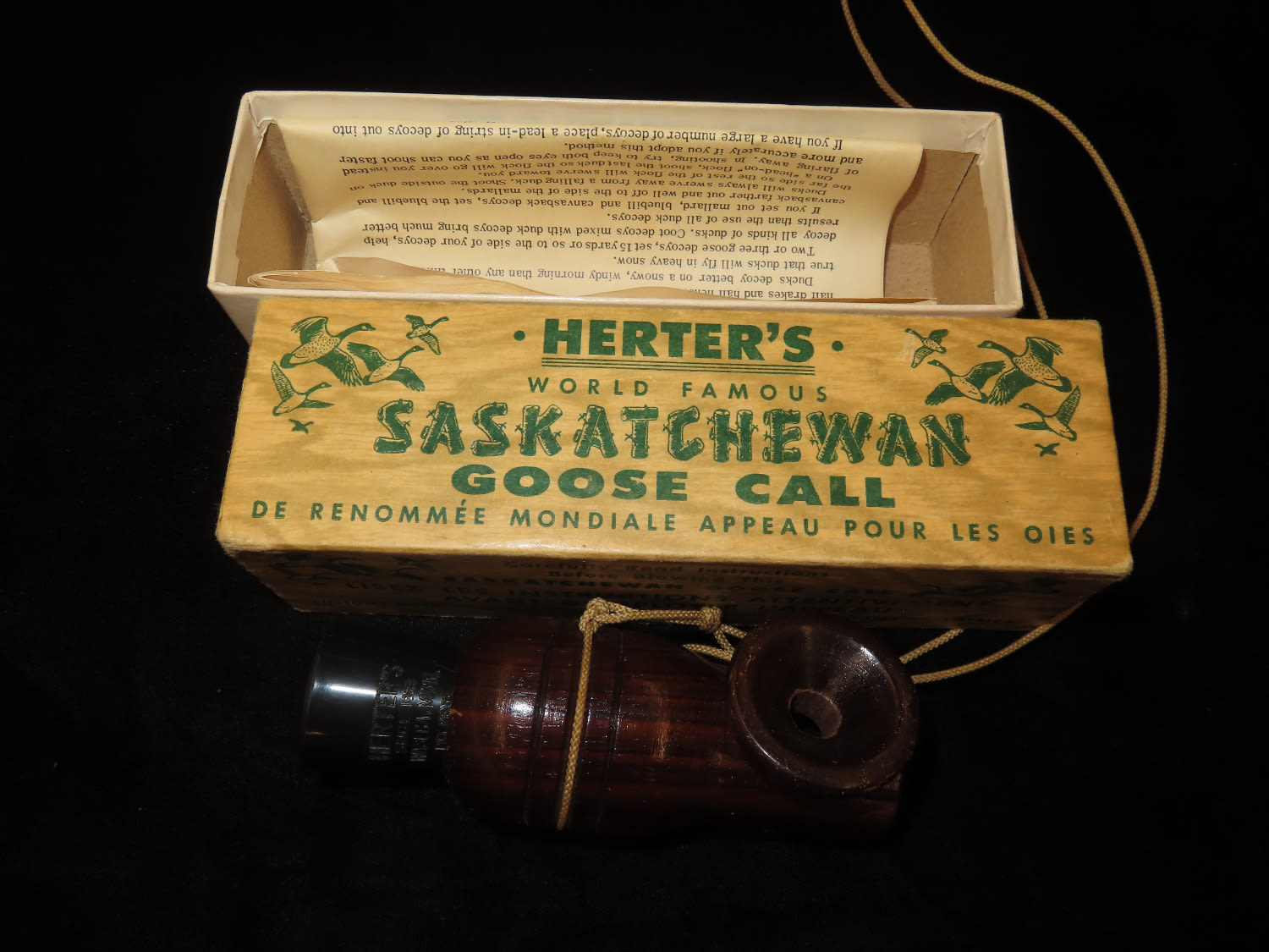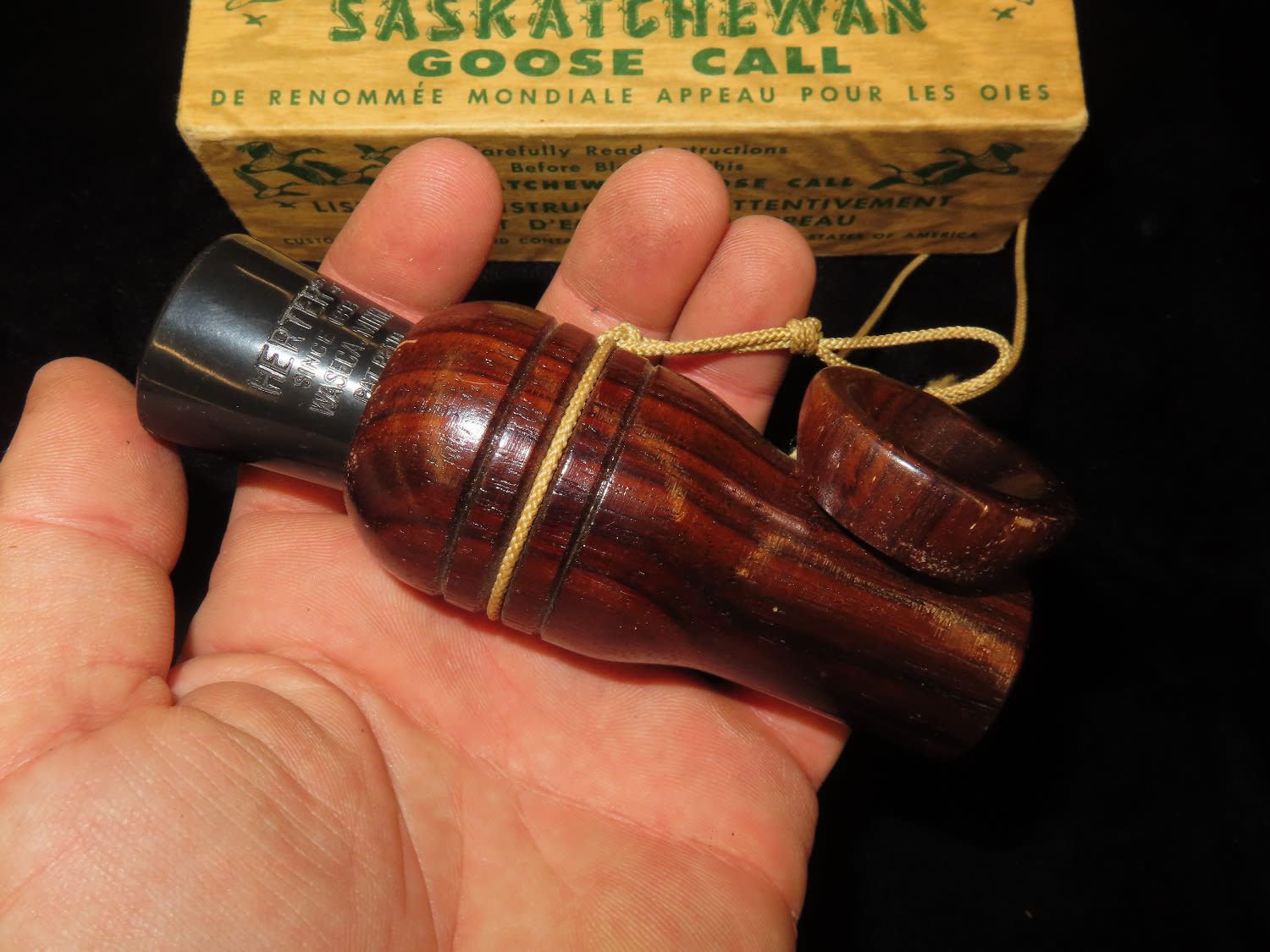 Herters Saskatchewan Goose Call, purchased in 1977, with Original Packaging and paperwork, Working Condition, Ex Briscoe Collection, Duck/Goose Decoy, Waterfowl, Hunting, Primitive, Antique, Quincy Illinois