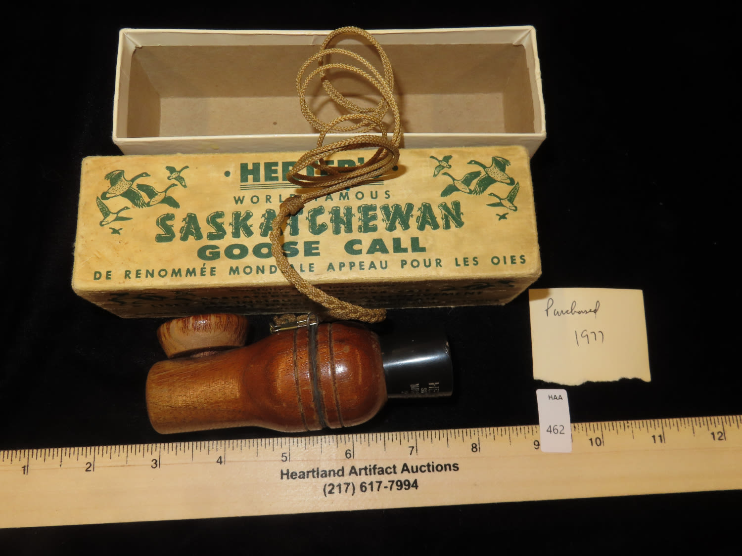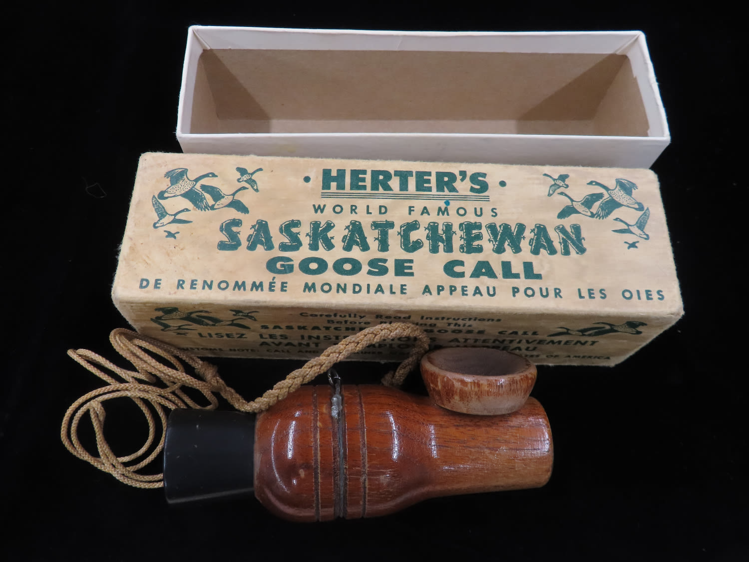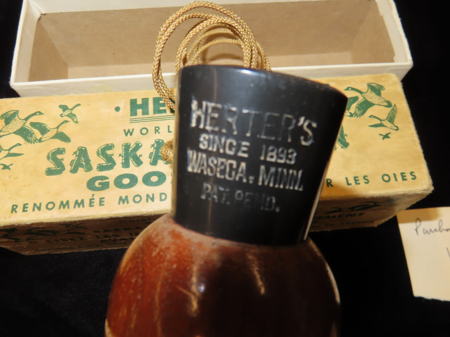 Herters Saskatchewan Goose Call, purchased in 1977, with Original Packaging , Working Condition, Ex Briscoe Collection, Duck/Goose Decoy, Waterfowl, Hunting, Primitive, Antique, Quincy Illinois