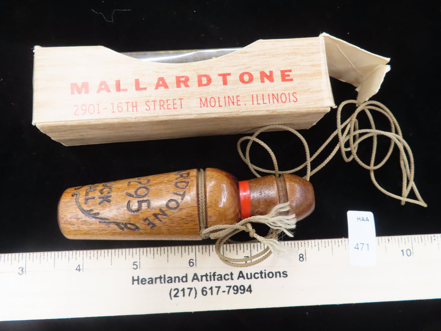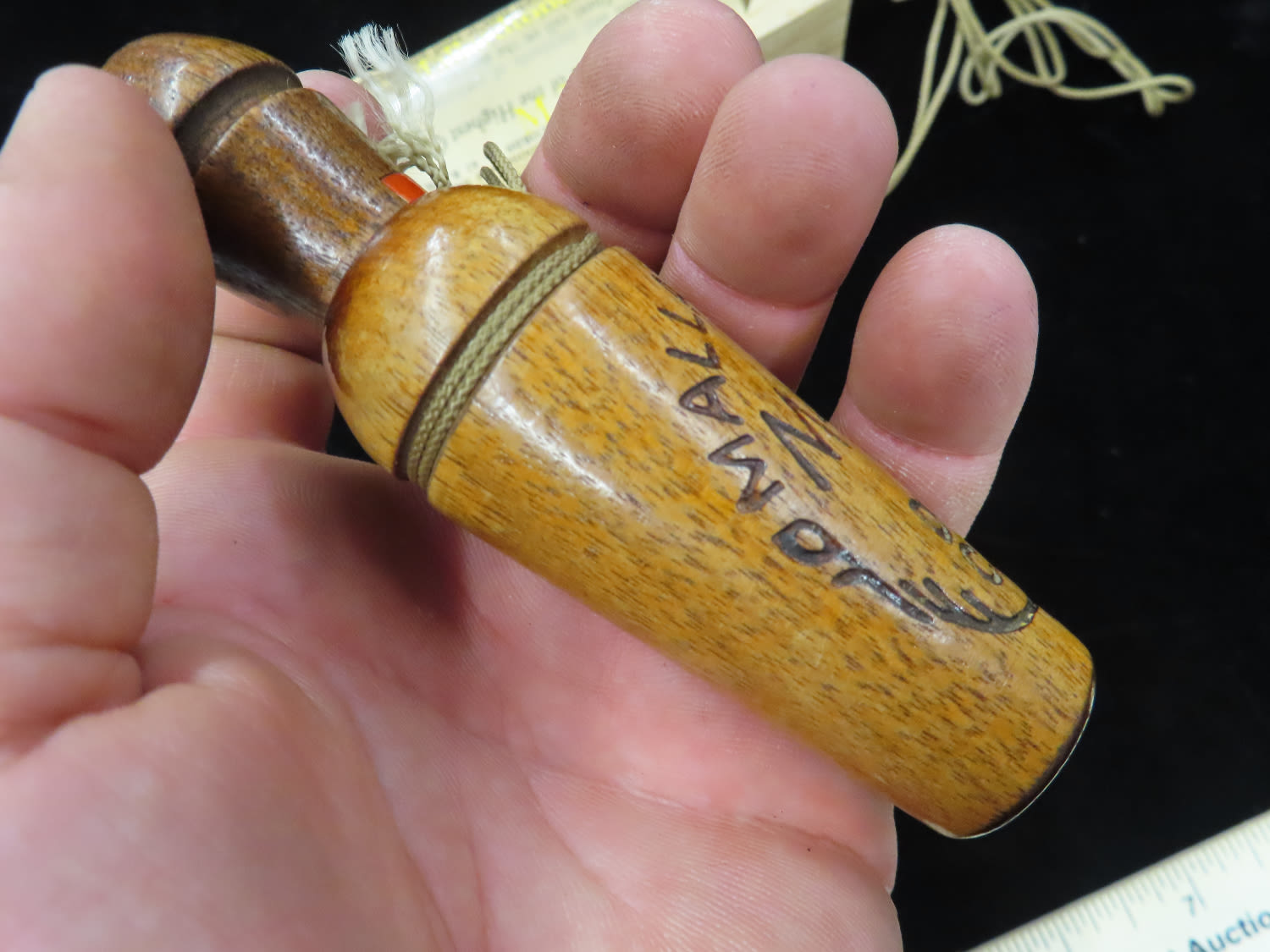 Mallardtone Wooden Duck Call, working condition, with Original Packaging and Paperwork, made in Moline Illinois, Ex Briscoe Collection, Duck/Goose Decoy, Waterfowl, Hunting, Primitive, Antique, Quincy Illinois