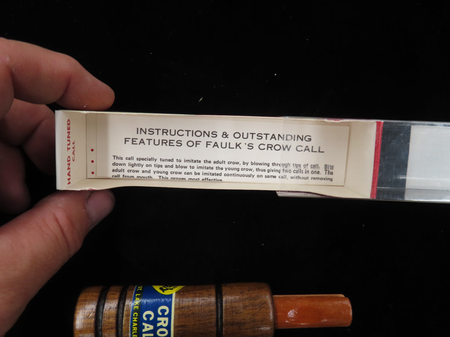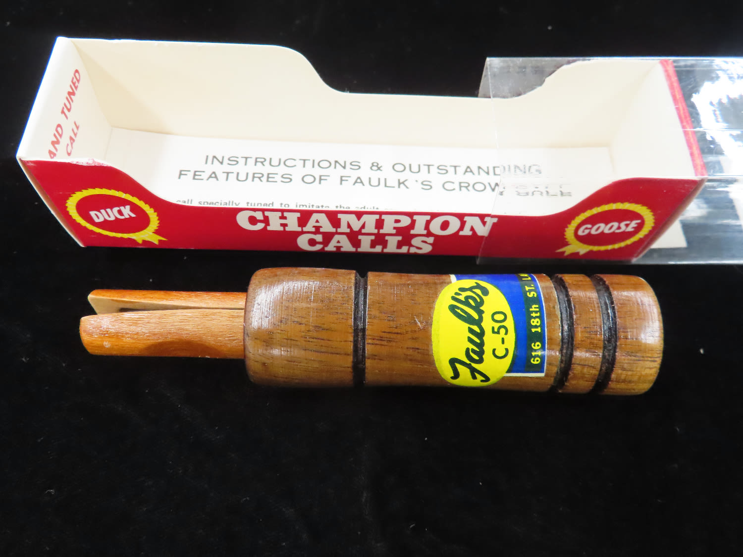 Faulk's C-50 Crow Call, quality, working condition, Original Packaging and Paperwork, Ex Briscoe Collection, Duck/Goose Decoy, Waterfowl, Hunting, Primitive, Antique, Quincy Illinois