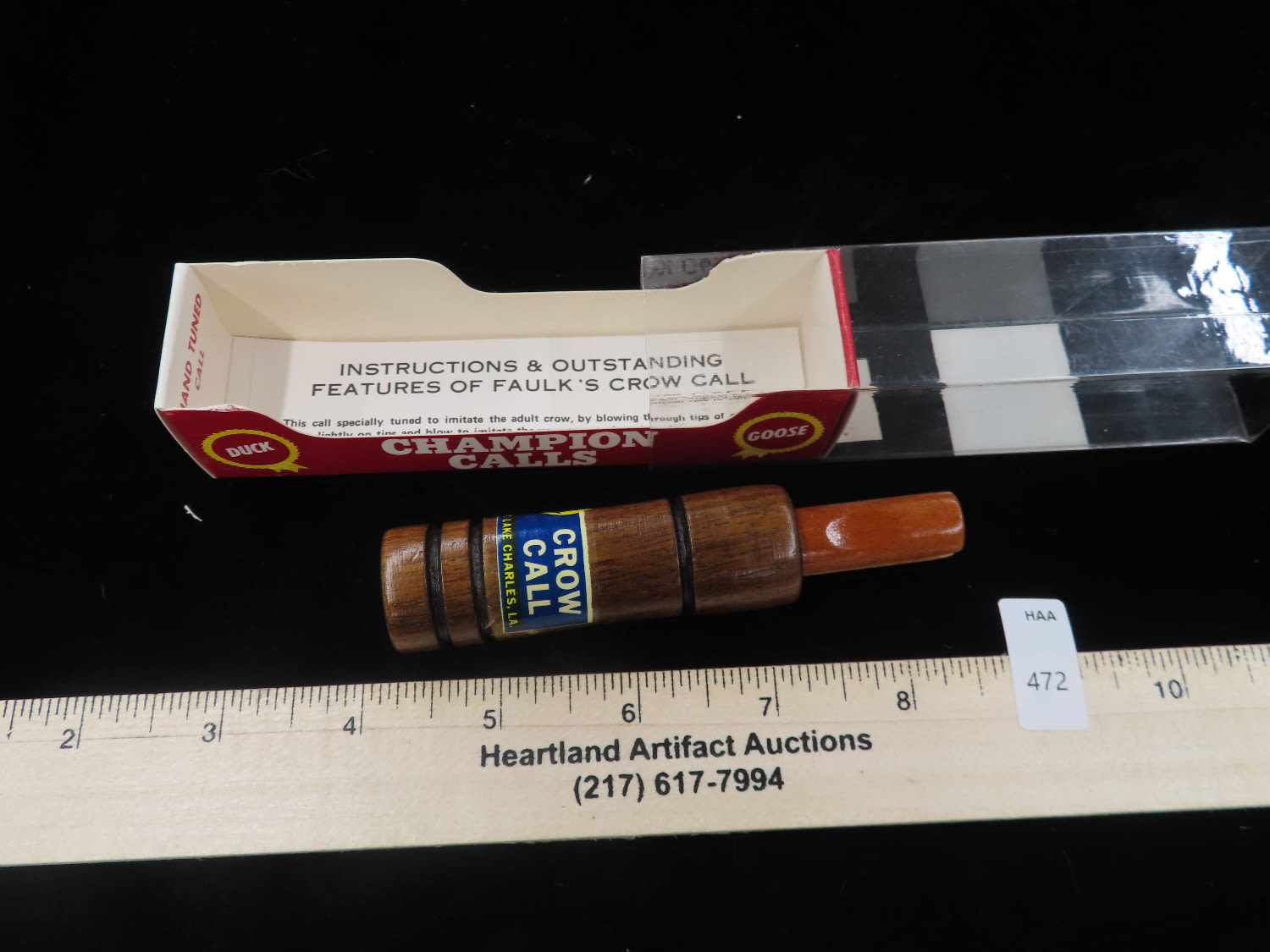 Faulk’s C-50 Crow Call, quality, working condition, Original Packaging and Paperwork, Ex Briscoe Collection, Duck/Goose Decoy, Waterfowl, Hunting, Primitive, Antique, Quincy Illinois