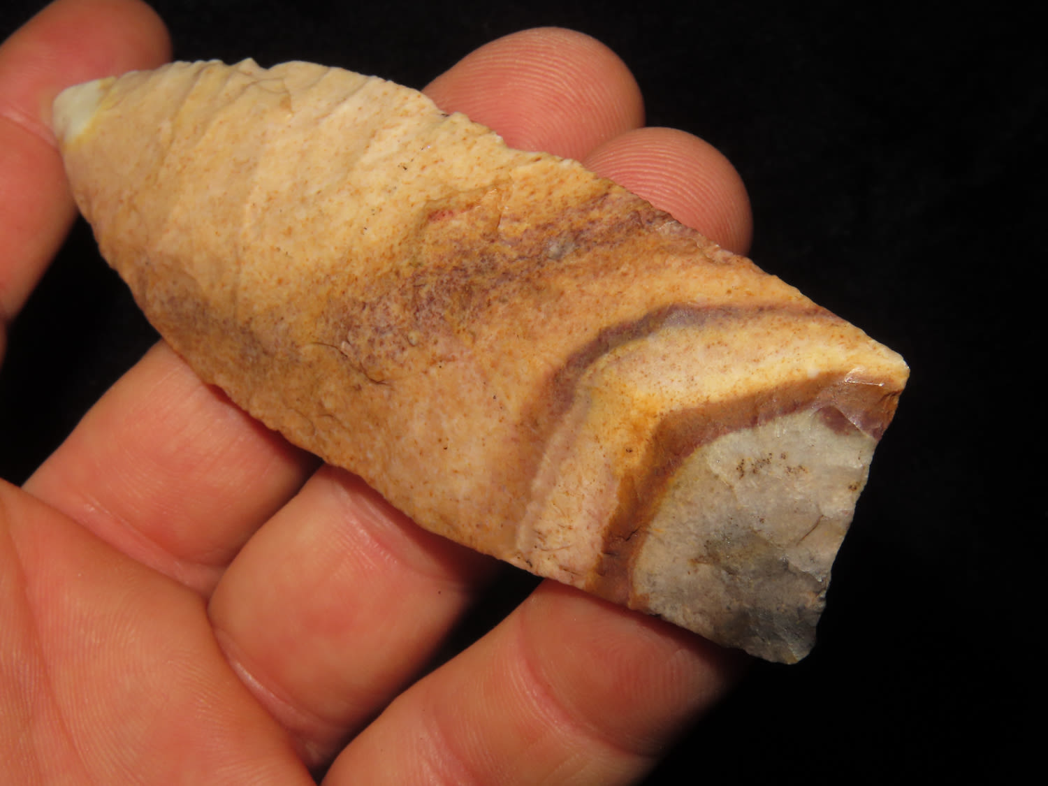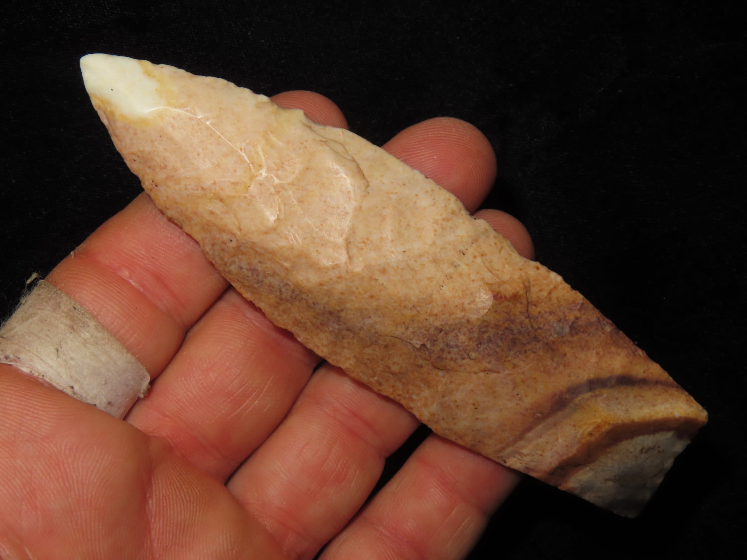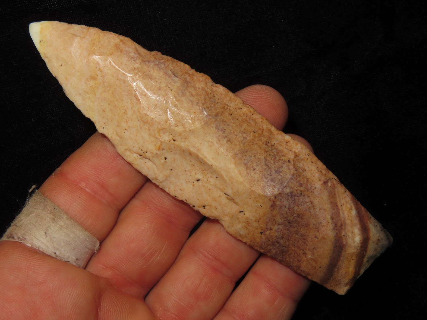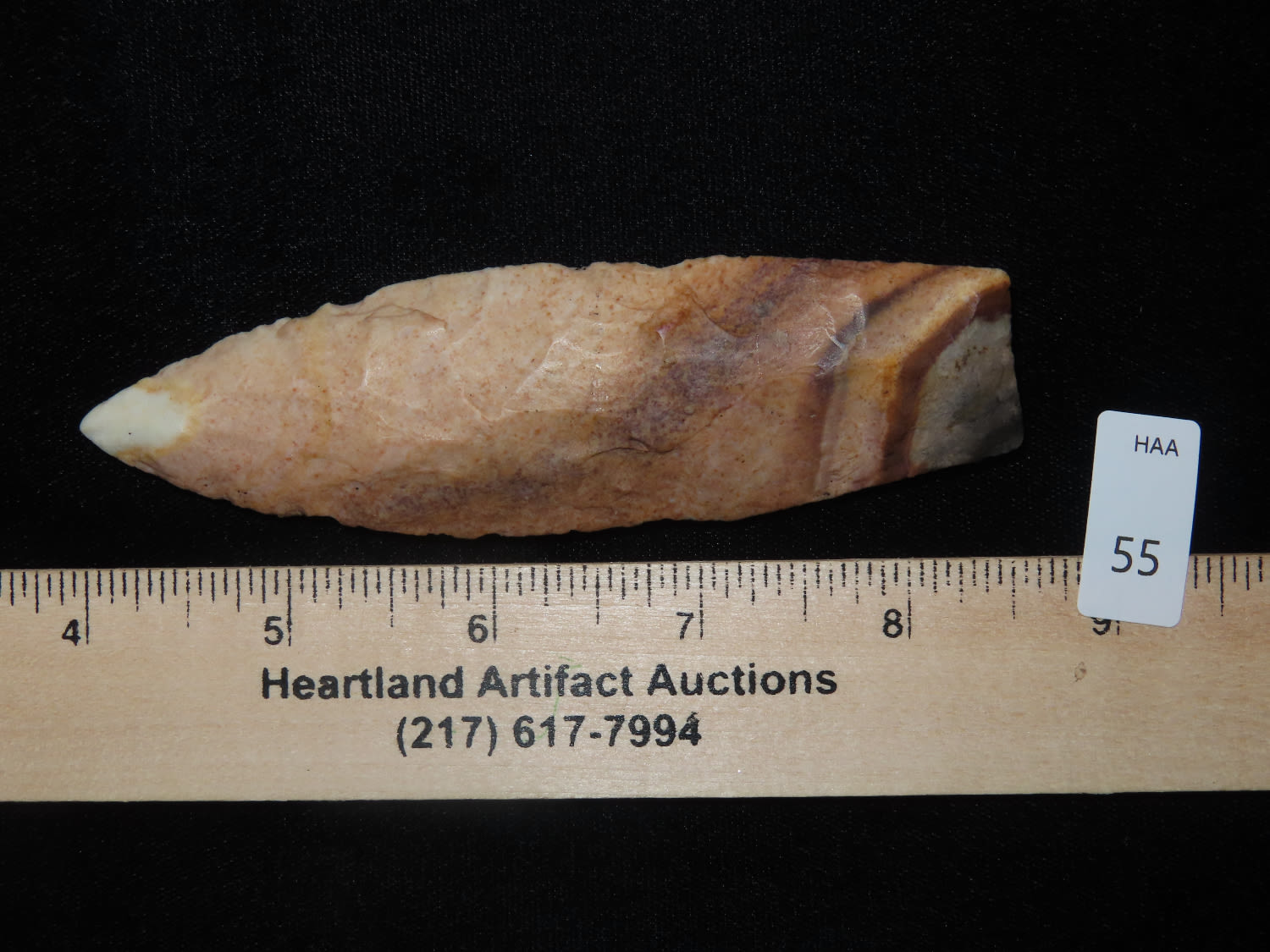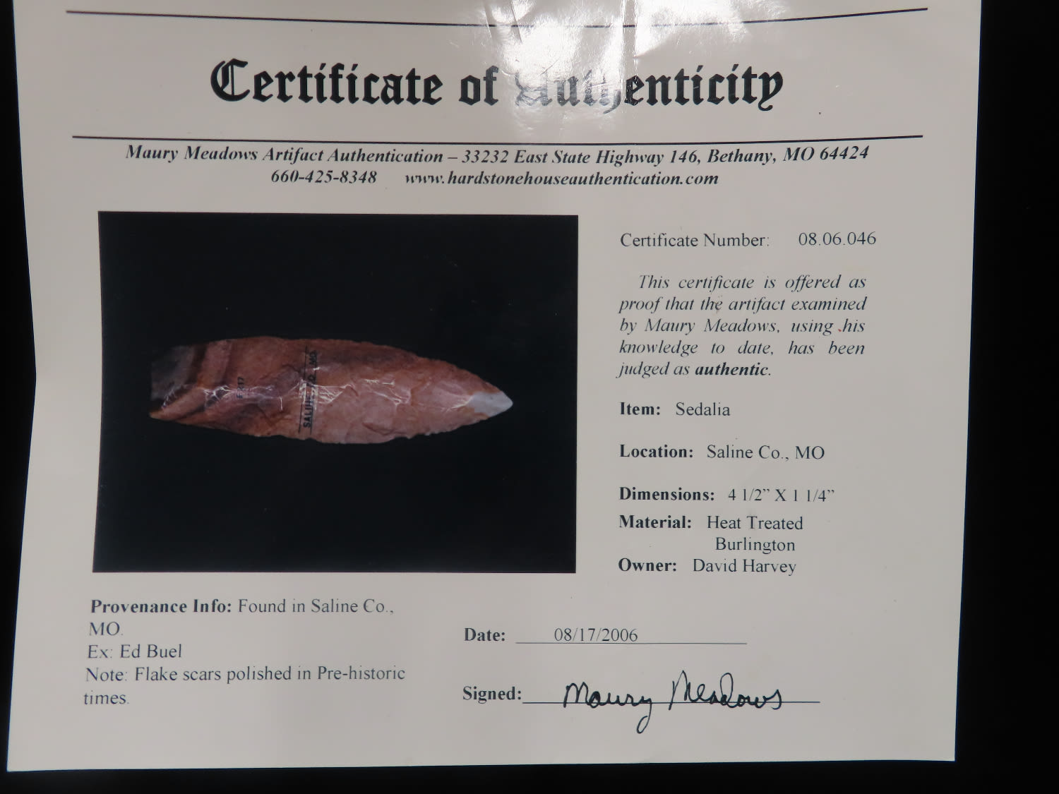 4 1/2 ” Polished Sedalia, Meadows COA, found in Saline Co Missouri, made of heat treated Burlington, Ex Ed Buel, Ex David Harvey, Ex Mitch Lewis, Ex Jake Vahle