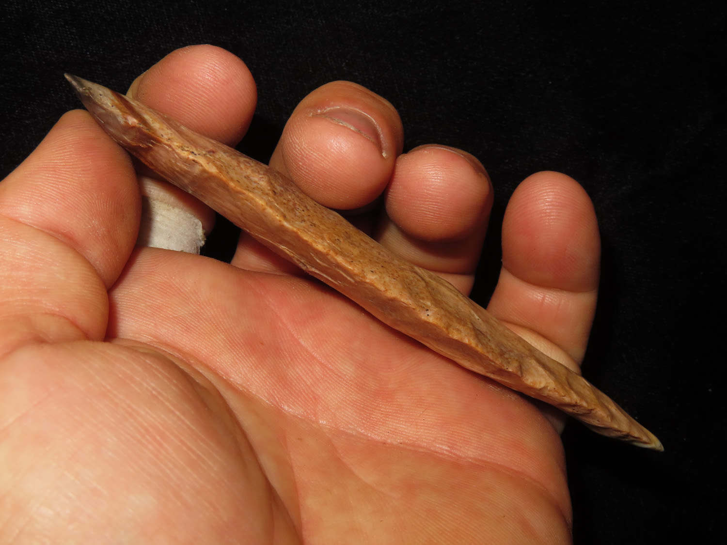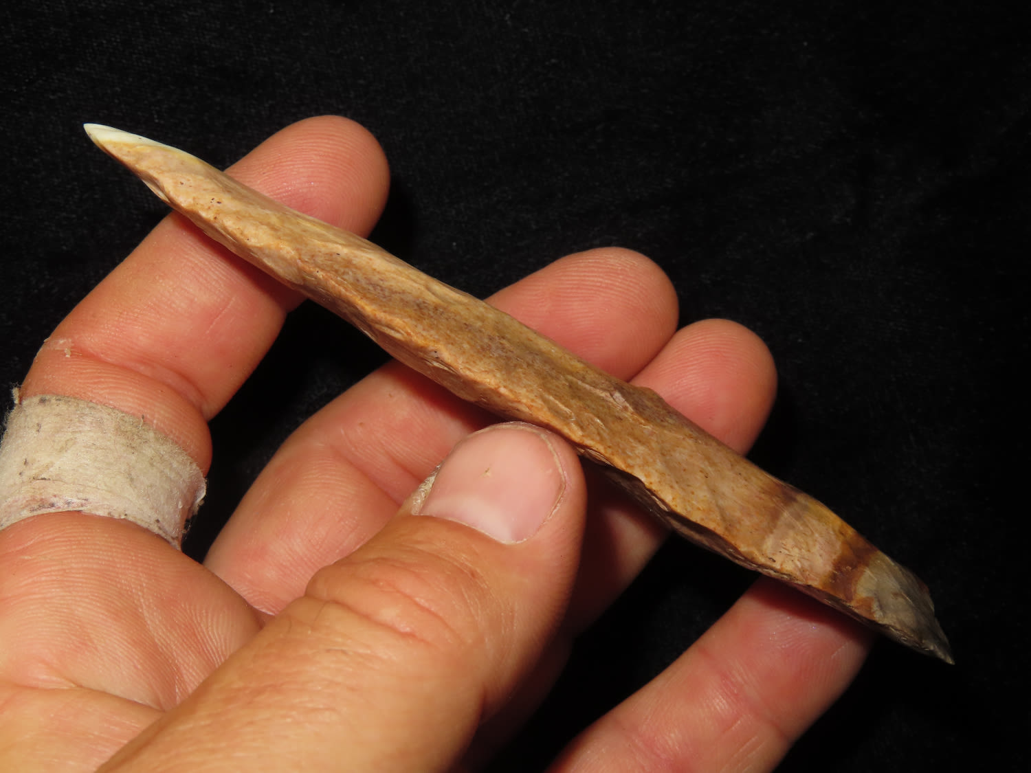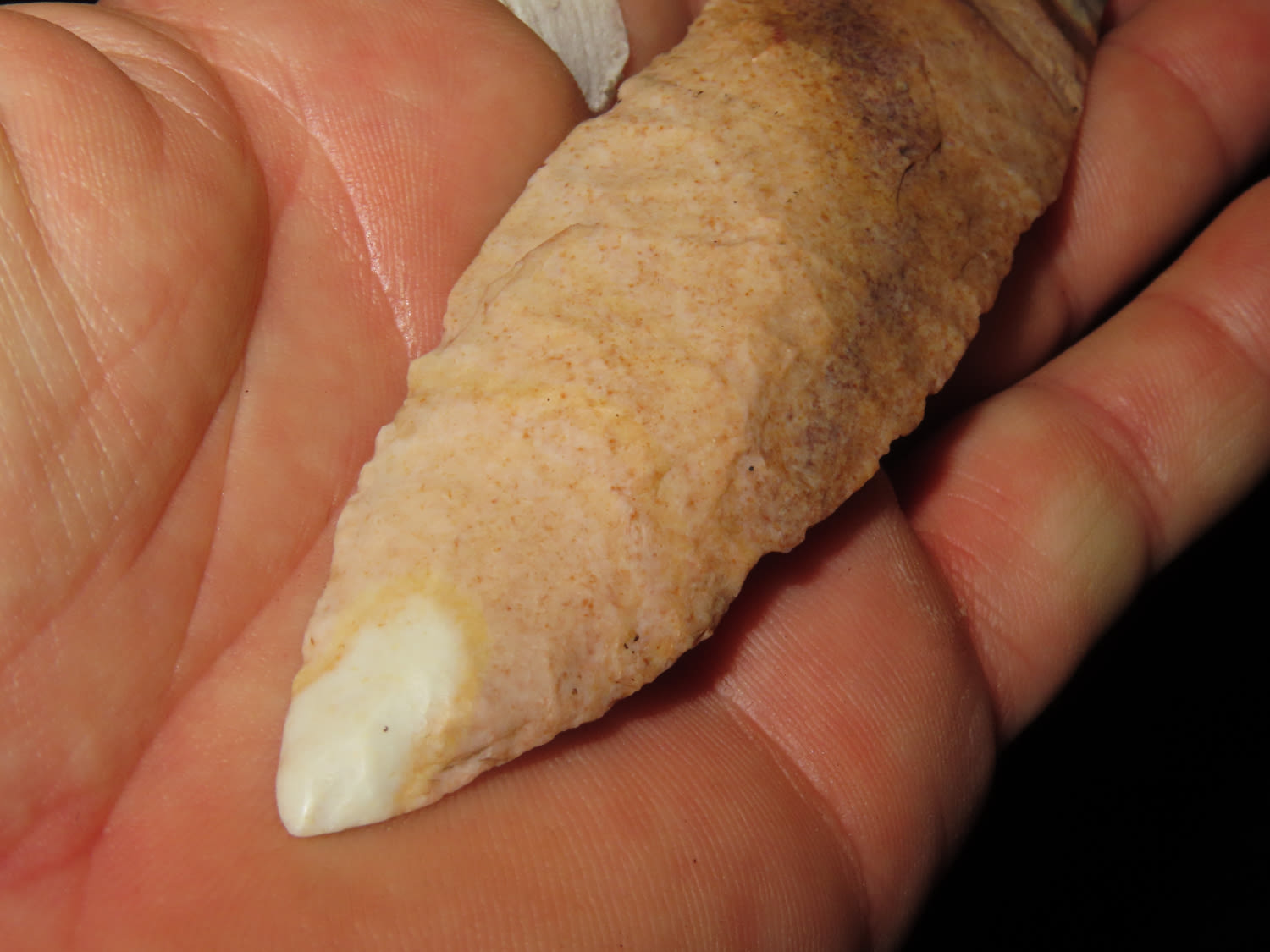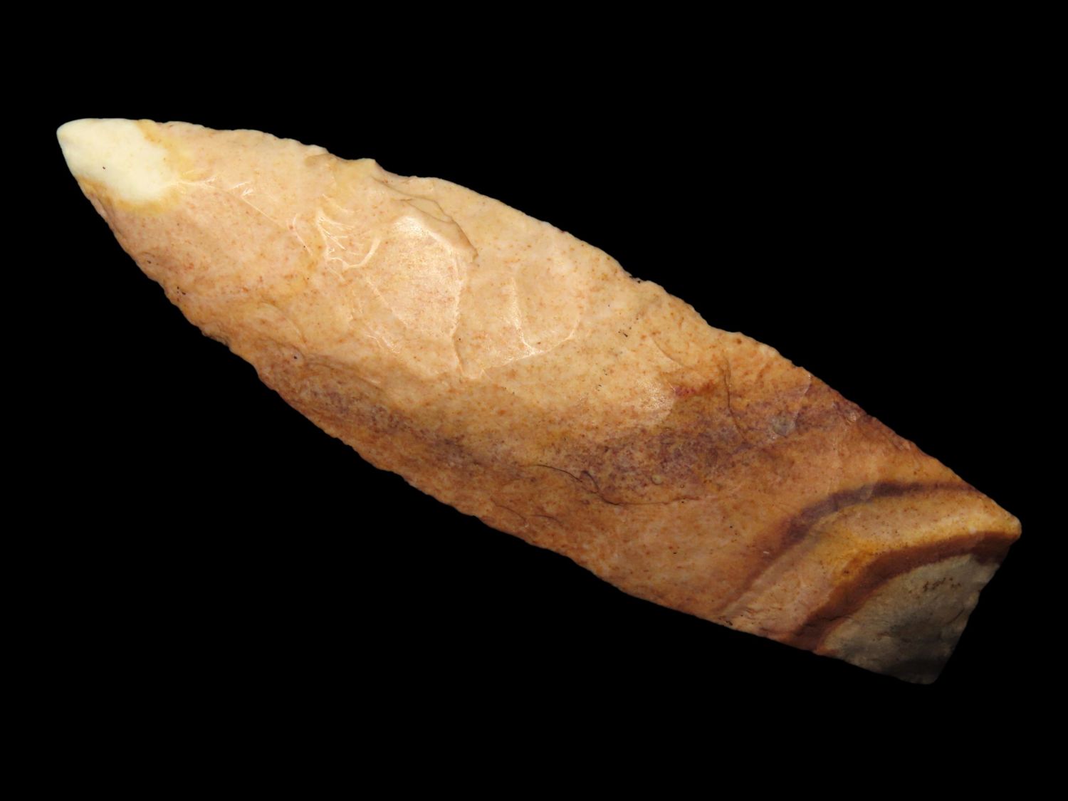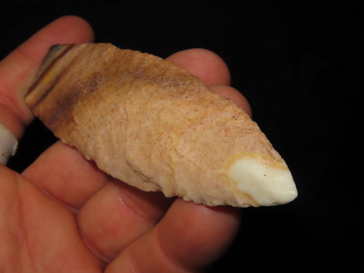 4 1/2 ” Polished Sedalia, Meadows COA, found in Saline Co Missouri, made of heat treated Burlington, Ex Ed Buel, Ex David Harvey, Ex Mitch Lewis, Ex Jake Vahle