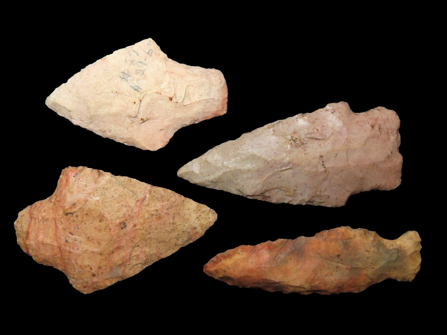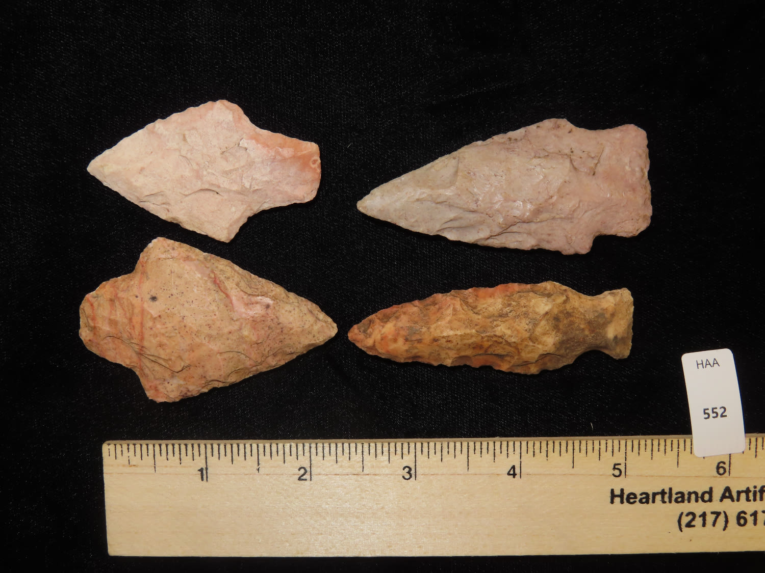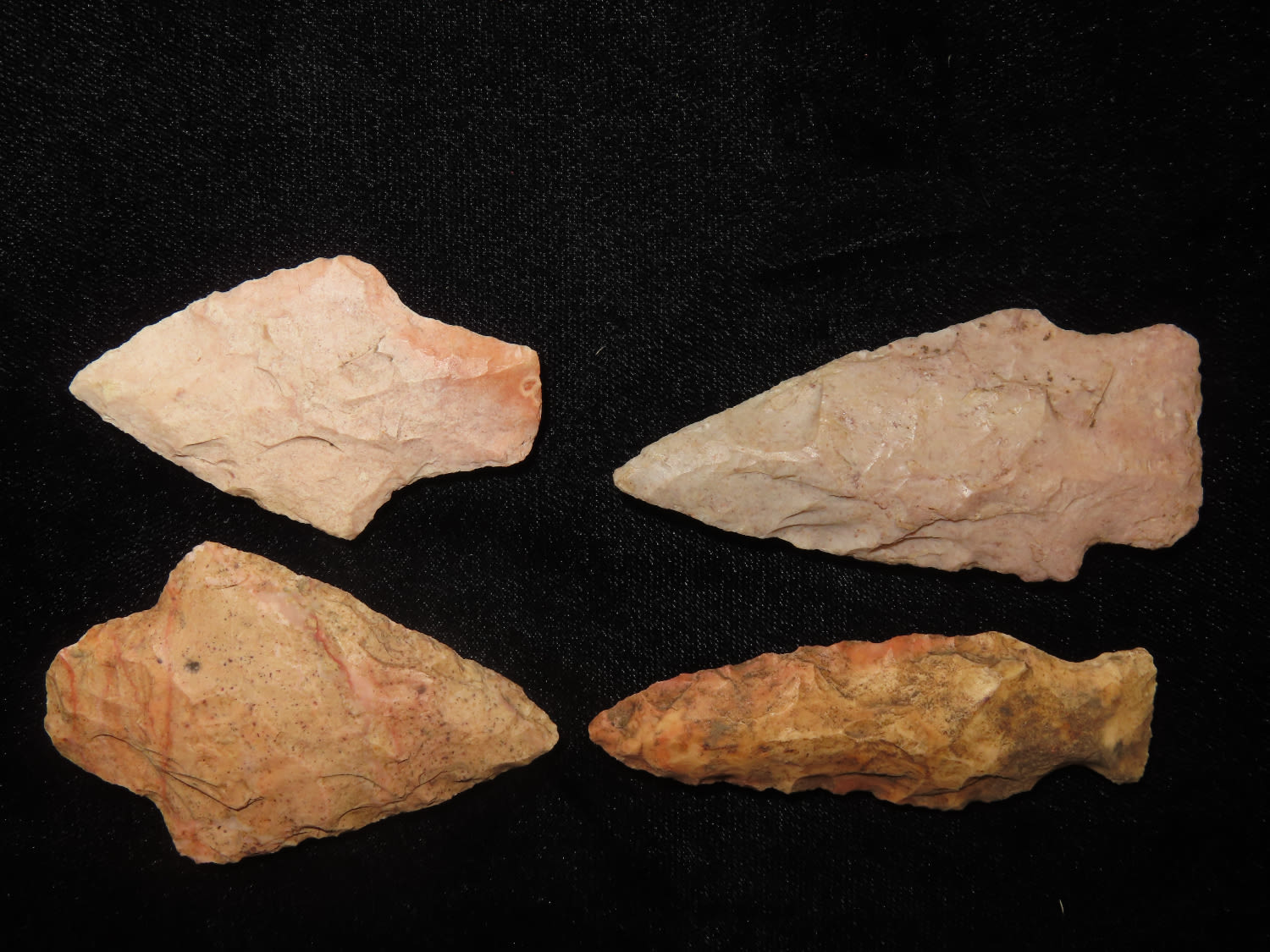 4 Woodland Arrowheads, longest being 2 5/8″, found in Audrain Co Missouri out of a private collection
