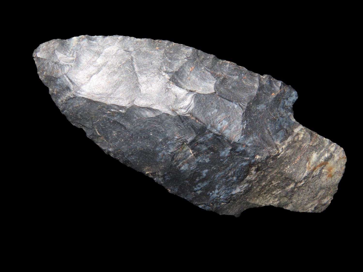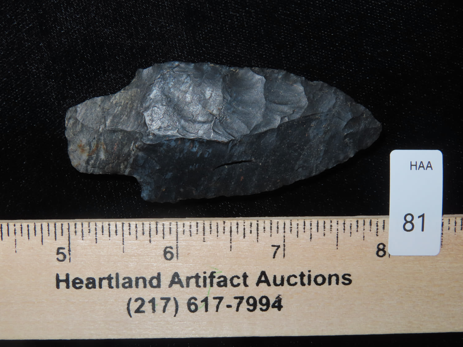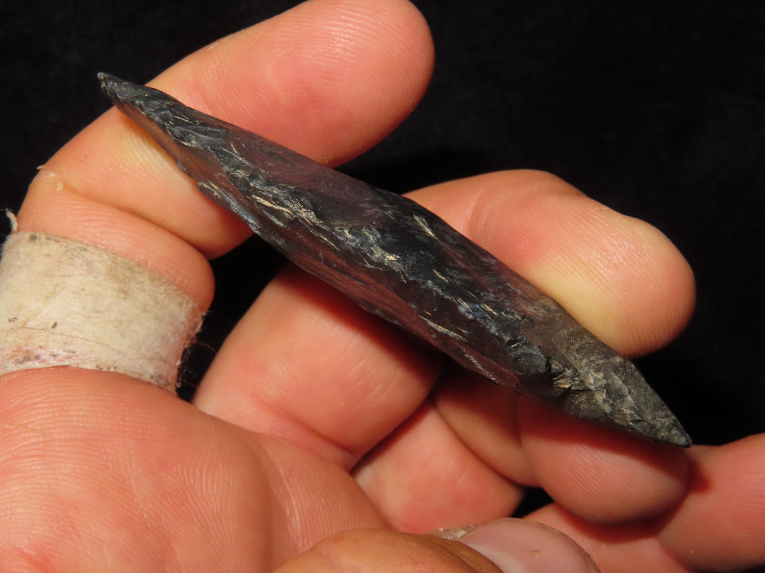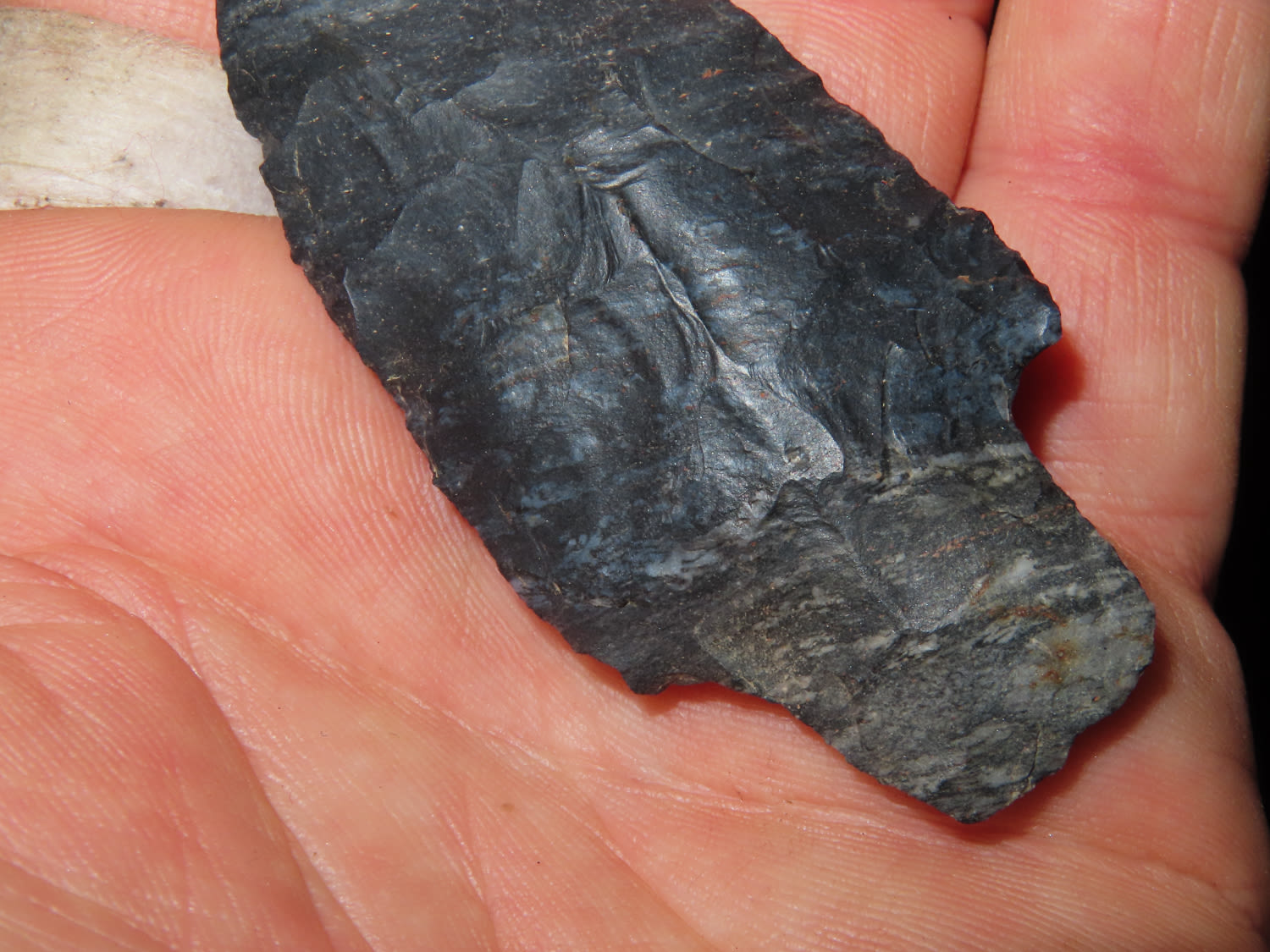 2 7/8″ Adena, Coshocton Chert, found by Jim and Burley Fritz, Pulaski Co, Indiana